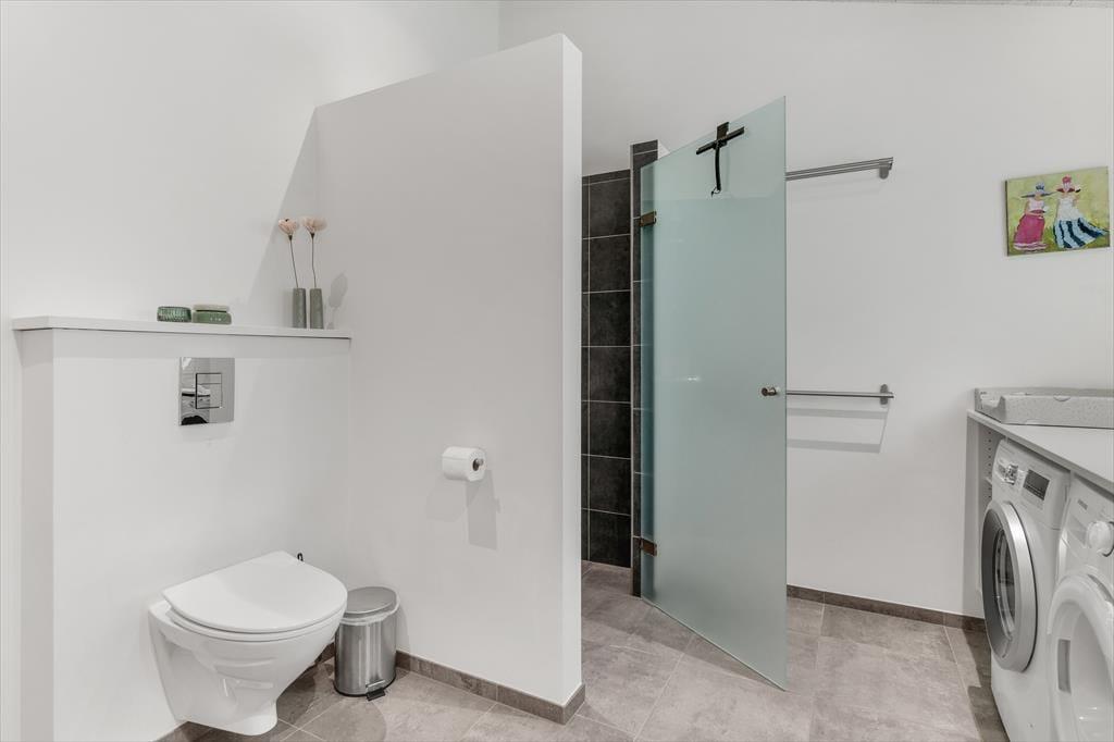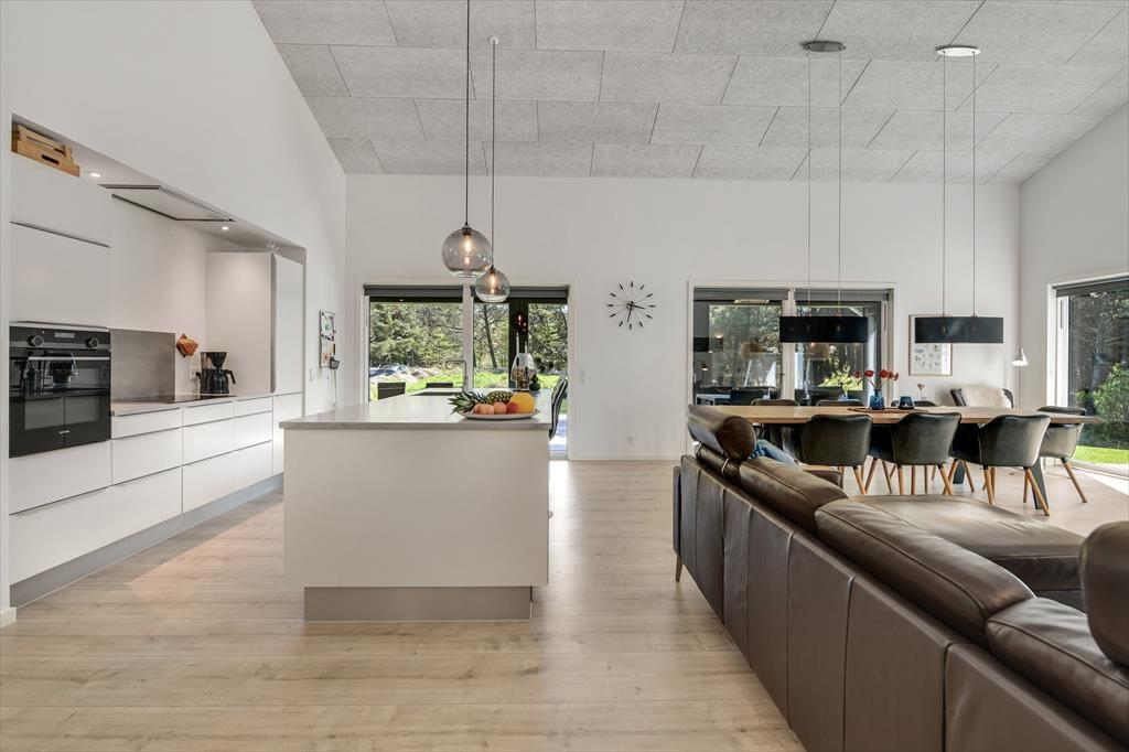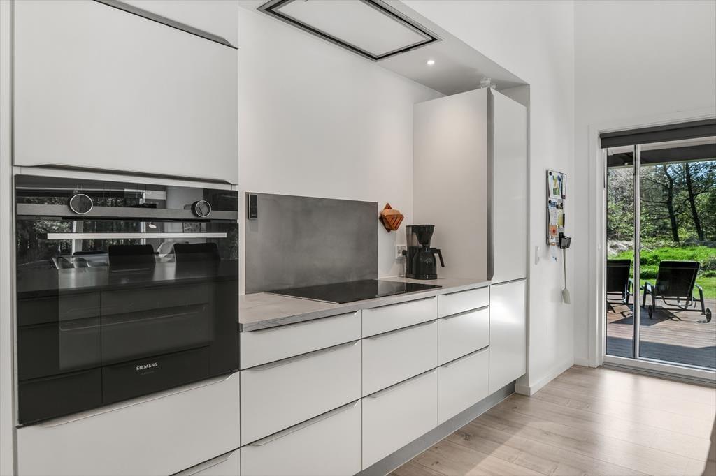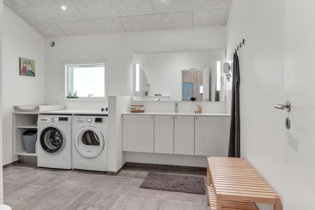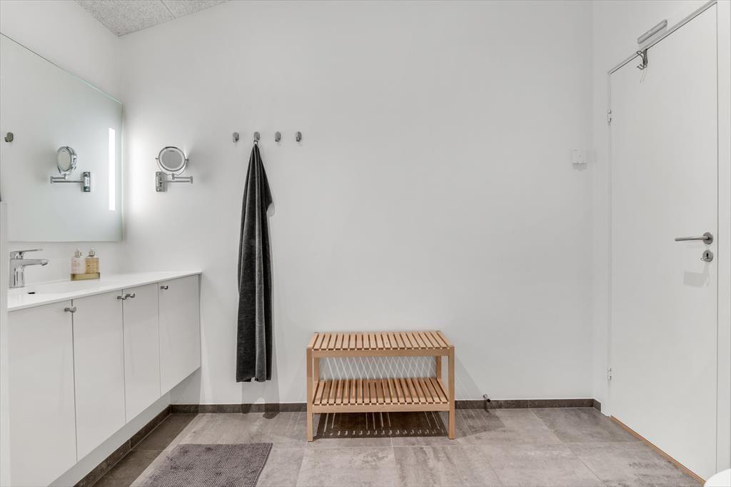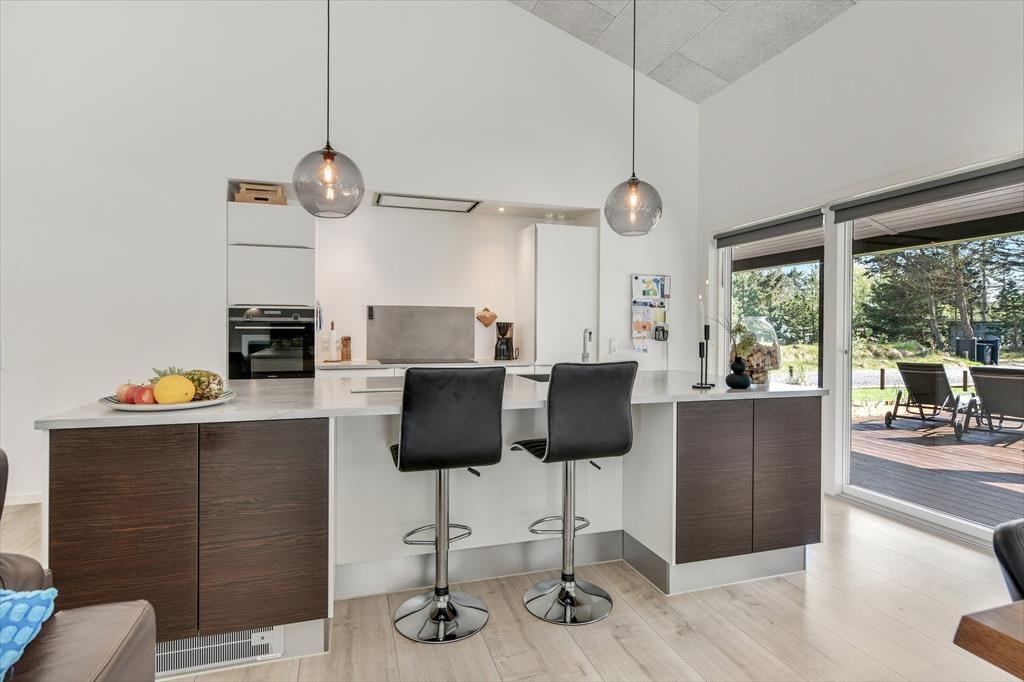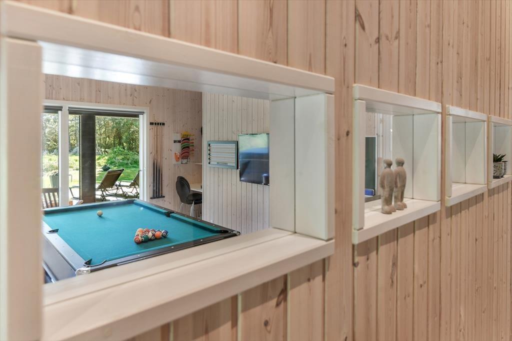Med en planløsning på hele 165 m2 har du og familien masser af plads inden døre, og fordi der er fire soveværelser og to badeværelser til rådighed, kan i overveje, om I vil invitere vennerne med på ferie. Der er god plads til alle i det store opholdsrum, hvor I kan slænge jer i sofaafdelingen eller samles ved spisebordet til et veltilberedt måltid. Maden kan du trylle frem i det åbne køkken, der er udstyret med Quooker og andre lækre detaljer – og hvis det ikke er dig, der har køkkentjansen, kan du i stedet sætte dig på en af barstolene for at spise snacks og hyggesnakke med kokken. Alternativt kan du gå ind ved siden af for at spille bordtennis, pool eller airhockey, indtil det er spisetid.