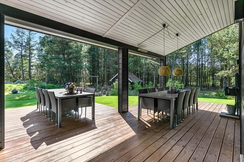 Kunne det friste med et slag bordtennis, en lækker middag ved langbordet, en solbeskinnet eftermiddag på terrassen hvoraf 55 m2 er overdækket eller en aften i det udendørs spabad? I dette lækre sommerhus får du og familien rig mulighed for at hygge jer, slappe af og have det sjovt sammen – når I altså ikke er ude for at udforske Ho, Blåvand og hele det naturskønne lokalområde.