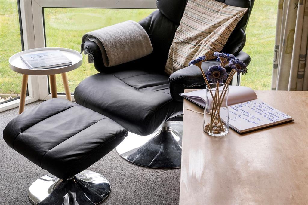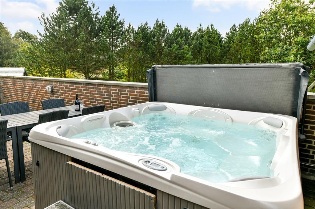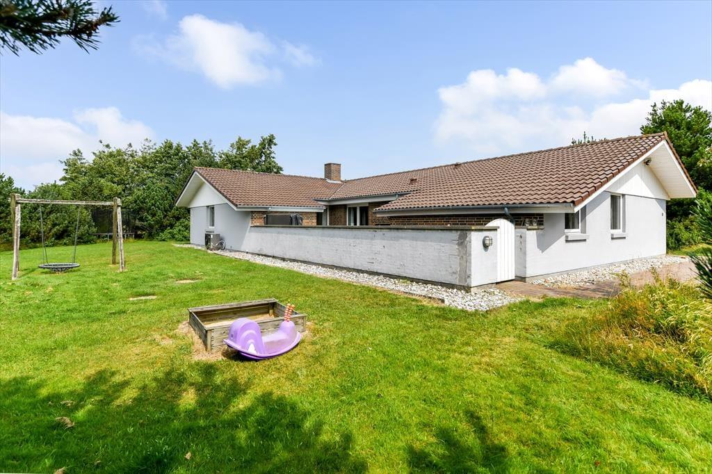 Også ude i det fri kan du se frem til wellness, for der står et stort spabad på husets fantastiske terrasse. Hvis du sidder her i løbet af dagen, har du udsigt til Ho Bugt, mens du slapper af, og hvis mørket er faldet på, kan det i stedet være stjernerne på aftenhimlen, du nyder synet af. Rundt omkring på grunden er der også andre tillokkende opholdspladser, og på græsplænen er der god plads til både boldspil og fangeleg. Udearealerne byder desuden på masser af underholdning til børnene, for der er blandt andet et legehus, en sandkasse og en sansegynge.