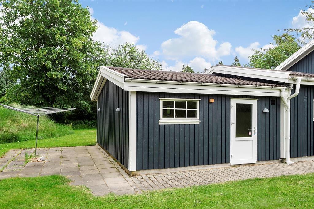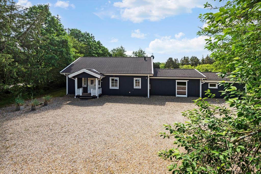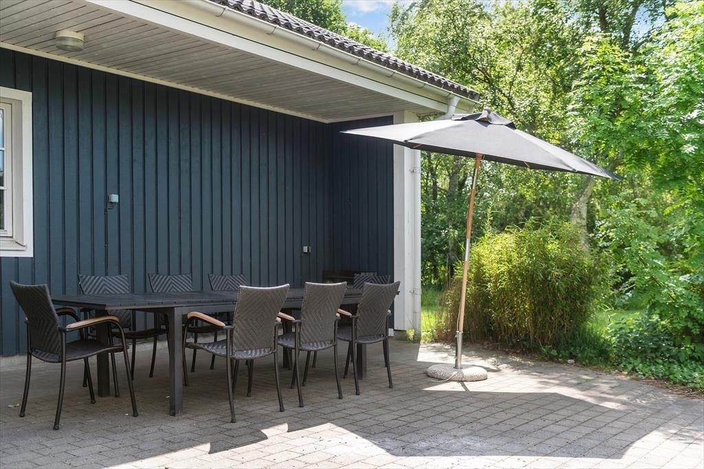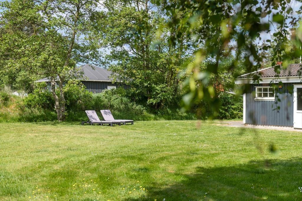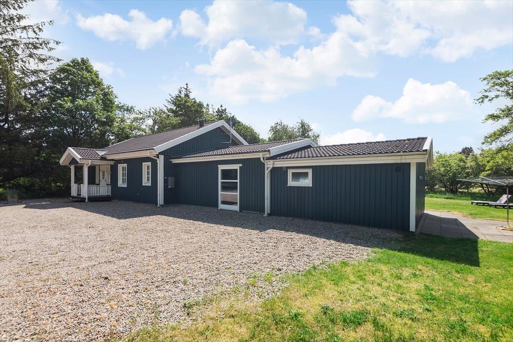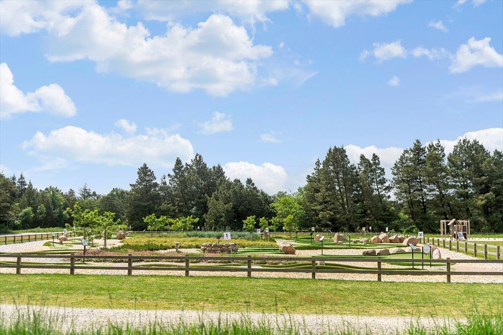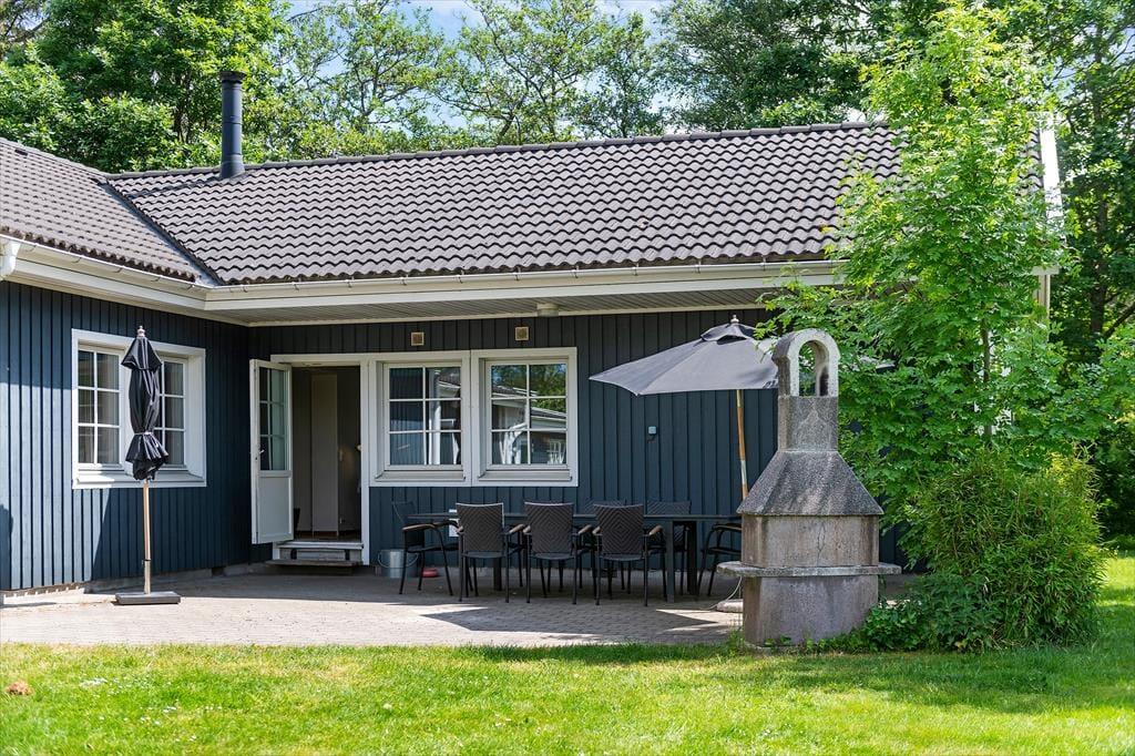 Ude i det fri er der også godt at være, for naturgrunden er stor og grøn, og smukke træer skærmer af ud mod vejen. Den delvist overdækkede terrasse er et herligt sted at slå sig ned med en kølig forfriskning og en god bog, mens børnene boltrer sig på græsplænen – og de yngste har for øvrigt også en sansegynge at hygge sig med. Ved minigolfbanen, der ligger lige i nærheden, finder I en skøn legeplads med rutsjebane, stor sandkasse og meget mere, og huset ligger næsten også som nabo til en fiskesø, så både store og små kan se frem til masser af udendørs sjov.