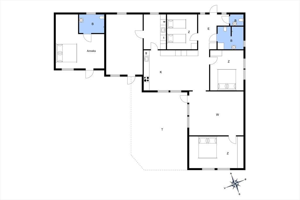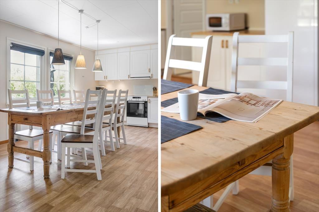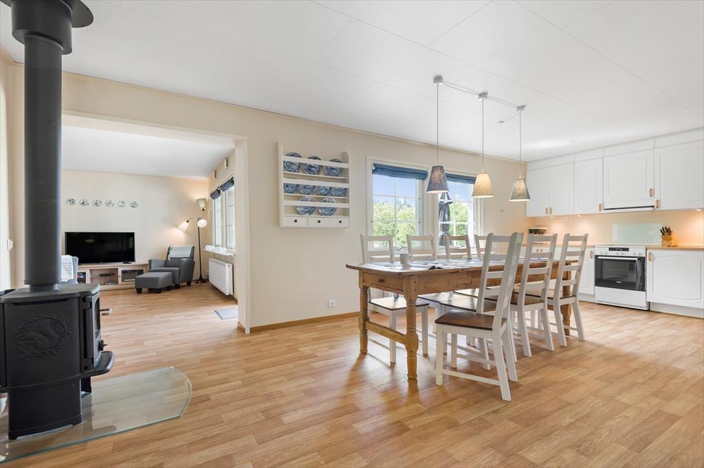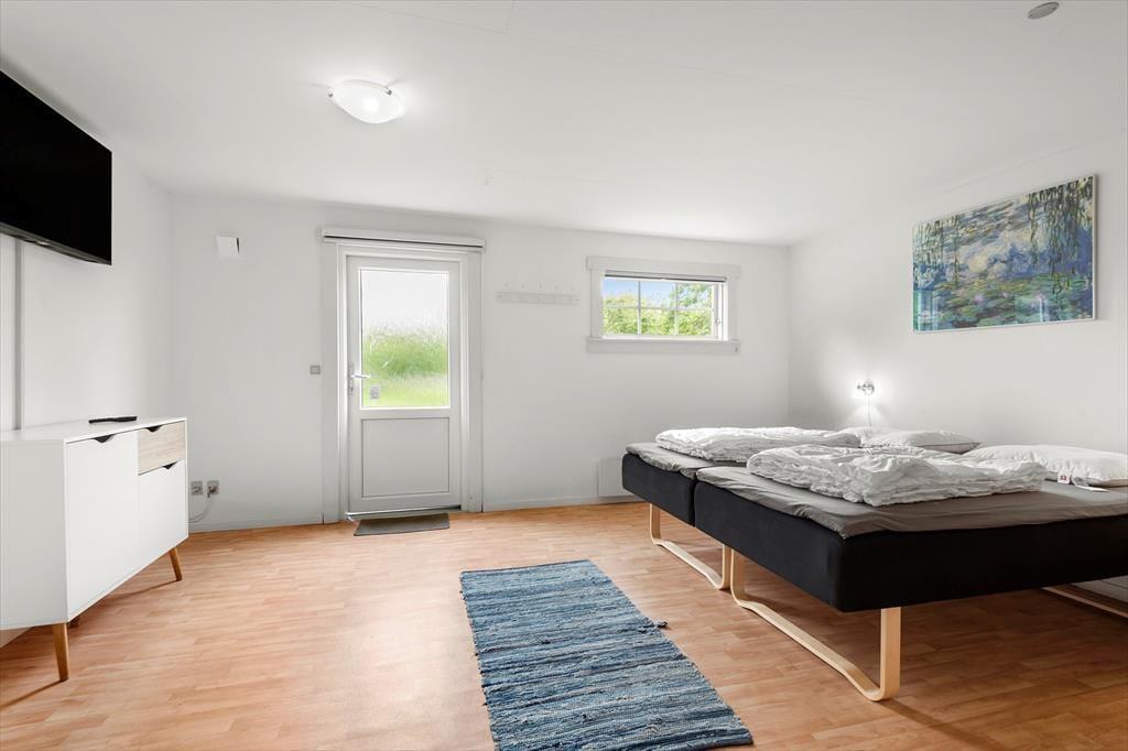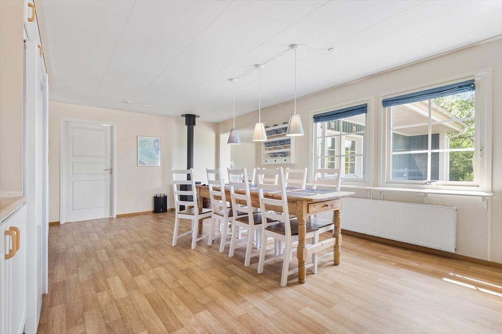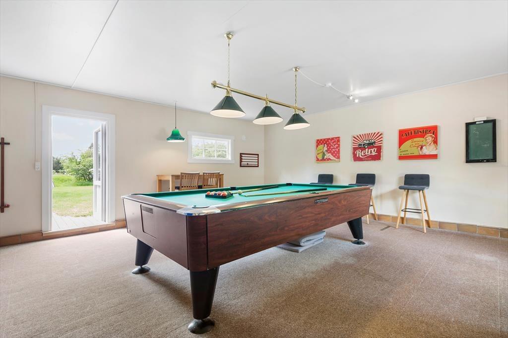 Sommerhuset byder på et dejligt køkken-alrum, hvor du og dine kære kan samles til både store og små måltider i løbet af feriedagen. Er det køligt udenfor, kan du tænde op i brændeovnen lige fra morgenstunden, så I kan drikke kaffe og løse krydsogtværser nær den knitrende varme – uanset vejrudsigten er det rart at have god tid til den slags ting, når det er ferietid. Stuen er også et hyggeligt sted at være, og hvis I vil dyste i pool, bordtennis og dart, kan I rykke ind i husets gode aktivitetsrum. Soveværelser er der tre af, og huset byder også på et badeværelse og et gæstetoilet. Og så er der endda ekstra plads i annekset, der er indrettet med et soveværelse og et badeværelse, så i alt kan I være otte personer inden døre. Der er ikke danske kanaler, men hvis I selv har et abonnement, er det muligt at streame til den chromecast, der er i huset.