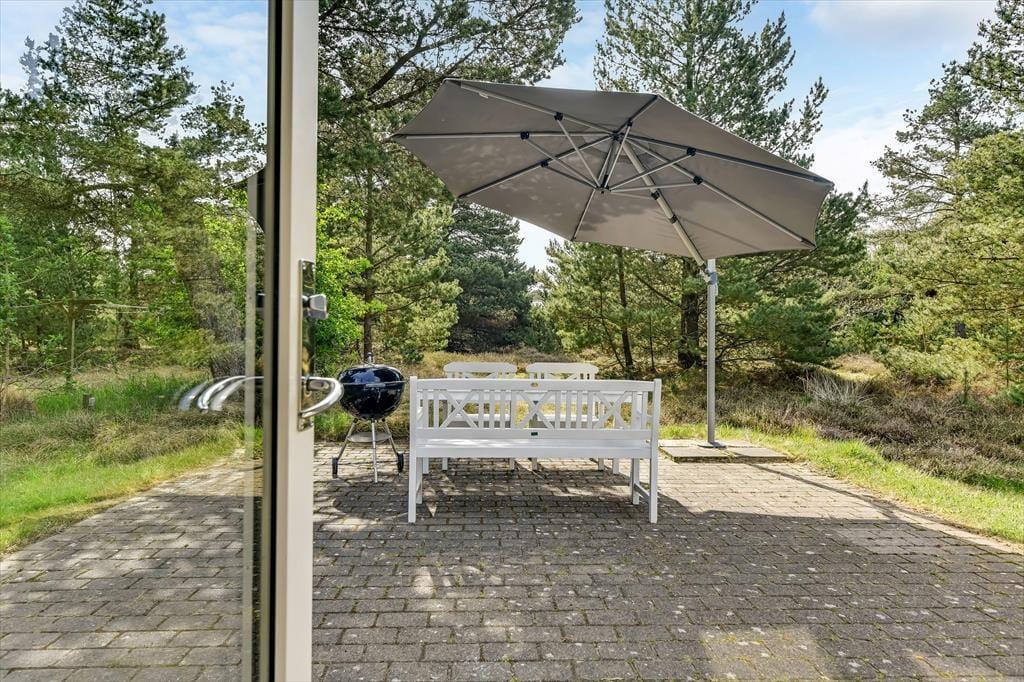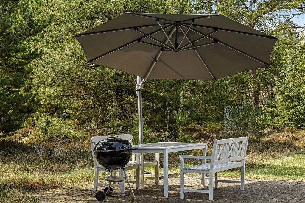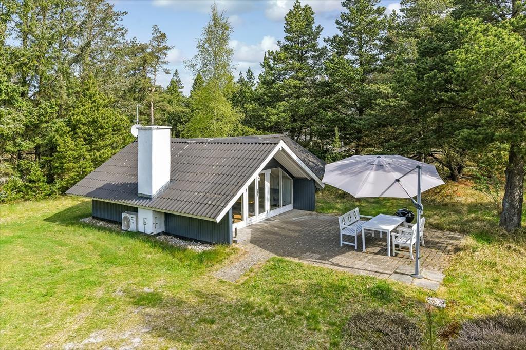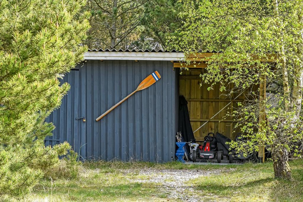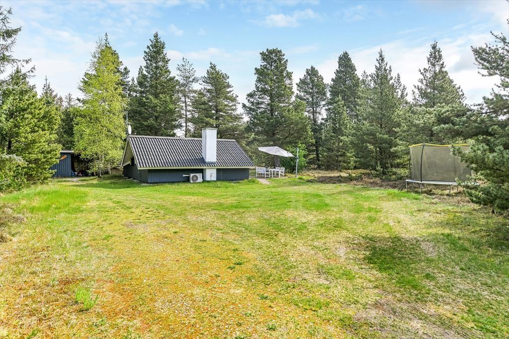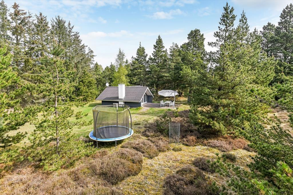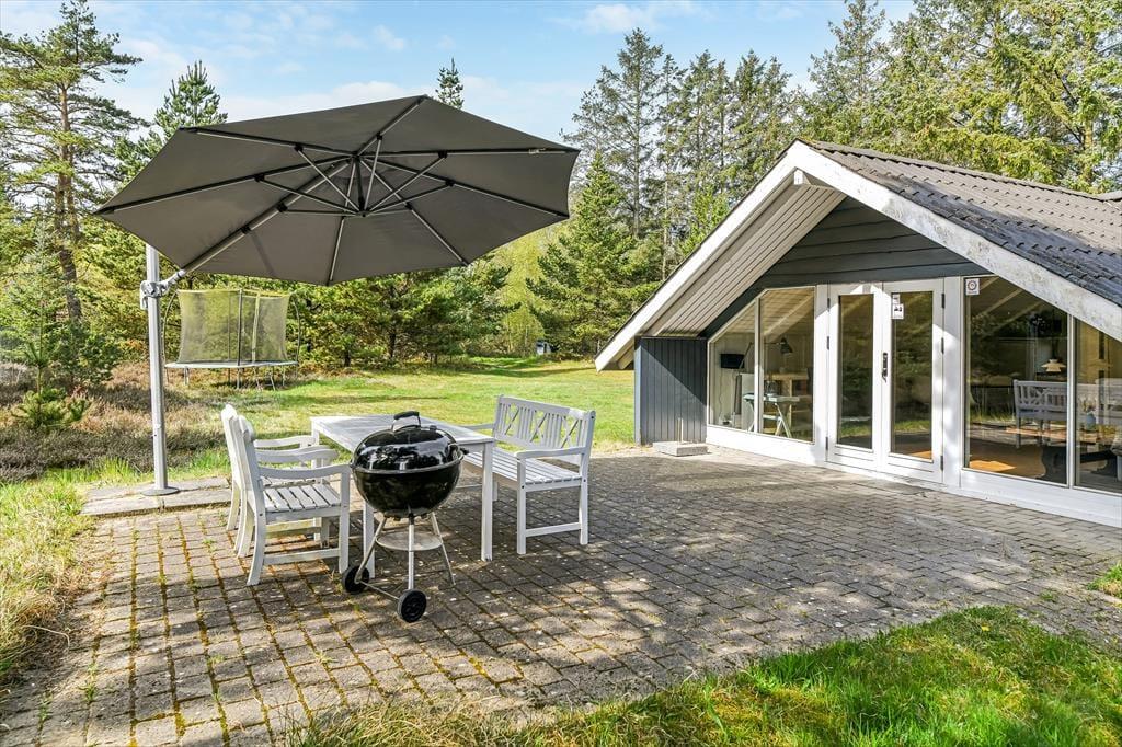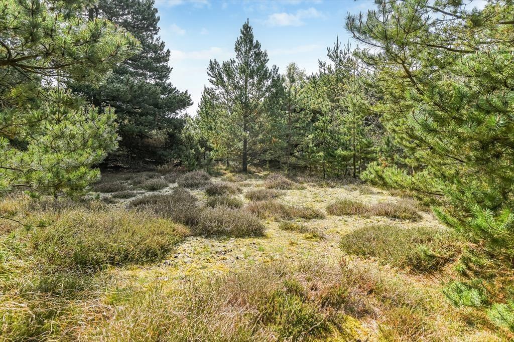 Det bedste ved dette sommerhus er næsten alt det, der venter dig udenfor. Terrassen åbner sig direkte ud mod en stor og privat naturgrund, hvor du kan mærke vinden i håret og lytte til fuglenes morgensang uden forstyrrelser. Her er det let at finde ro i en liggestol, nyde morgenkaffen i solen eller samles om grillen, mens skumringen falder på. Børnene har god plads til at lege, og de voksne kan følge med i det hele fra den solrige terrasse. Grunden er omgivet af høje træer og vilde buske, der skaber en naturlig afskærmning og giver fornemmelsen af at være alene i naturen – som en lille, grøn oase kun til jer.