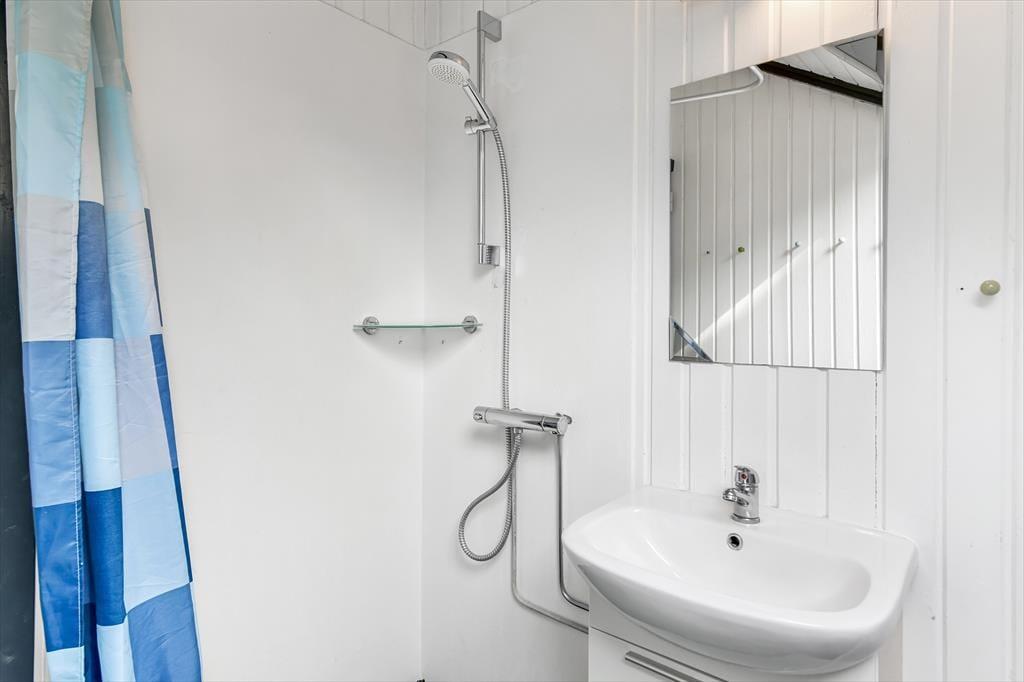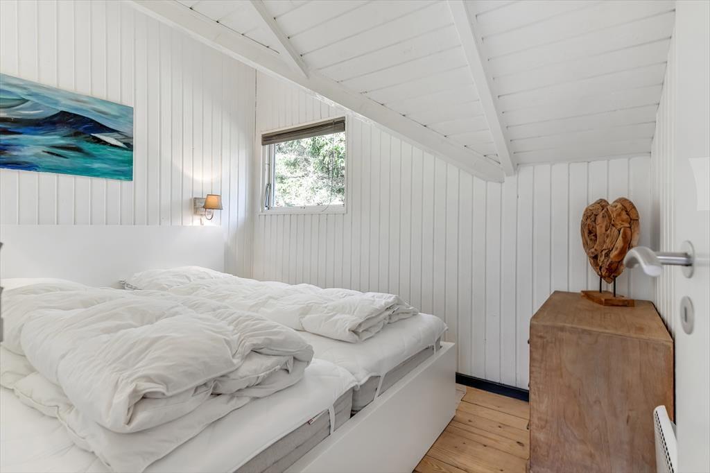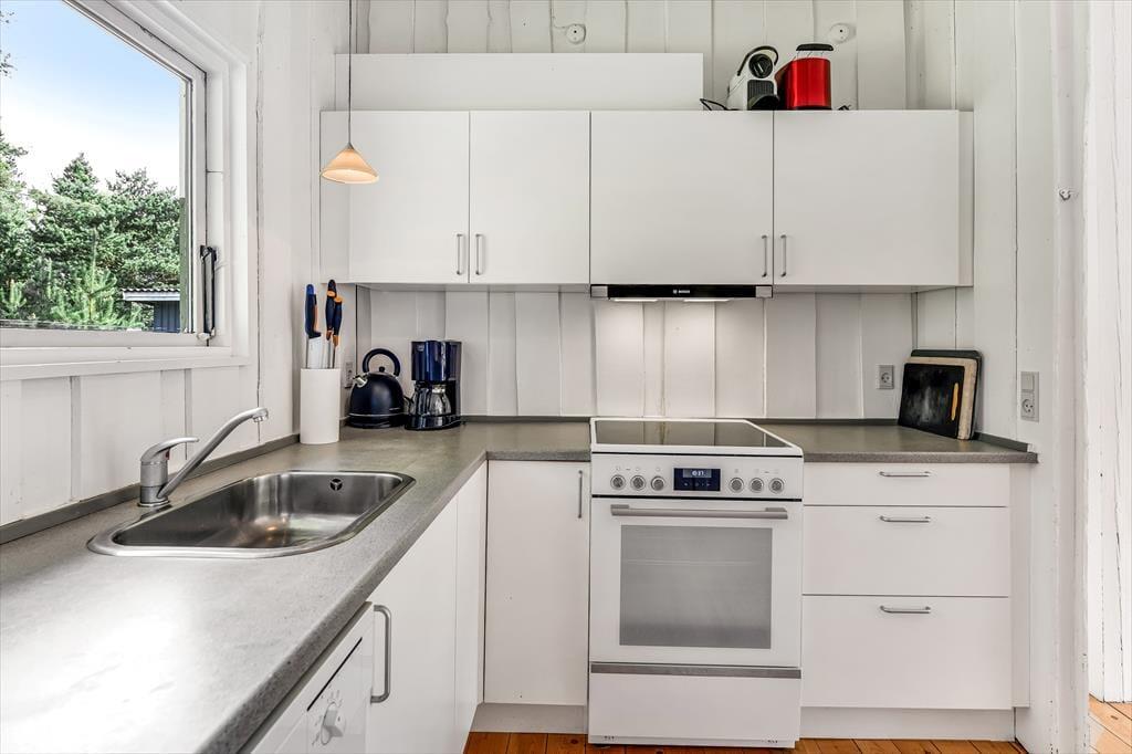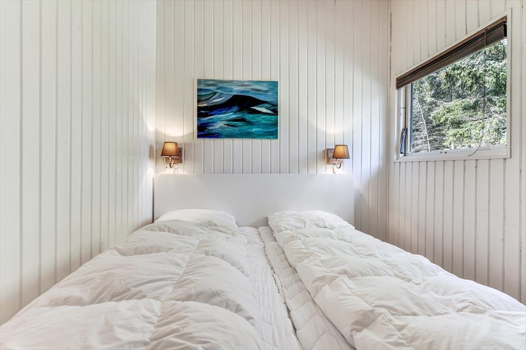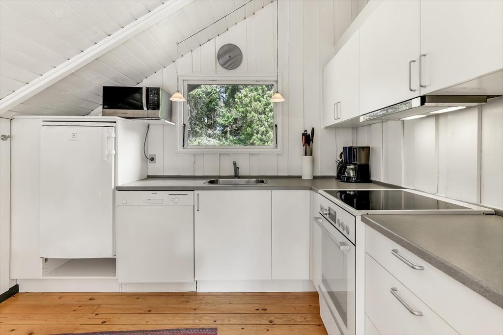 Allerede når du træder ind i huset, bliver du mødt af en lys og indbydende atmosfære. Den åbne stue med store vinduer lader det naturlige lys strømme ind og skaber en varm og venlig stemning – her får du straks lyst til at smide benene op og nyde ferien. Indretningen emmer af klassisk sommerhushygge med god plads til fællesstunder og afslapning. Her kan du bruge timevis med en god bog i lænestolen, spille kort ved spisebordet eller tænde op for hyggelyset og finde roen i stilheden, som omgiver huset. Uanset om du er her for et par dage eller flere uger, inviterer huset til at trække vejret helt ned i maven og give slip på hverdagens tempo.