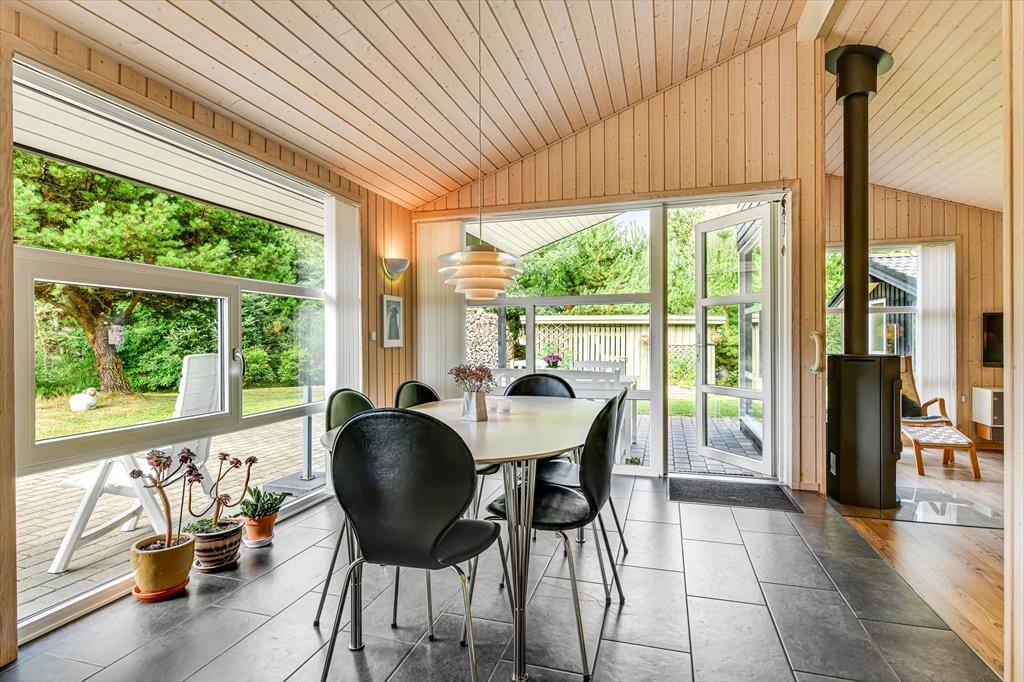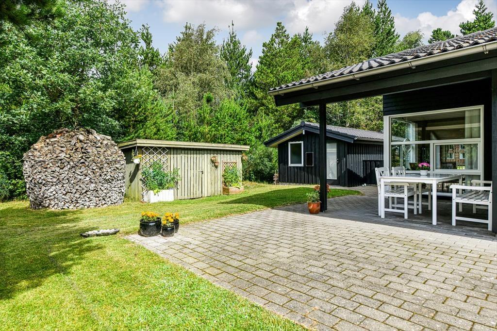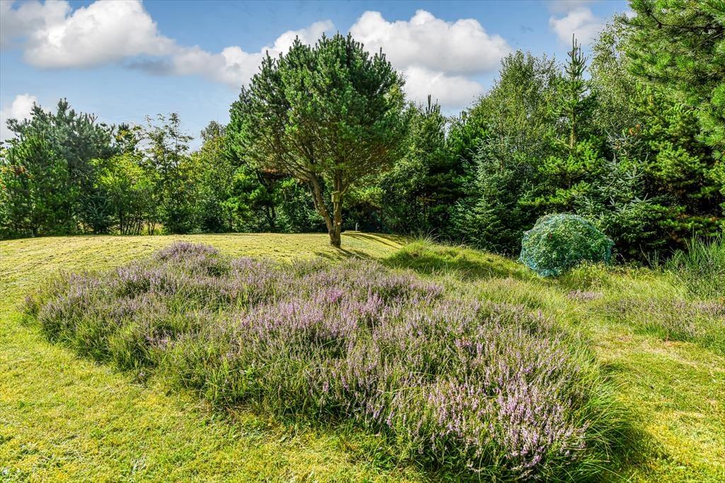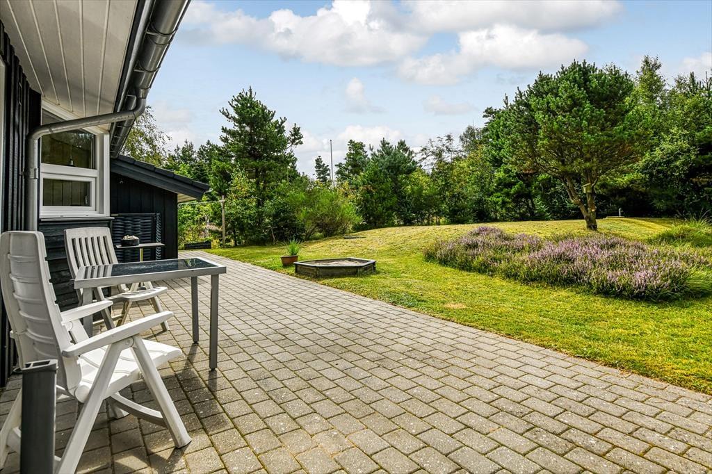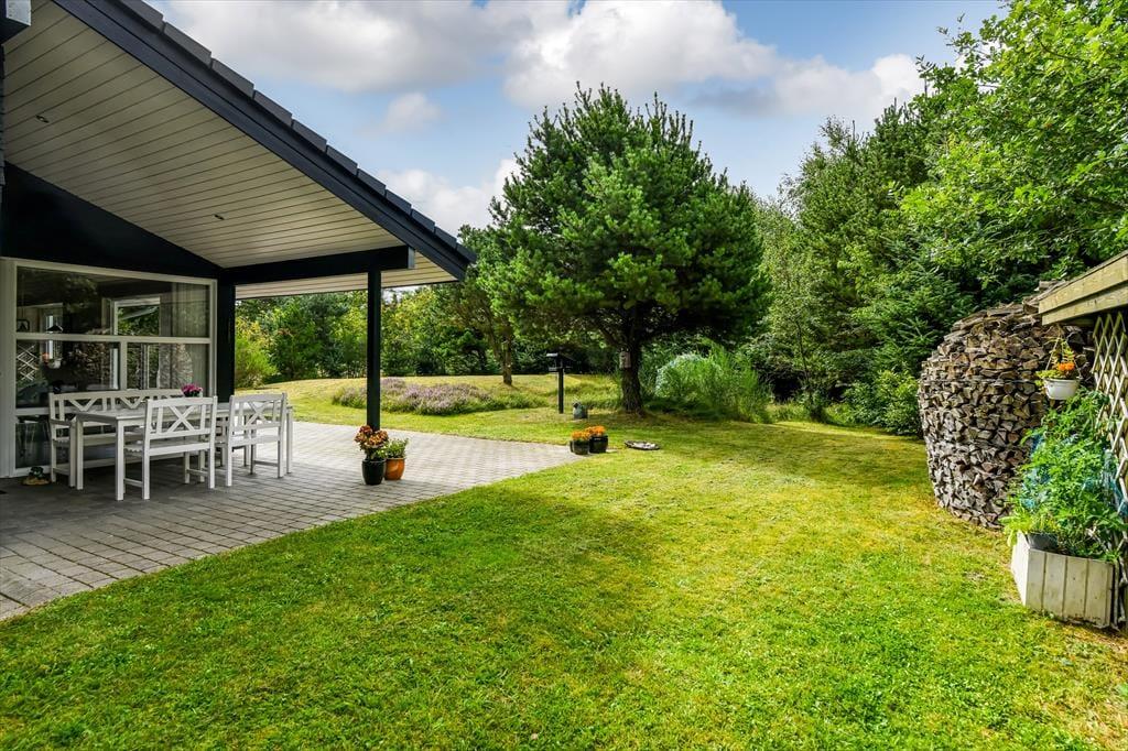 Huset er omgivet af en stor terrasse, der gør det muligt at nyde solens stråler hele dagen. Den sydøstvendte terrasse er ideel til morgenkaffen, mens du nyder de første solstråler. På den sydvestlige terrasse kan du nyde solen hele dagen. Den nordvestvendte terrasse er delvist overdækket og giver en perfekt ramme til lange sommeraftener, hvor du kan nyde den kølige aftenbrise. Naturen omkring sommerhuset er en fryd for sanserne. Med høje træer og frodig vegetation kan du ofte være heldig at få et glimt af harer, ræve eller krondyr, der besøger grunden.