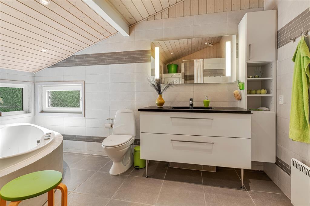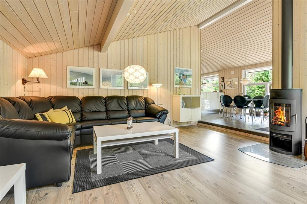 Når du træder ind i sommerhuset, bliver du mødt af en lys og imødekommende atmosfære. Det åbne køkken-alrum er hjertet af huset, hvor du kan nyde madlavningen og samtidig være en del af samtalerne, mens du ser ud over den smukke, grønne natur gennem de store vinduer. Brændeovnen i stuen bidrager til en varm og hyggelig stemning, der er ideel til afslappende aftener uanset årstiden. Der er gulvvarme i hele huset bortset fra soveværelserne, hvor der er el radiator. Sommerhuset byder på tre rummelige soveværelser, der sikrer komfortable nætter for hele familien. Der er 2 badeværelser begge med gulvvarme; det ene er stort og luksuriøst med både spa og sauna – perfekt til afslapning og selvforkælelse efter en dag fyldt med aktiviteter.
