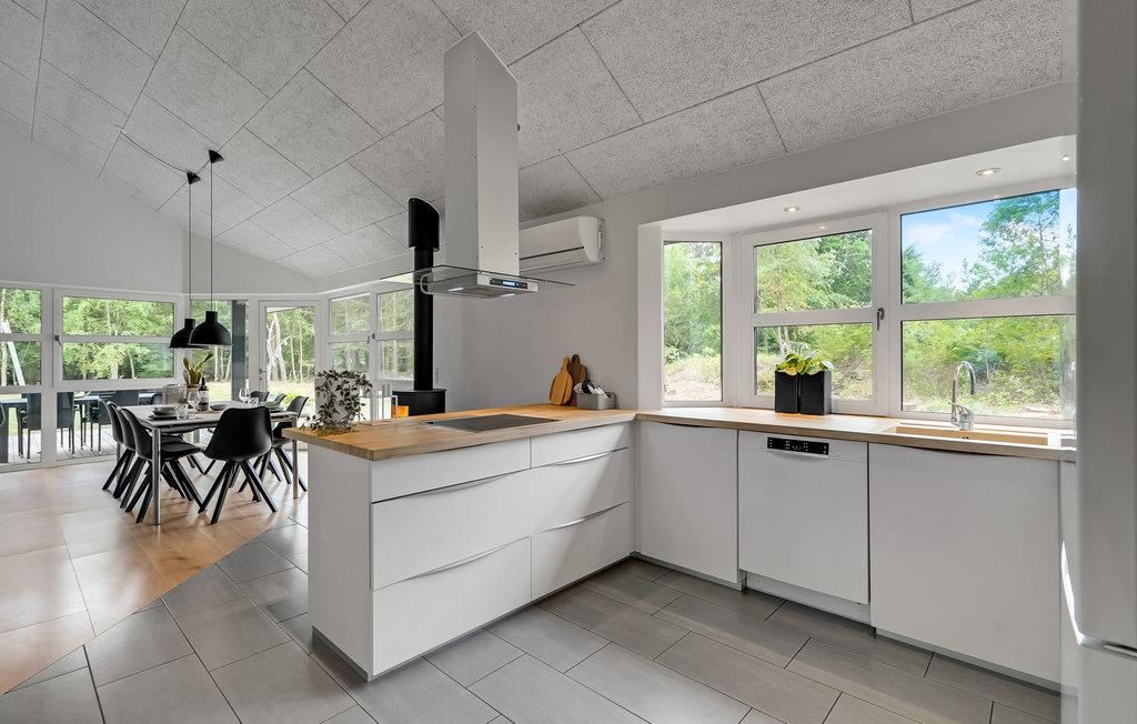 Moderne og spændende sommerhus i det hyggelige ferieområde Ho. Huset er praktisk indrettet, og de store vindues partier i stuen lukker masser af lys ind og giver flot udsigt til naturen lige udenfor. Omkring huset er der dejlige store terrasser. Her kan I slappe af og spise alle dagens måltider i den friske salte luft. I Ho er der mange afvekslende fritids muligheder, i gåafstand til huset ligger fiskesøen, der er hesteudlejning, golfbaner og bowling m.m. Den fantastiske natur indbyder til lange cykelture ad stier adskilt fra anden trafik, gryder i klitterne hvor I kan tilbringe hele dage og de store klitplantager med krogede fyrretræer. Har det været blæsevejr, så gå en tur i vandkanten og kig efter havets forskellige skatte – måske finder I rav.