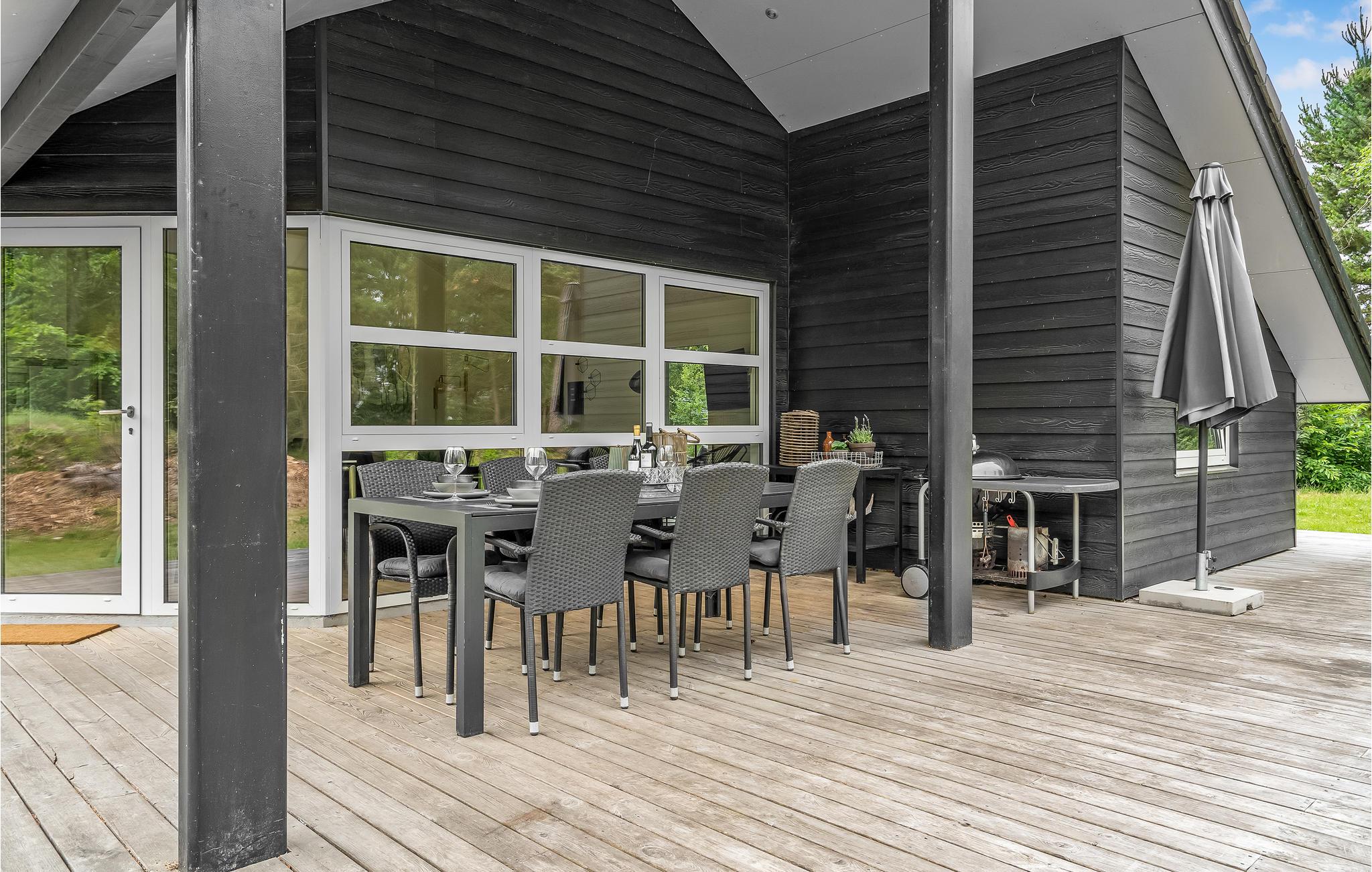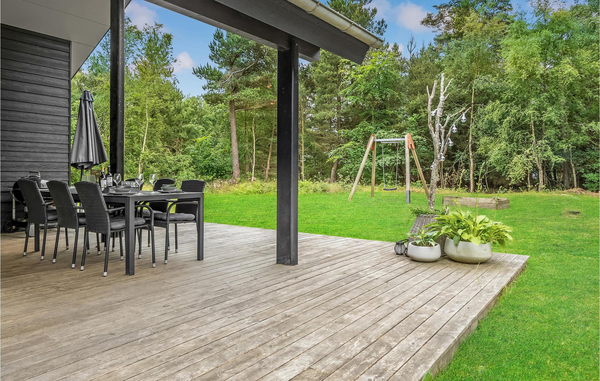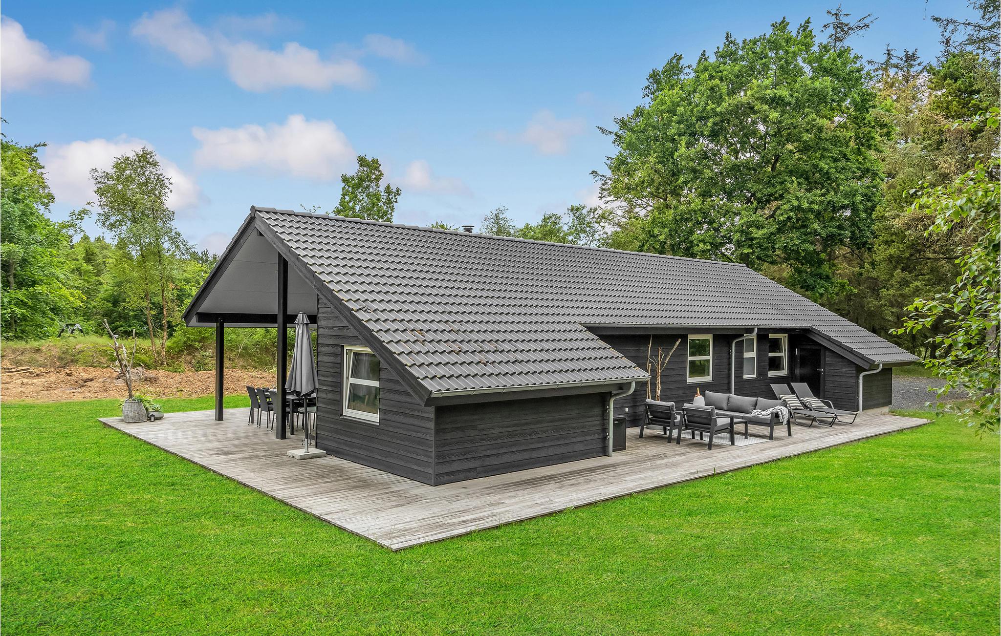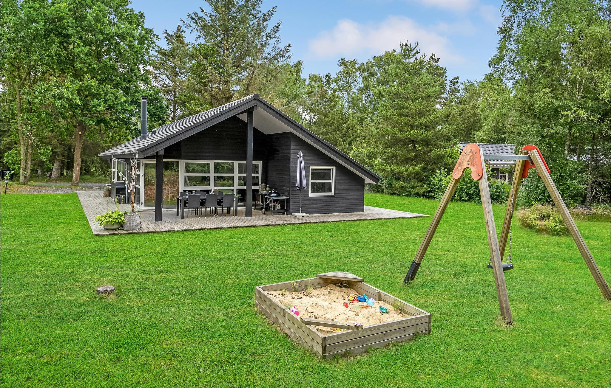 Moderne sommerhus i Ho med store terrasser, sauna og smuk natur tæt på golf og fiskesø.