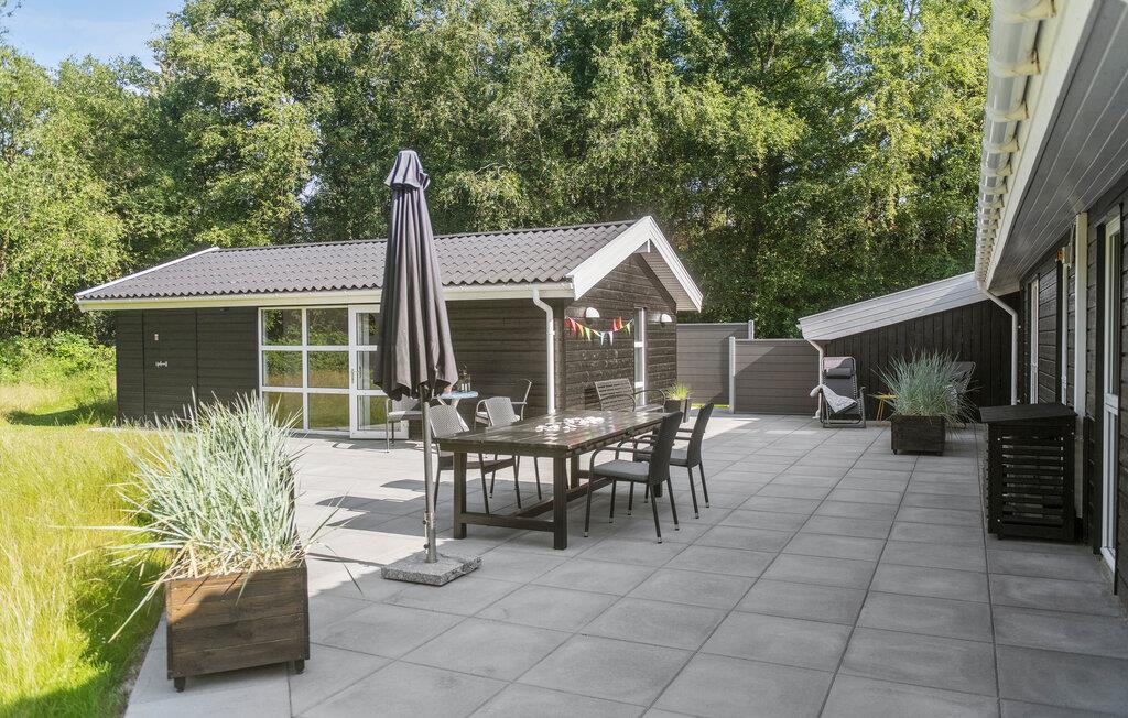 Flot renoveret feriehus i Blåvand med stor naturgrund, brændeovn og flere terrasser til afslapning.