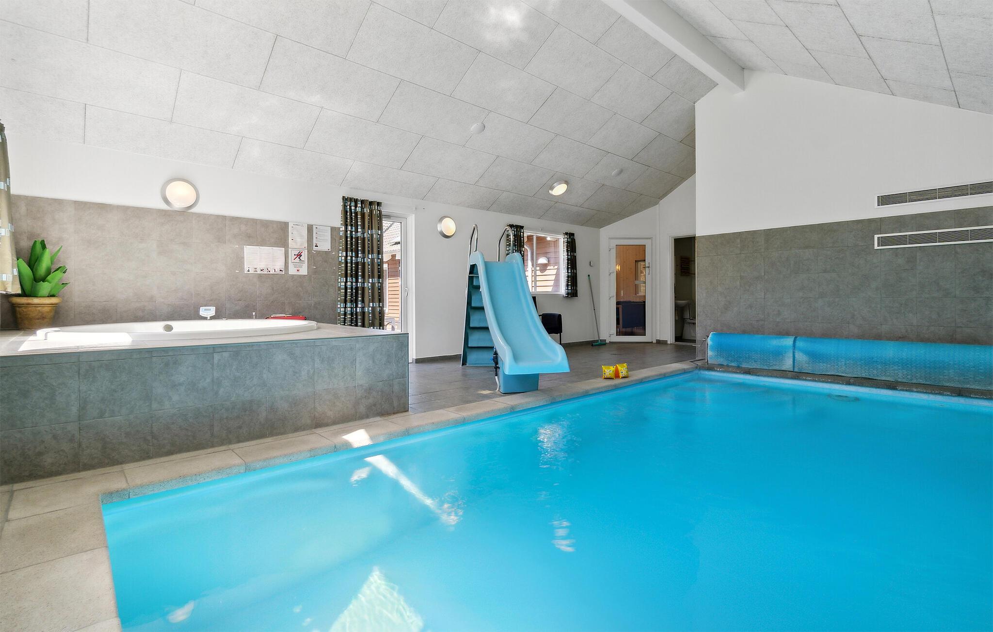 Fantastisk flot luksushus i et skønt naturområde, hvor den store familie eller vennepar rigtigt kan boltre sig. Huset specielle form som et H samt træerne på grunden, giver en masse gode lækroge på terrasserne rundt om huset, og tager samtidig den værste vind. Udover den store poolafdeling, er der et godt aktivitetsrum med mulighed for dyst i billard, bordtennis og bordfodbold. Det hele kan nydes med en drink fra den lille bar. Stort velfungerende køkken hvor der er tænkt på, at også dette skal være en leg, så her findes ekstra komfur, opvaskemaskine og køleskab. På hemsen kan børnene lege og se TV. For ivrige golfspillere ligger en golfbane tæt ved huset.