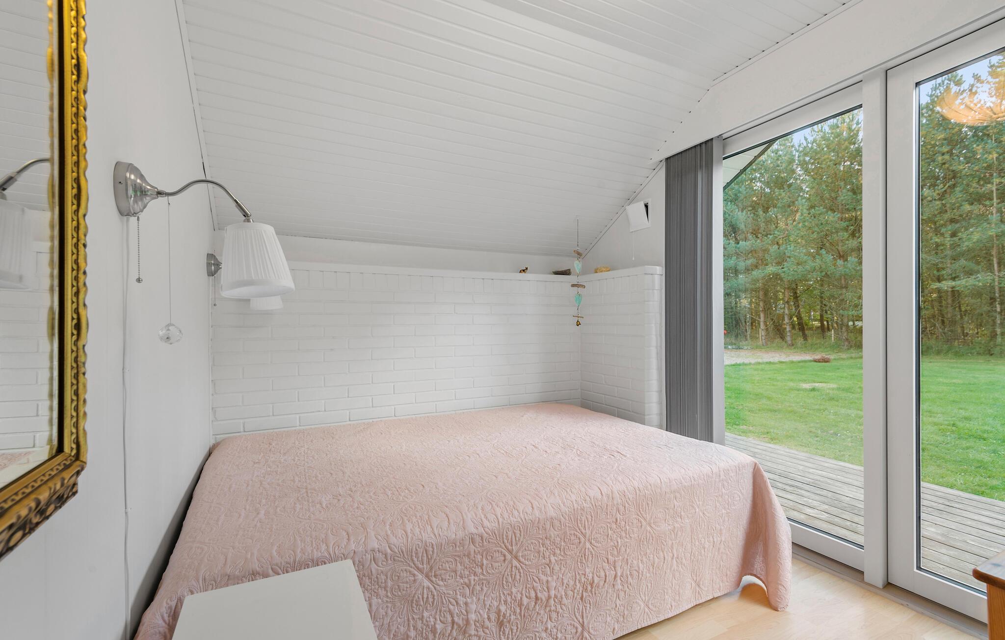 Det skal særligt fremhæves, at soveværelset er stort, så for dem, der godt kan lide god plads, er dette perfekt. Ydermere er huset smart inddelt, sådan at der kan etableres en ekstra soveplads i hjørnet ved den ekstra terrasseudgang.