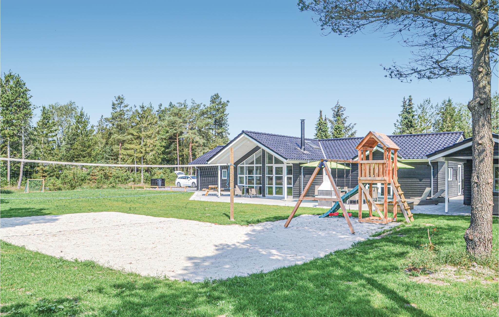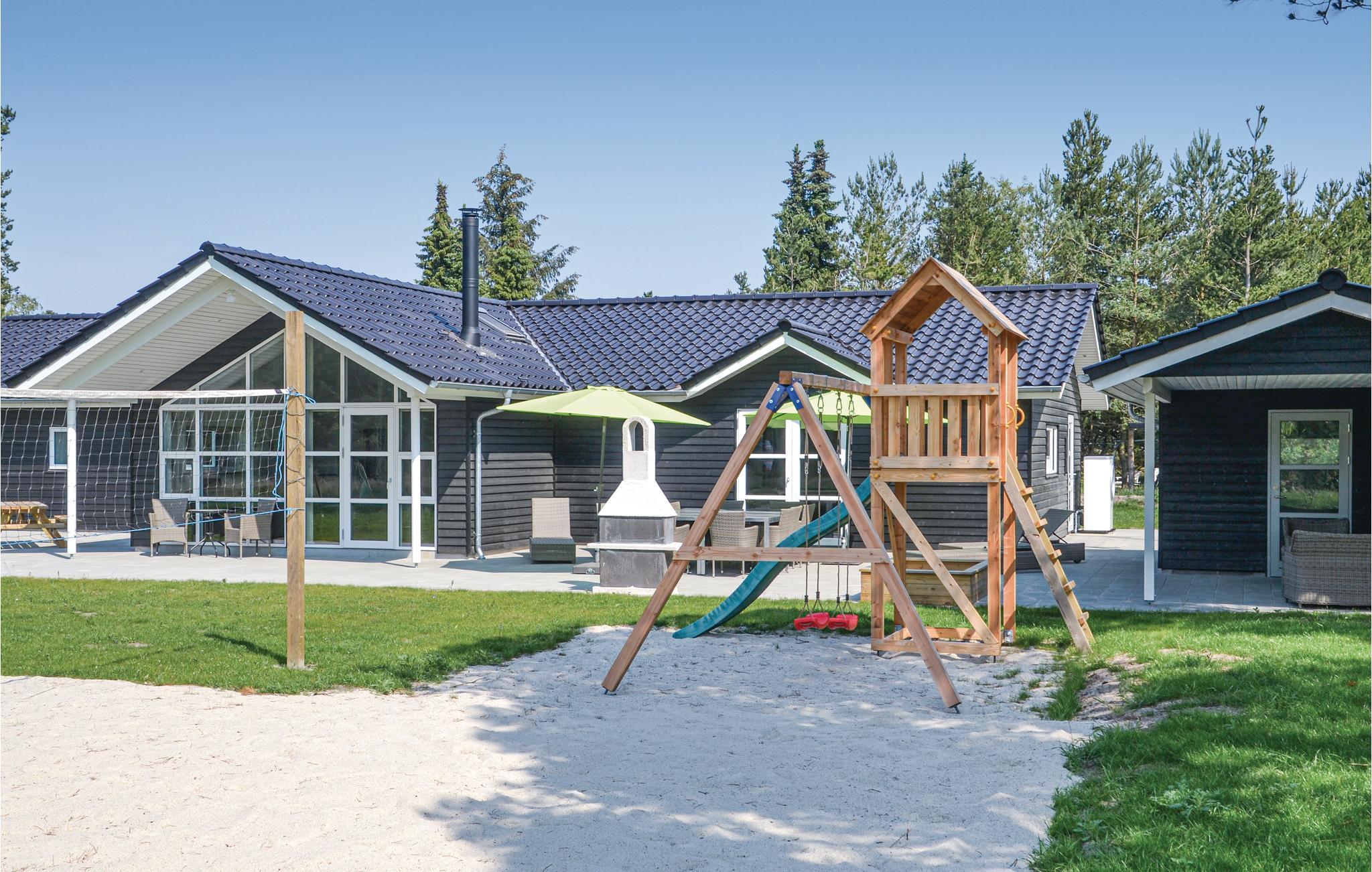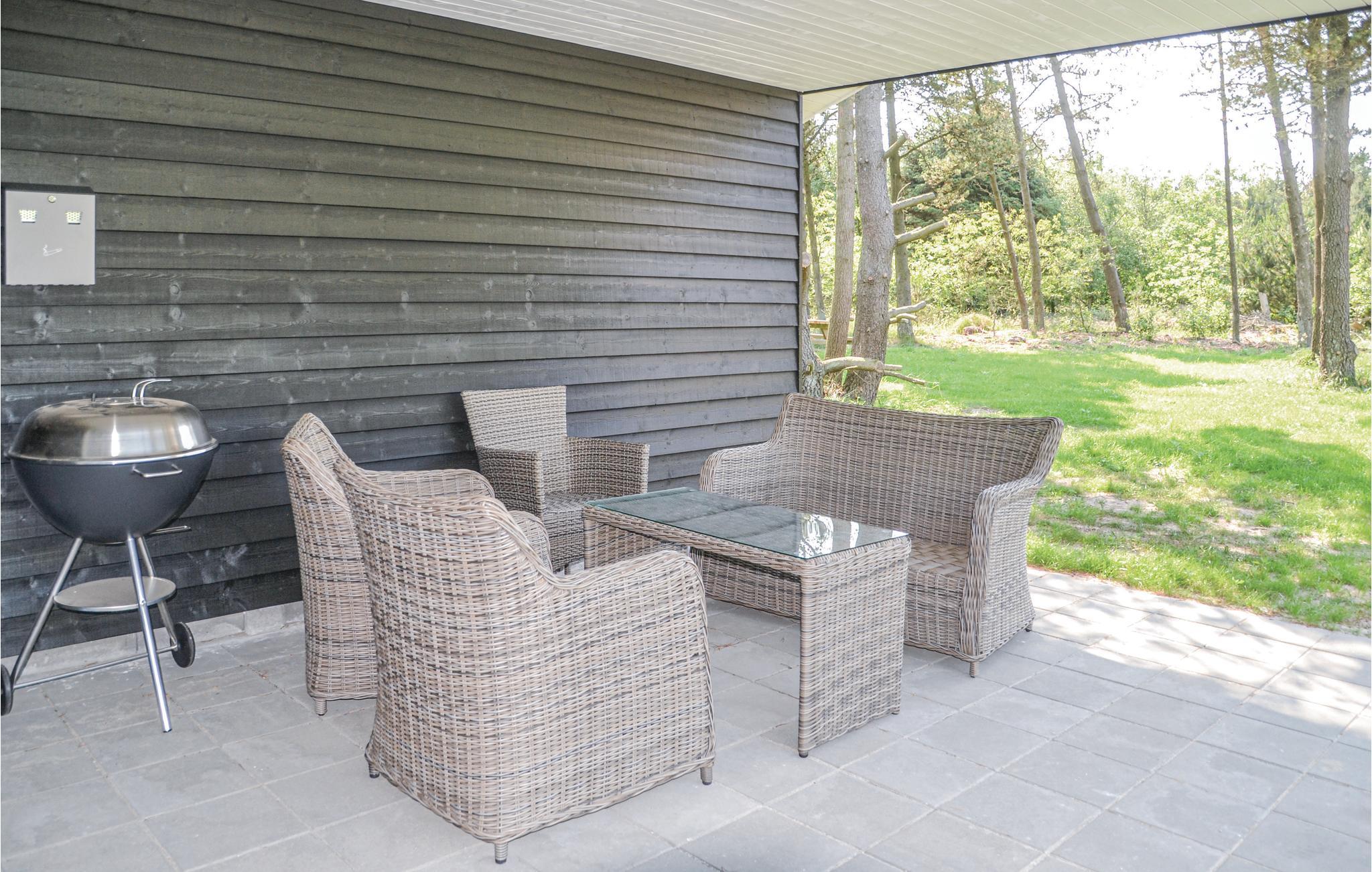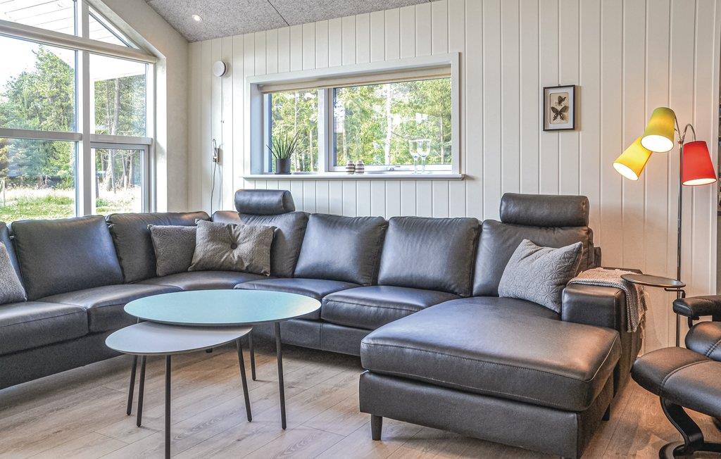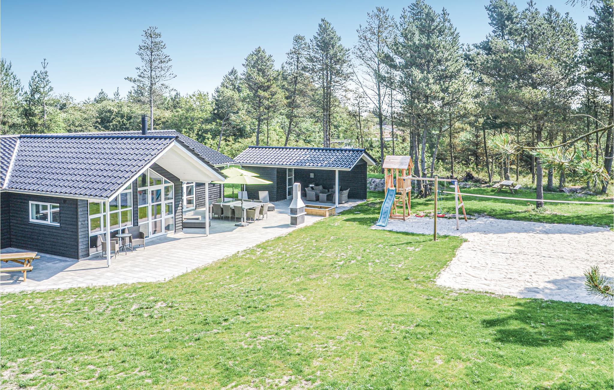 Flot feriehus i Blåvand med stor terrasse, aktivitetsrum og nærhed til golf og natur.