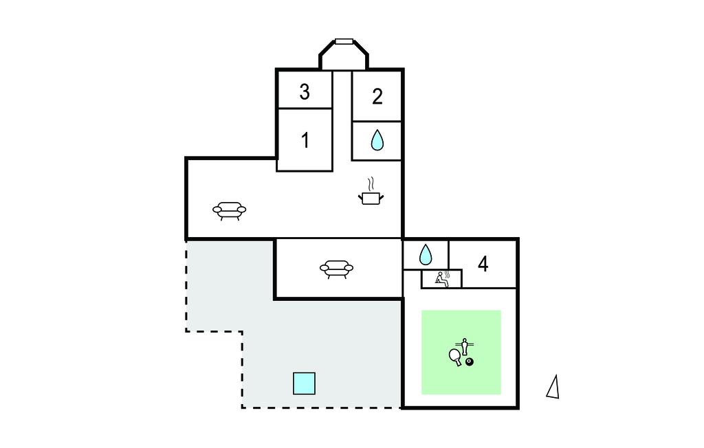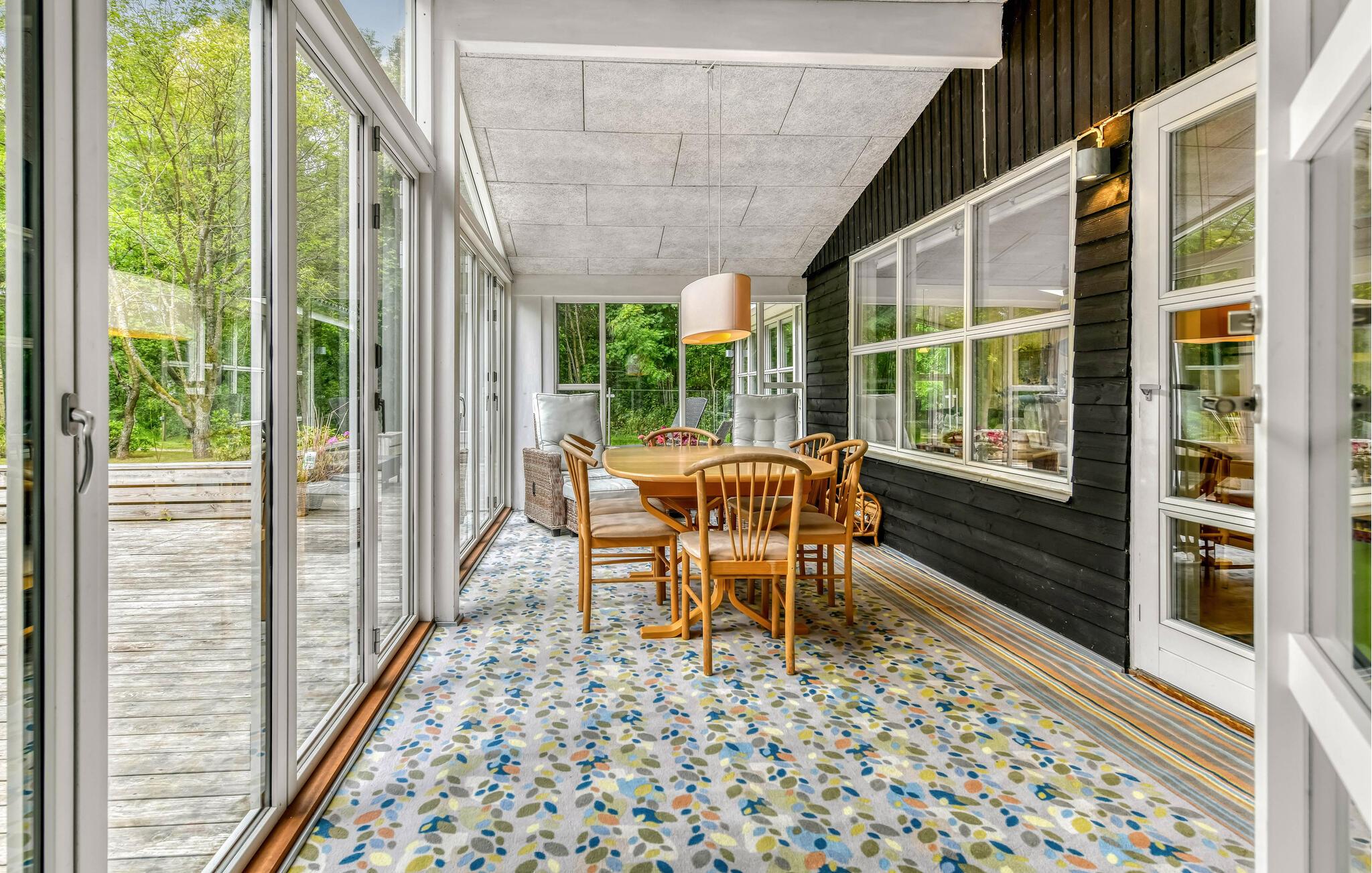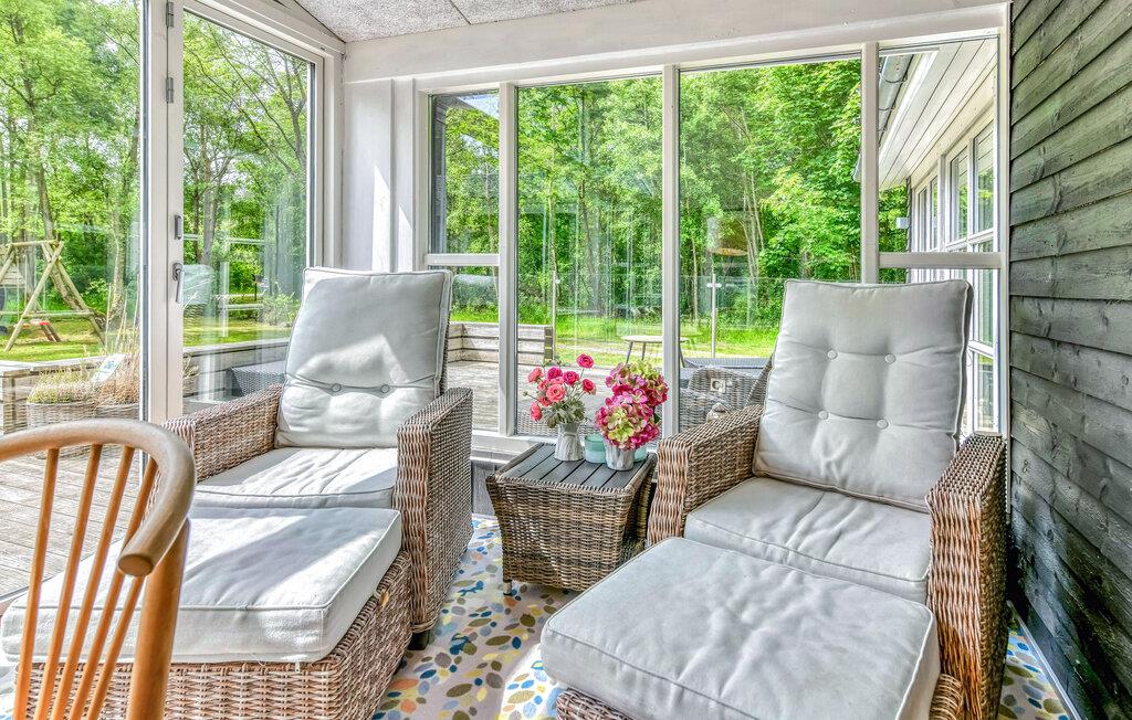 Nyd udelivet på den store træterrasse. Slap af i det varme udendørsspabad, mens I nyder udsigten til de grønne omgivelser. Læg jer i en af liggestolene, eller tænd op i grillen på en mild sommeraften. Haven byder på masser af plads til leg for børn, der kan have det sjovt på gyngen eller i legehuset.