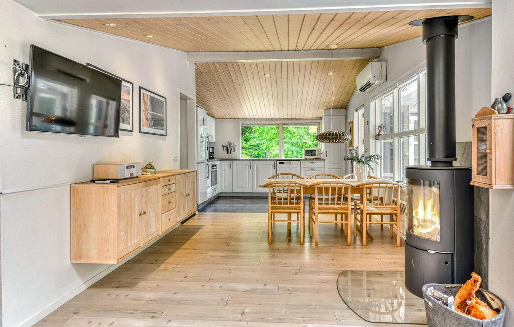 Træd indenfor, og mærk straks den varme, lyse atmosfære i huset. Den åbne stue med brændeovn indbyder til afslapning med en god bog eller en film. Tilbered måltider sammen i det flotte køkken, og nyd dem ved det store spisebord med udsigt til haven. I den infrarøde sauna kan I genoplade kroppen og lade tankerne vandre – perfekt efter en lang gåtur i den friske nordsøluft. Et separat aktivitetsrum med bordtennis og bordfodbold byder på underholdning for hele familien, uanset vejret.