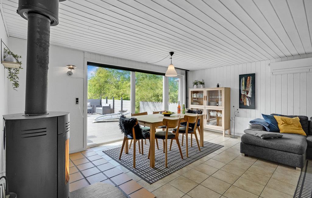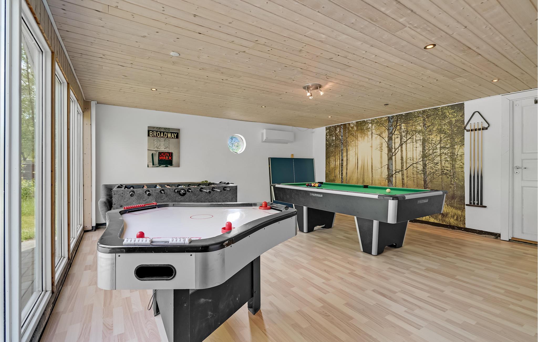 Stort poolrum, med pool, spa og indfrarød sauna. Hyggeligt køkken-alrum med både varmepumpe og brændeovn, 3 gode værelser, de 2 med dobbeltsenge. Udenfor en stor terrase med havemøbler og grill.