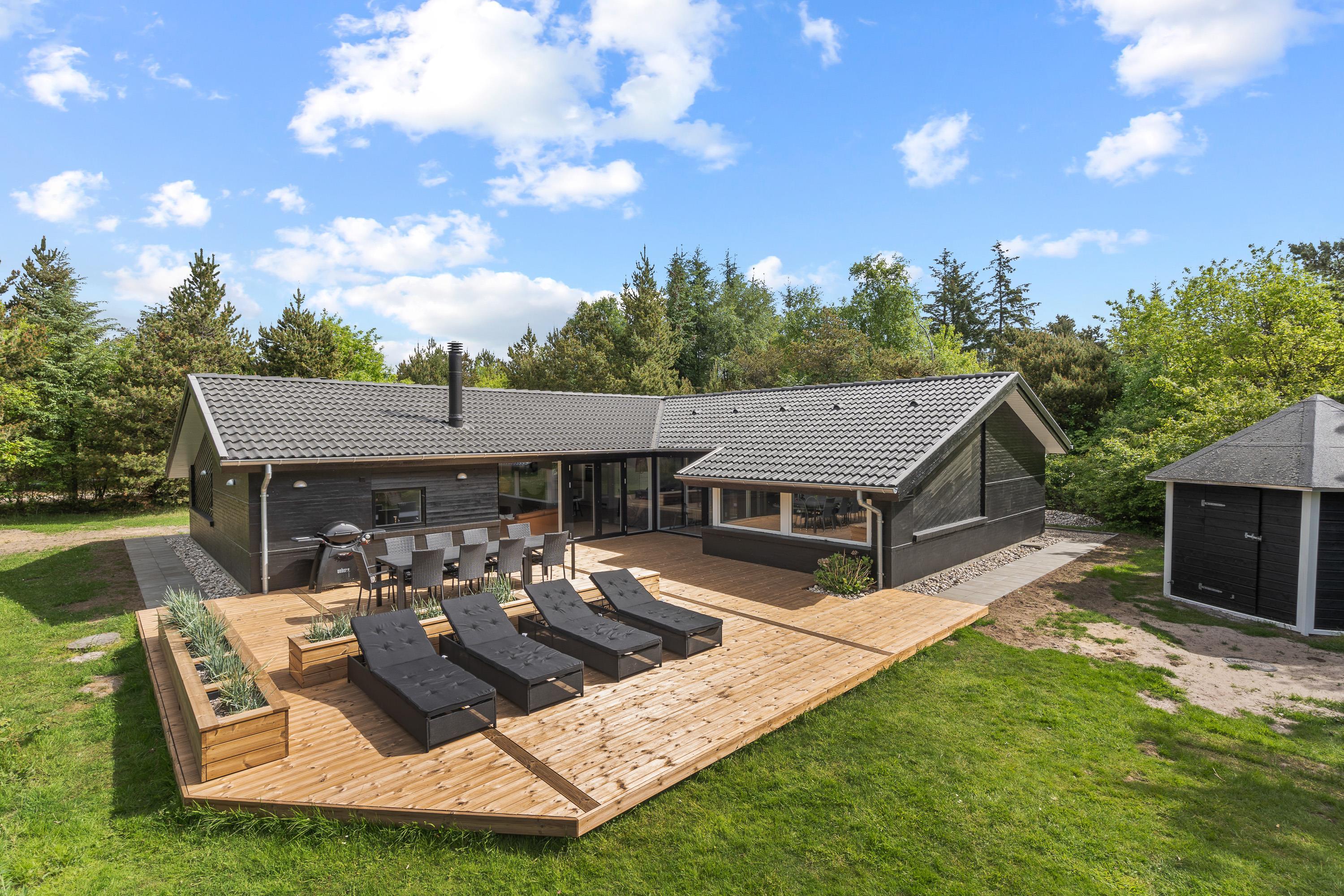 På Vestervænget 22 i Ho står dette firestjernede feriehus klar til en ferie for op til 10 personer; et oplagt feriehus, hvis I er en stor familie, 2 familier eller en vennegruppe, der er på udkig efter et sommerhus til jeres næste ferie. Det nyrenoverede feriehus byder på en moderne indretning, og her venter jer desuden både swimmingpool, spa og sauna. I sommerhuset er 1 hund også velkommen på ferien!