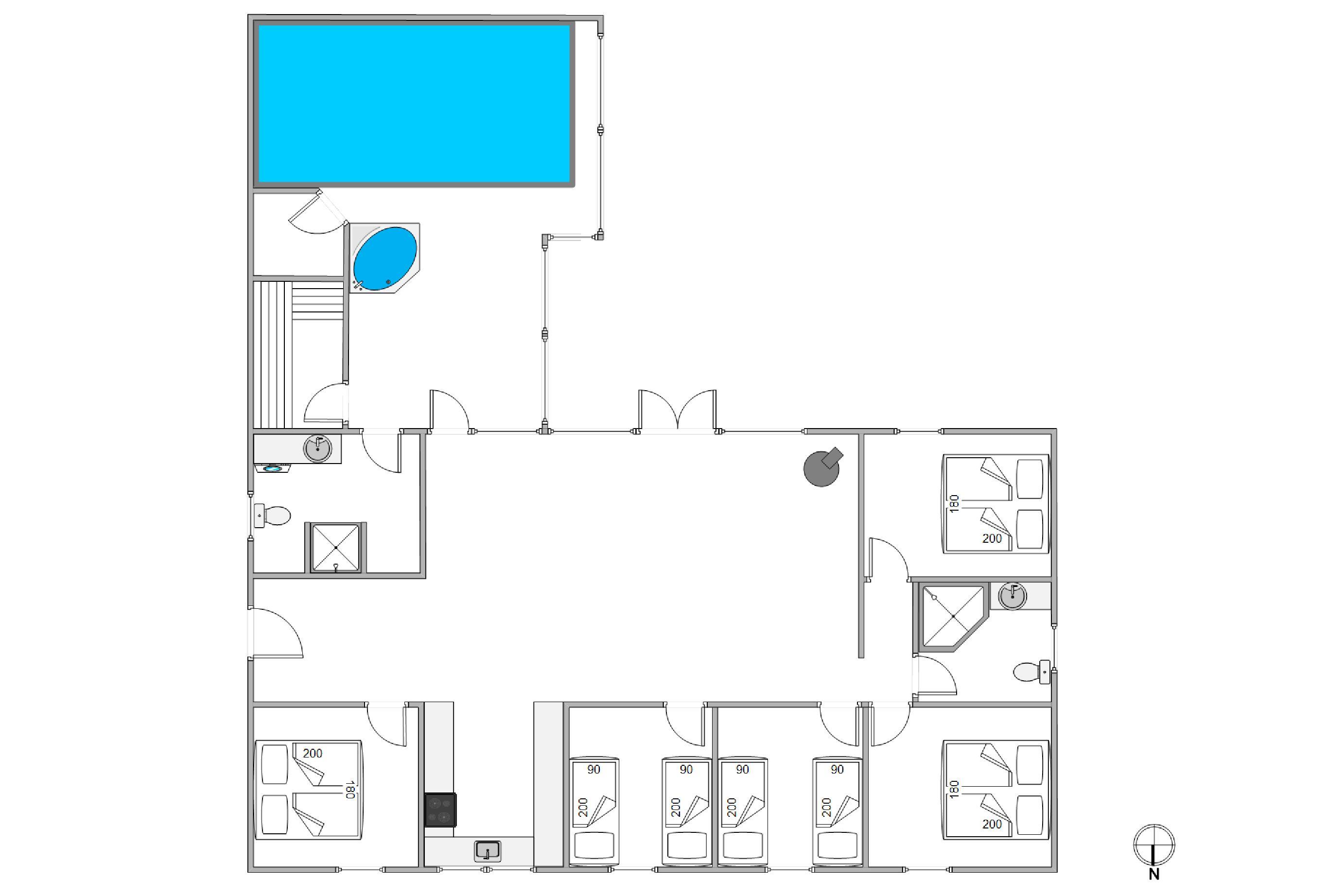 I det 182 kvadratmeter store feriehus venter jer desuden 5 gode soveværelser, hvor I kan samle ny energi til de kommende feriedage. Soveværelserne er indrettet med i alt 3 dobbeltsenge og 4 enkeltsenge. Feriemorgenerne begynder uden kø og kolde tæer takket være sommerhusets 2 badeværelser med gulvvarme.