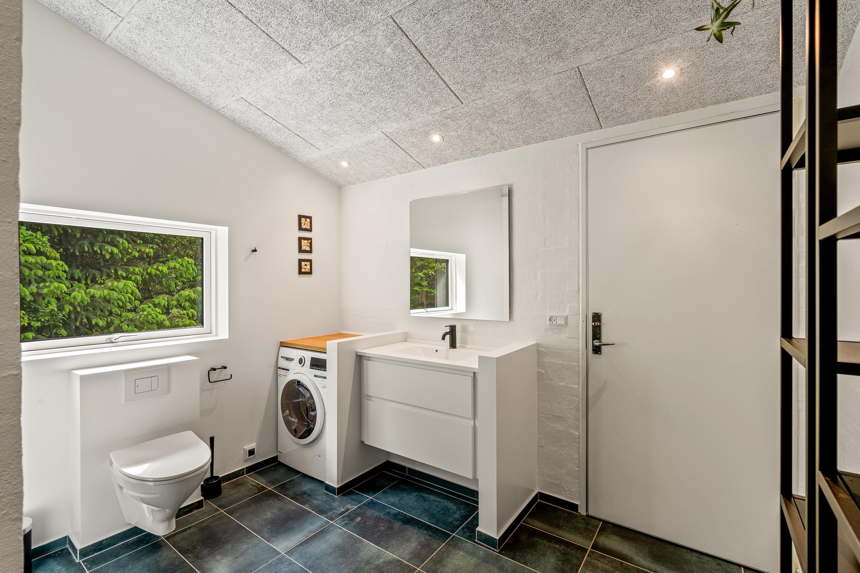 Der er gode praktiske faciliteter i feriehuset, der hjælper jer med det praktiske husarbejde. I køkkenet hjælper opvaskemaskinen med opvasken efter madlavningen, og derudover er der vaskemaskine og tørretumbler, der hjælper med tøjvasken i løbet af ferien. Feriehuset råder også over energibesparende varmepumper.