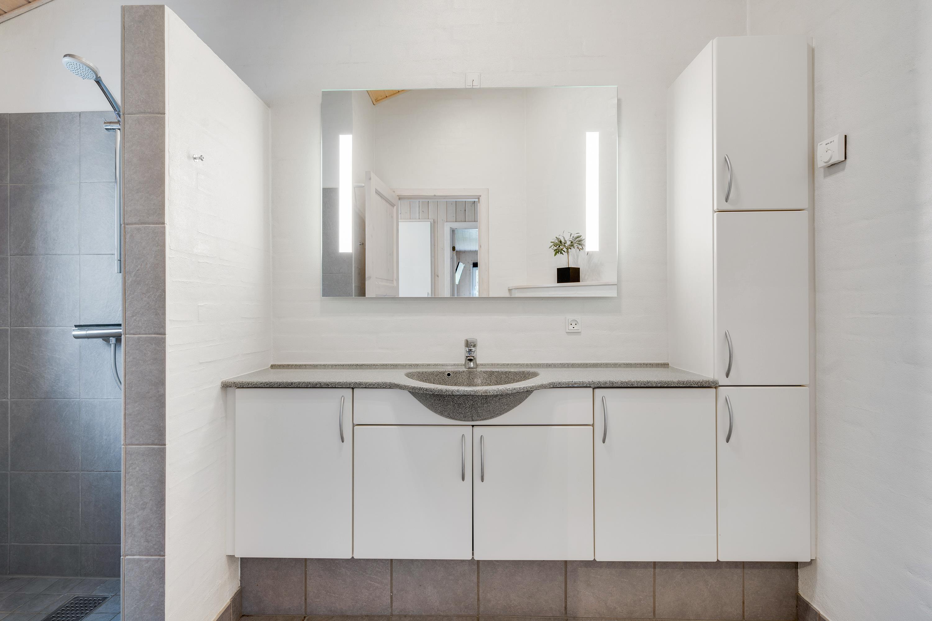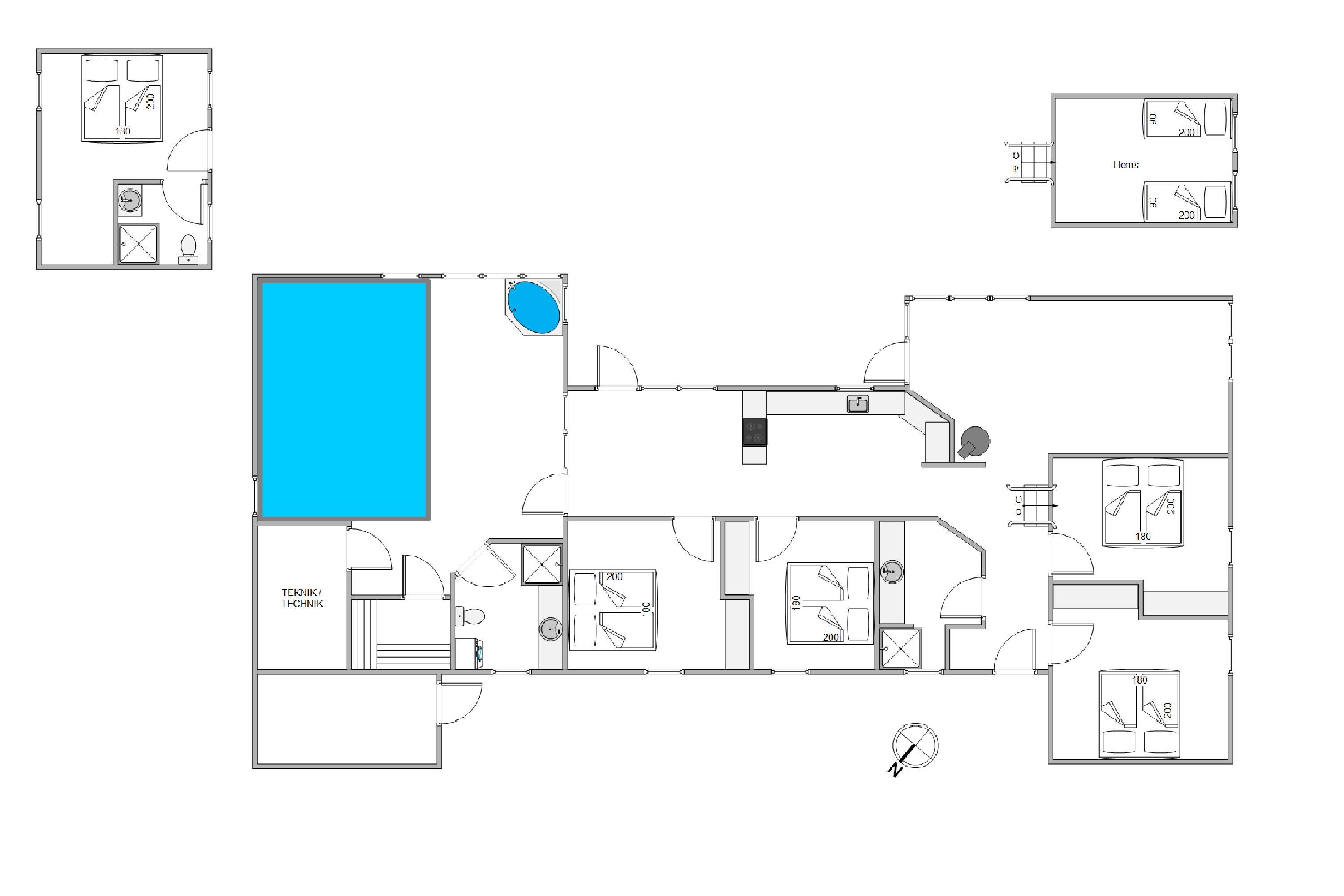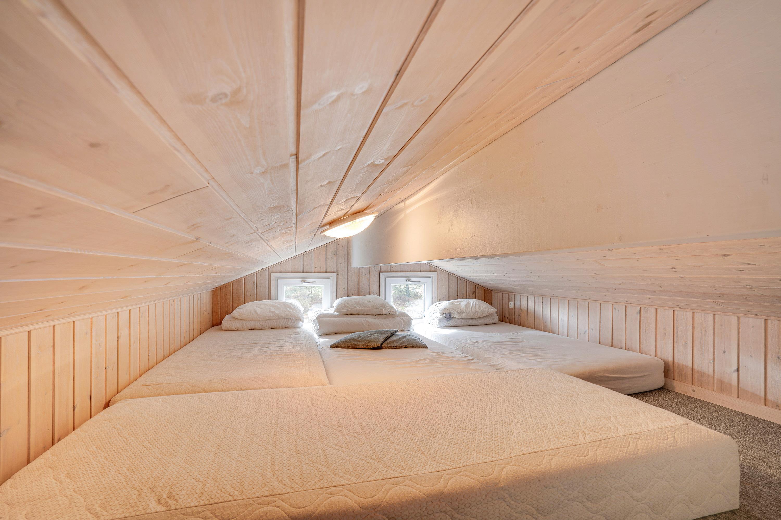 Feriehuset har plads op til 12 personer fordelt på 5 soveværelser og to ekstra opredninger på hemsen til familiens yngre generationer. Det ene soveværelse og et af husets 3 badeværelser befinder sig i annekset, der giver mulighed for at trække stikket og lade op til næste feriedags oplevelser. På badeværelset finder i også et pudslebord, som er en dejlig tilføjelse for forælderne.