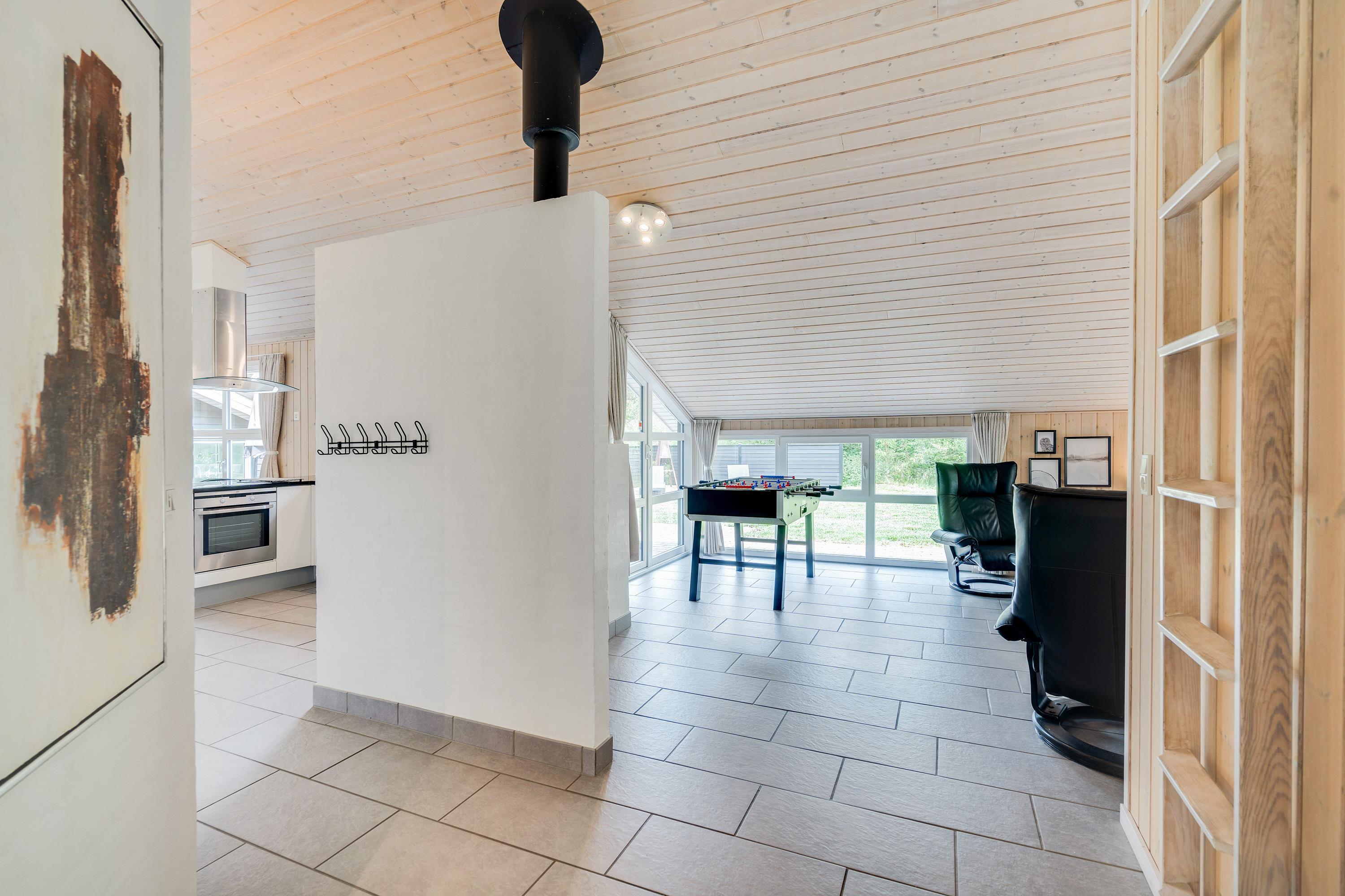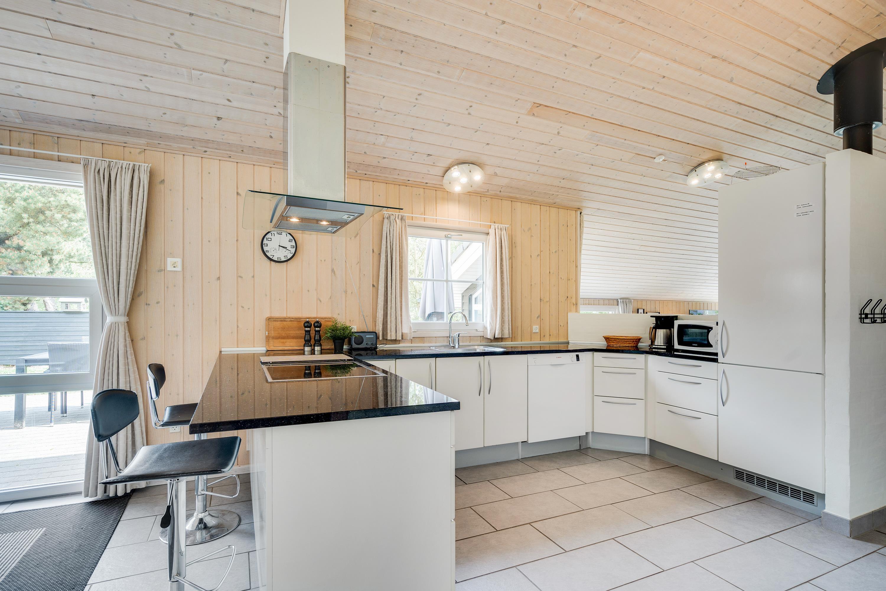 Feriehuset er naturligvis udstyret med moderne komfort såsom opvaskemaskine, vaskemaskine, tørretumbler, en stabil internetforbindelse samt en brændeovn, der sørger for den helt rigtige sommerhusstemning på en kølig aften.