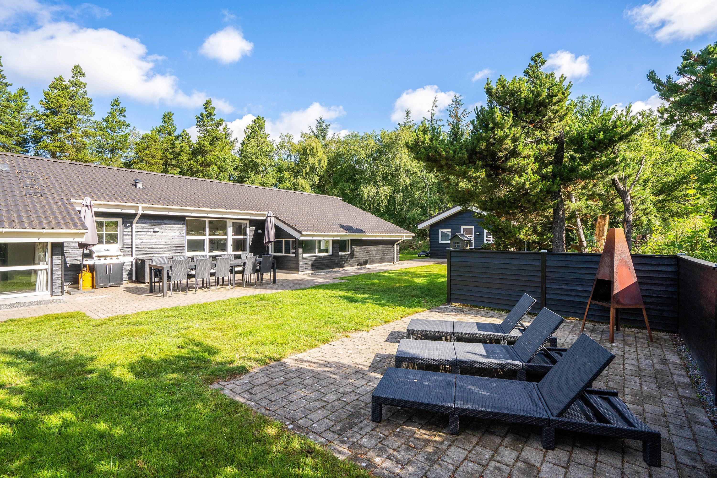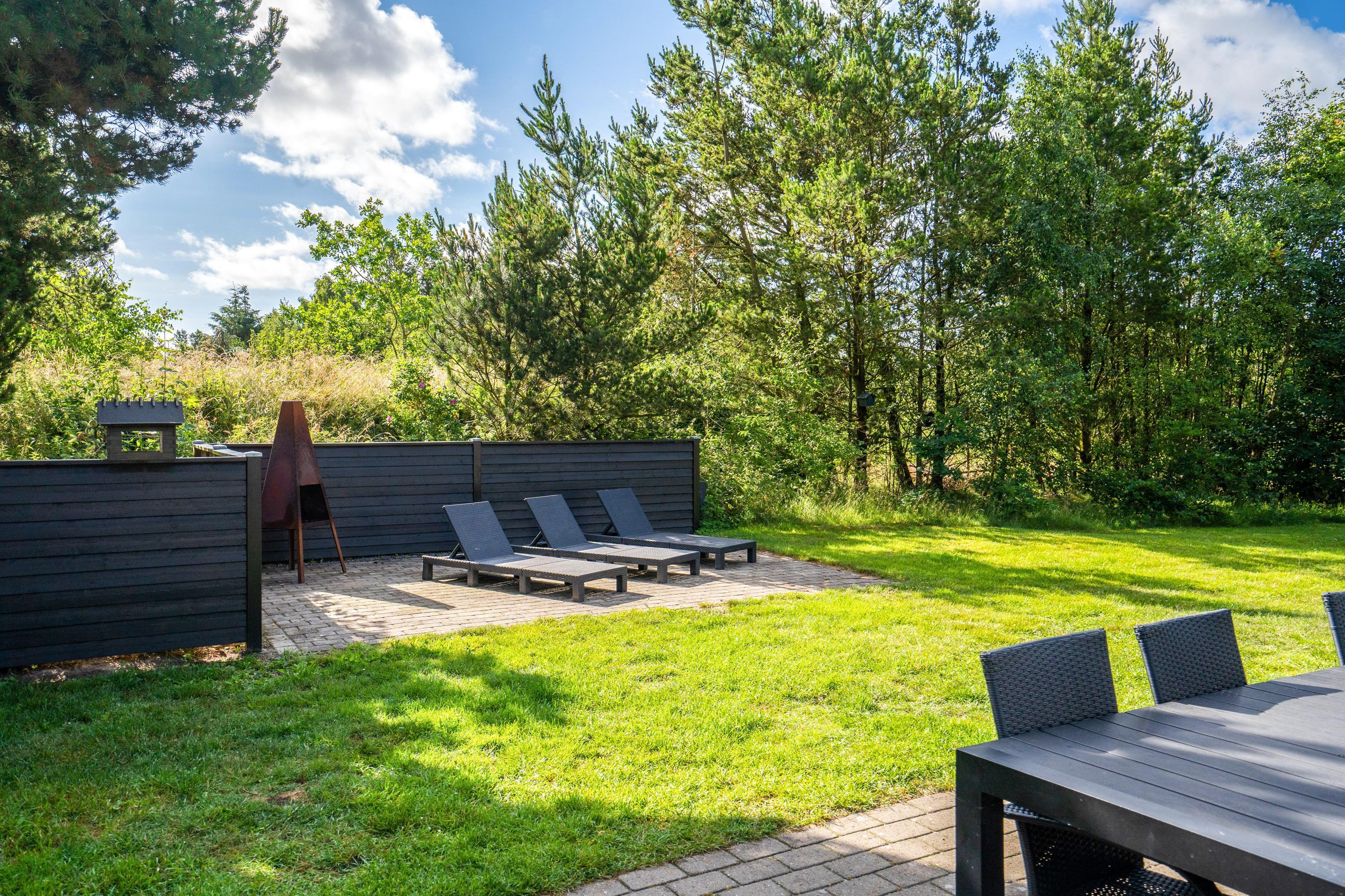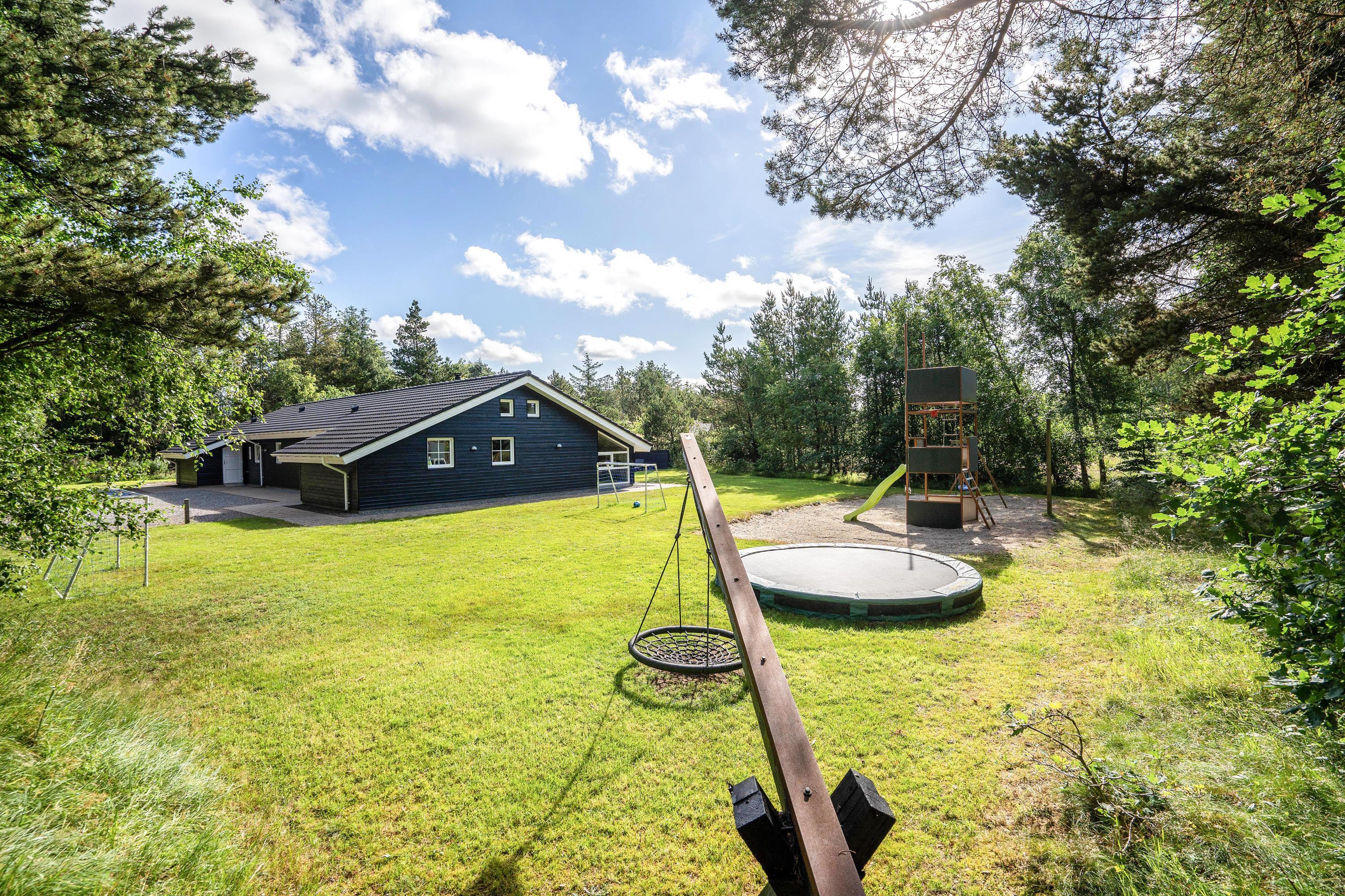 Den store have sørger for underholdning og leg til børn og barnlige sjæle i trampolinen eller på klatrevæggen og giver samtidig rum og tid til velfortjent afslapning for voksne solbadere eller grill-entusiaster. Der er også sørget for en hundegård til de firbenede feriegæster.