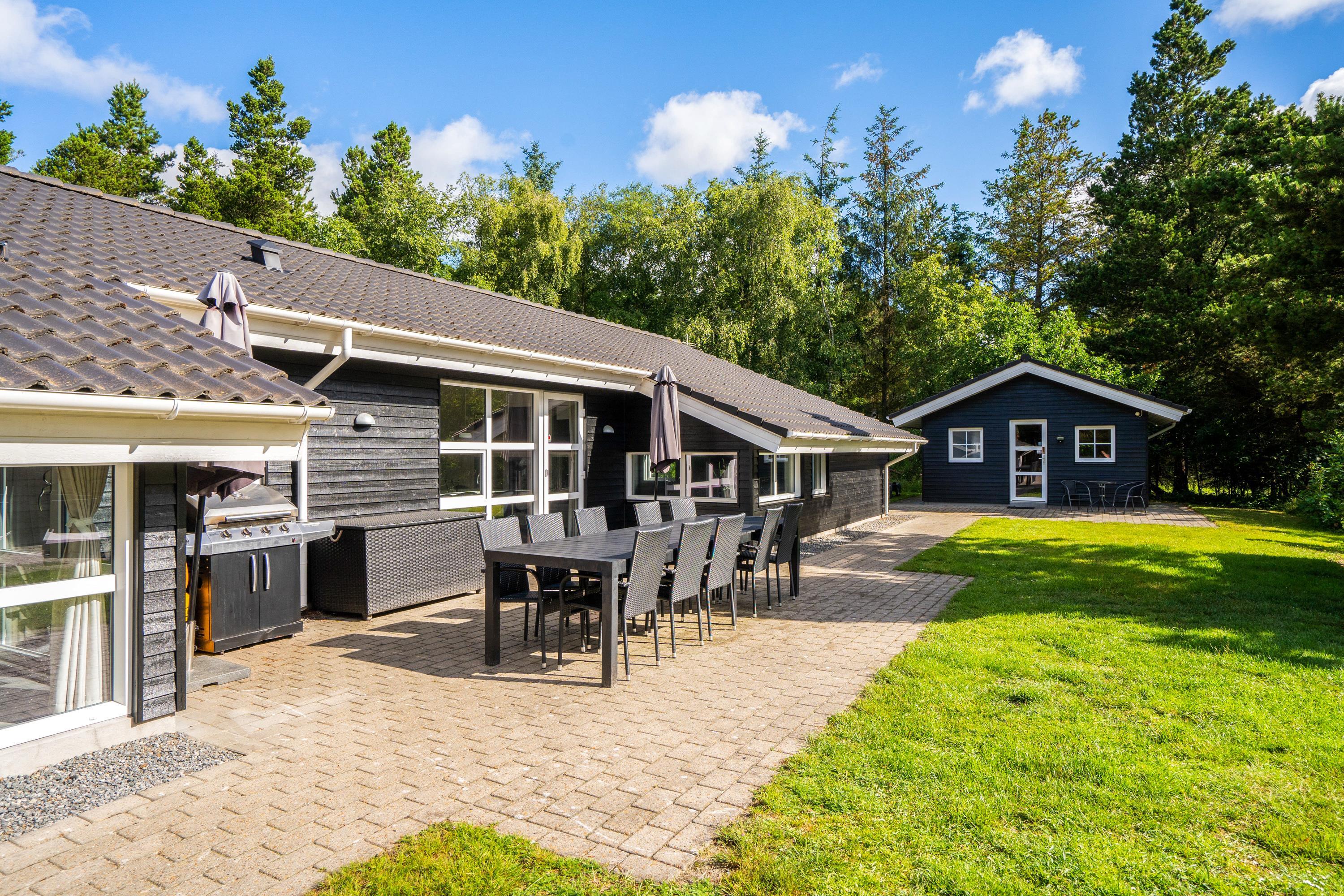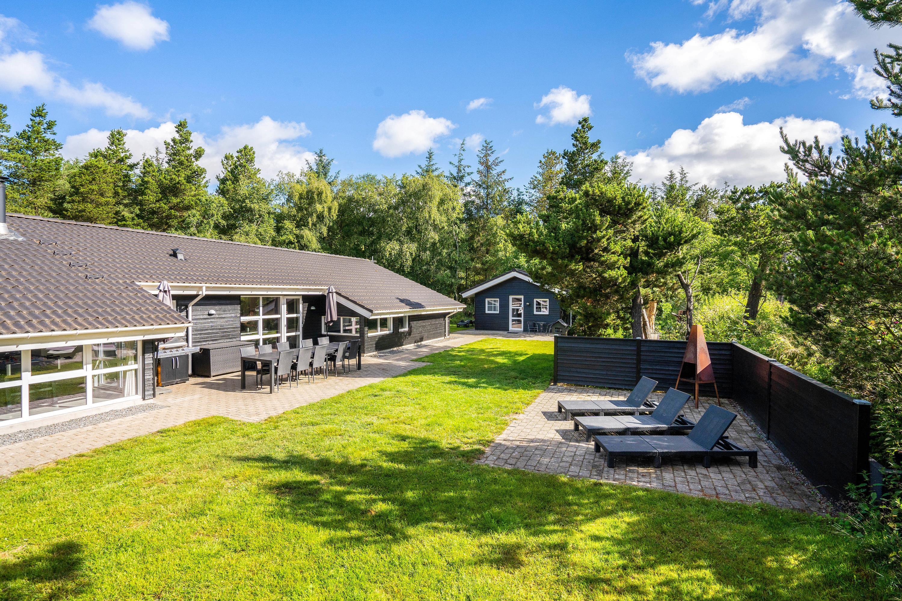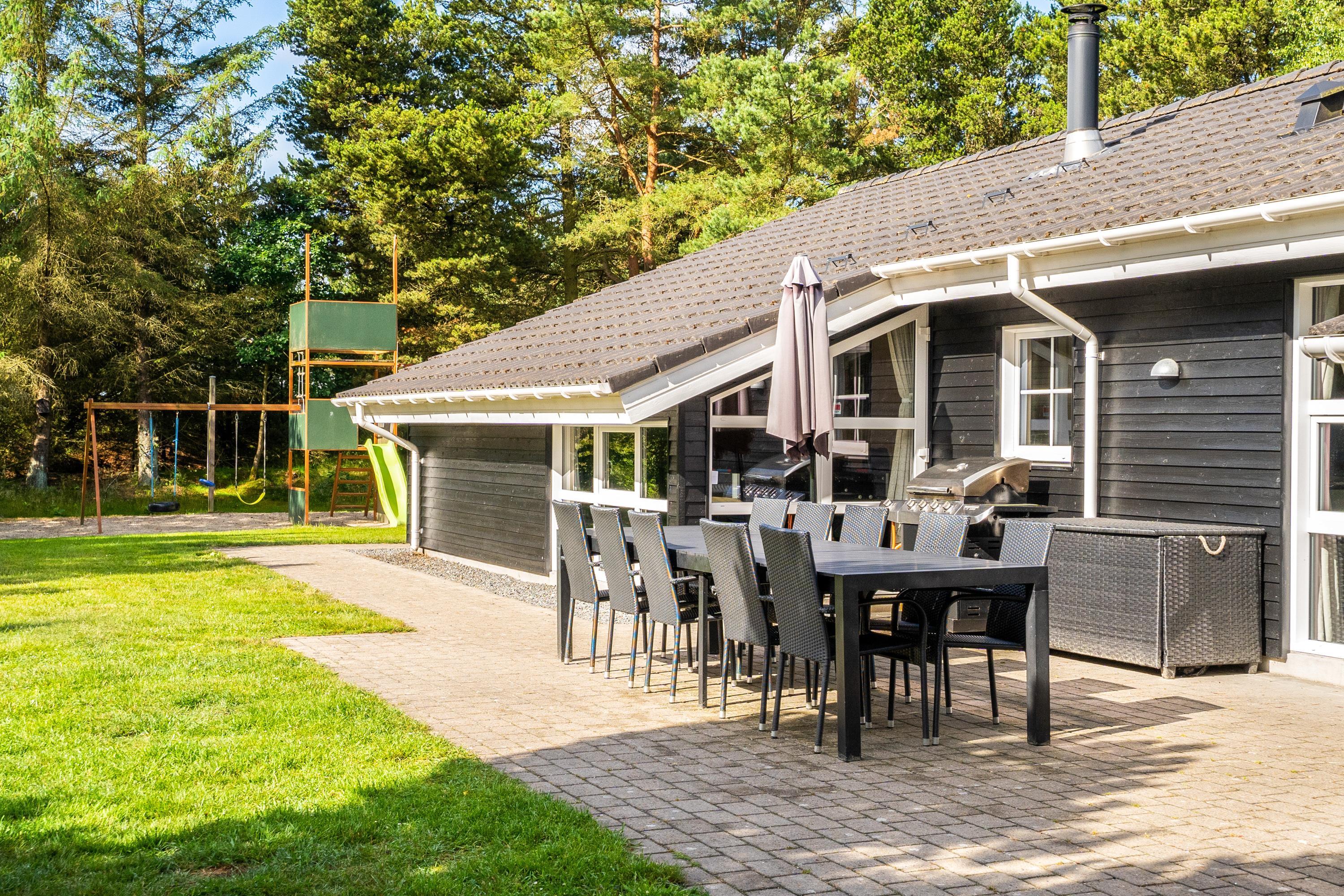 Den store have sørger for underholdning og leg til børn og barnlige sjæle i trampolinen eller på klatrevæggen og giver samtidig rum og tid til velfortjent afslapning for voksne solbadere eller grill-entusiaster. Der er også sørget for en hundegård til de firbenede feriegæster.