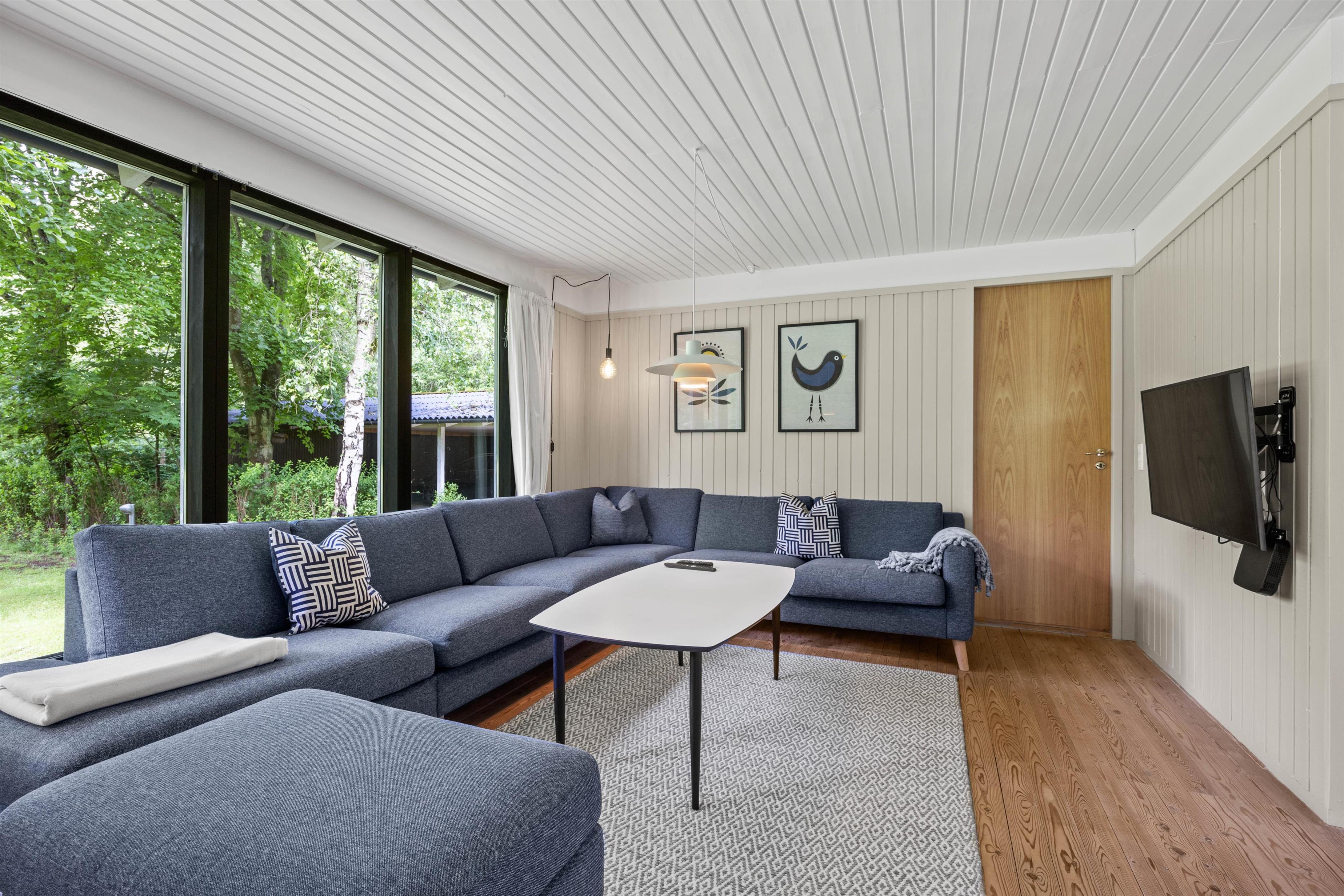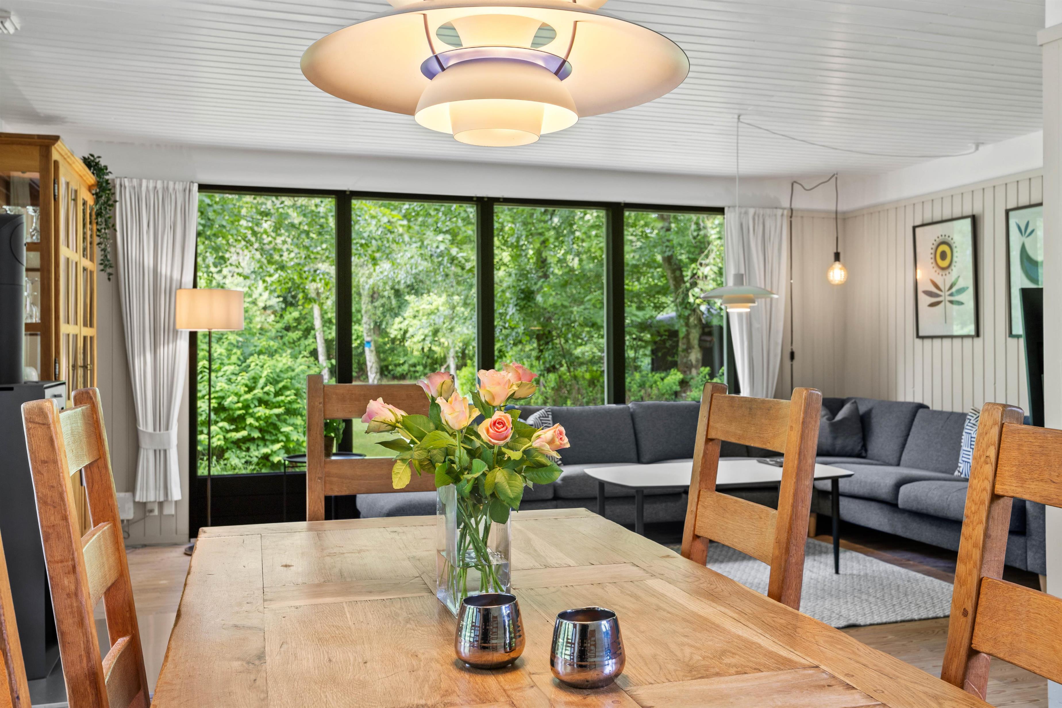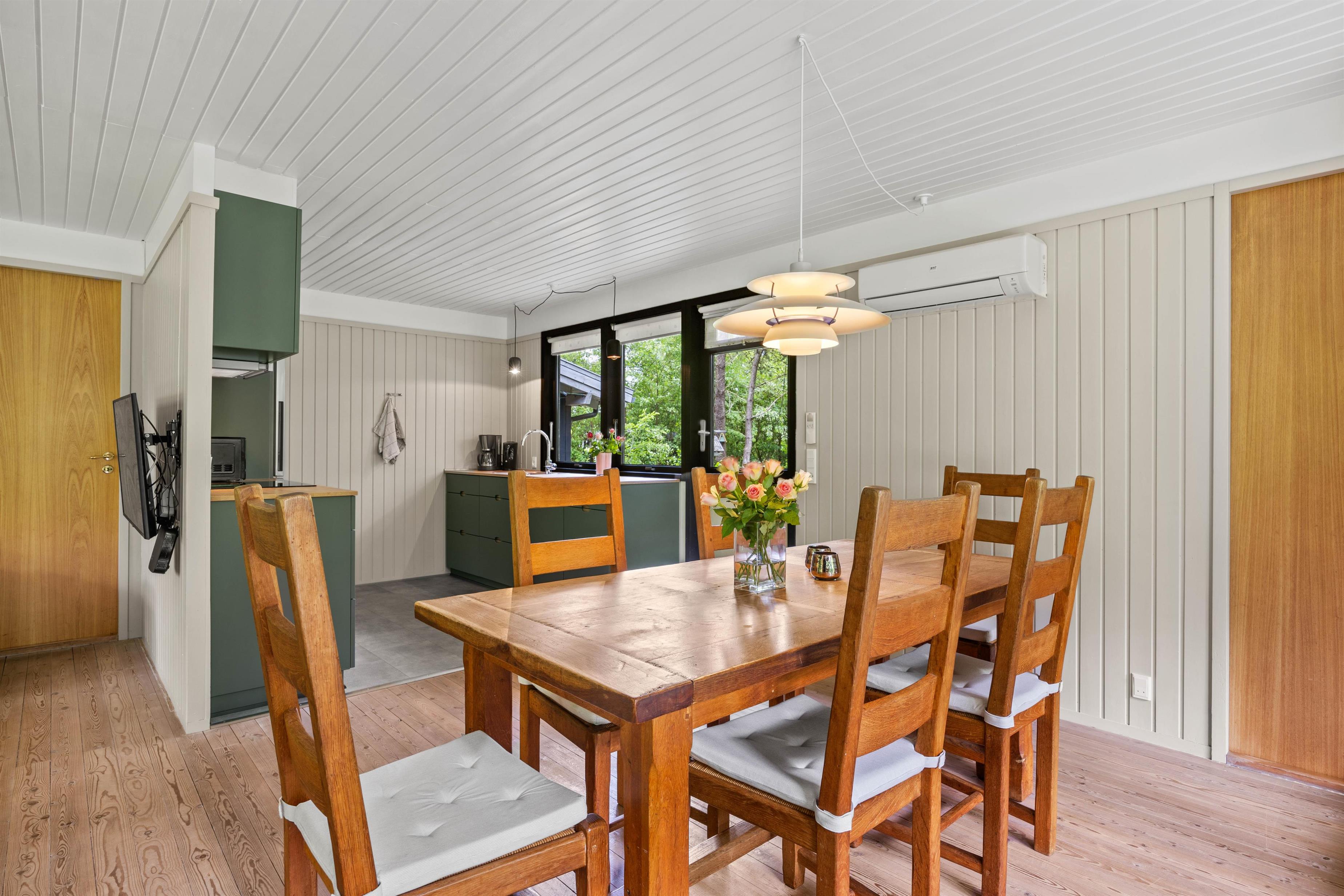Jeres samlingspunkt i sommerhuset bliver utvivlsomt alrummet, hvor køkken, stue og spiseplads er samlet i ét rum. Her kan I tilbringe mange dejlige feriestunder sammen med madlavning, spil og film. Centralt i alrummet står brændeovnen, der spreder hyggelig stemning og varme i rummet.