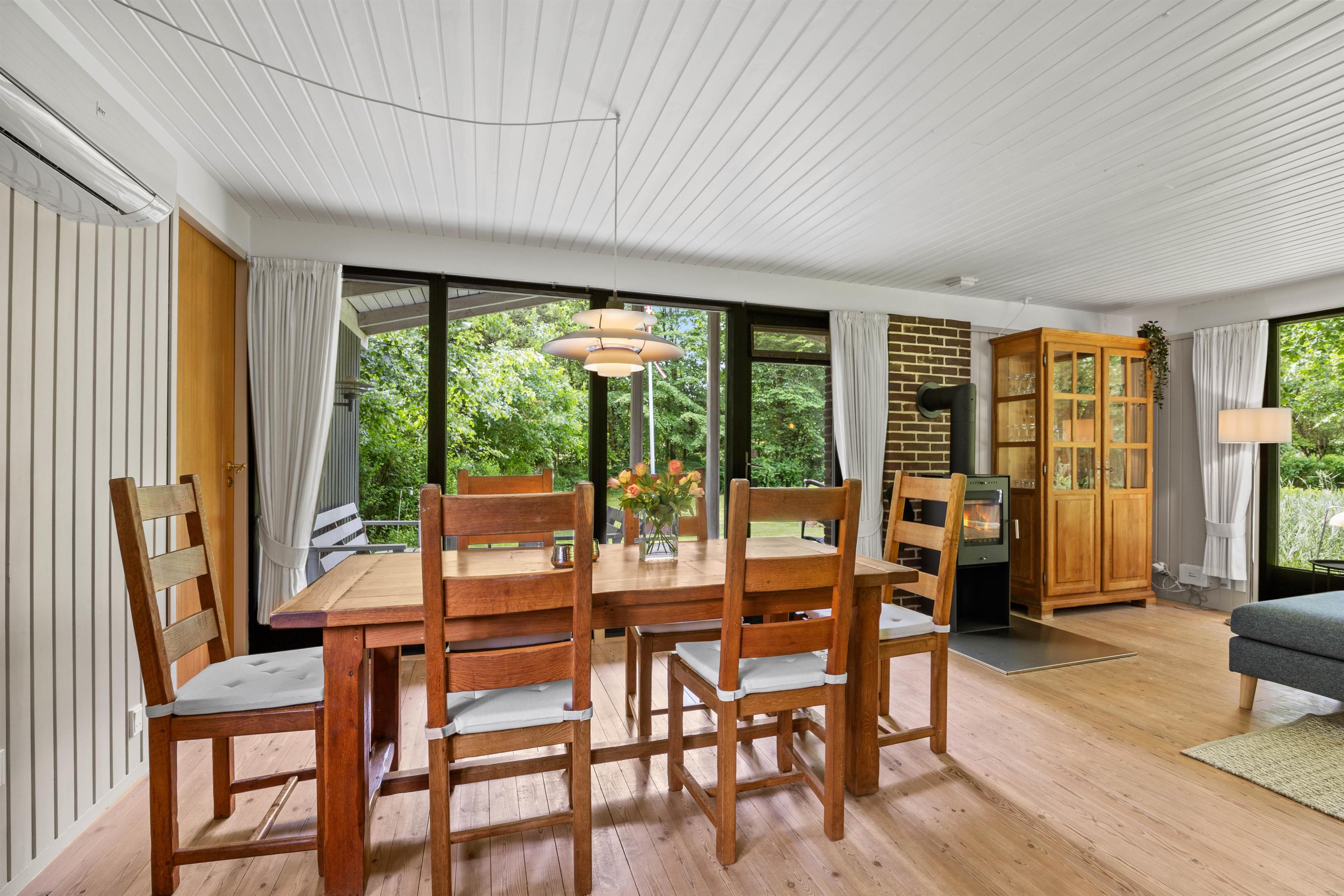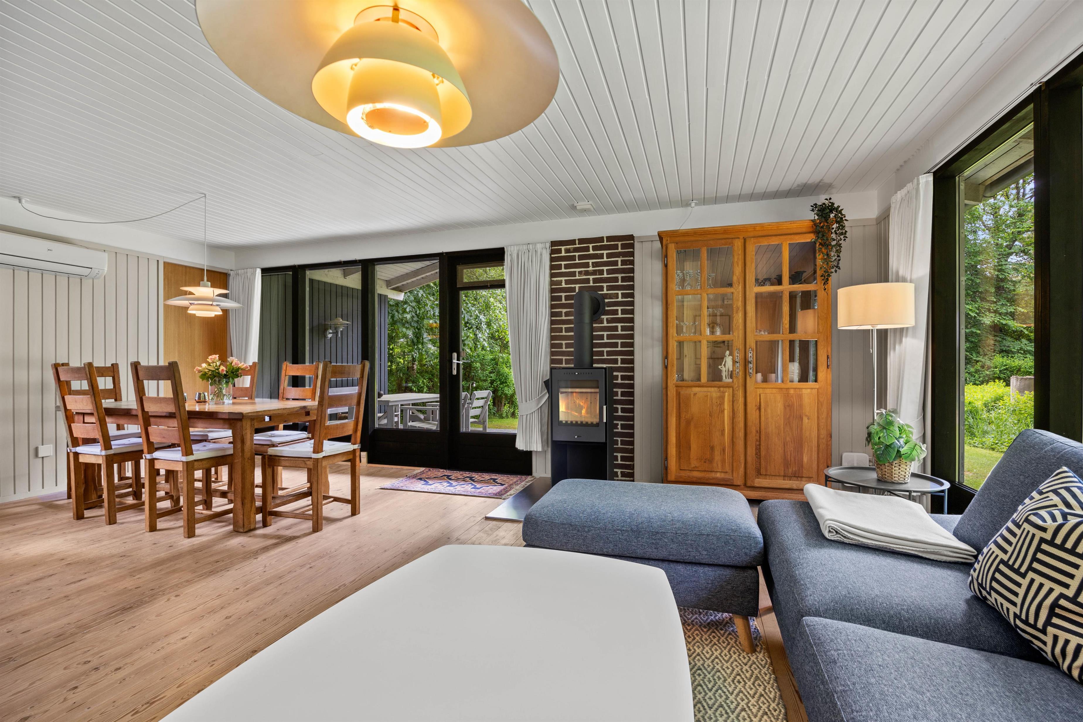 Skøn indretning med brændeovn