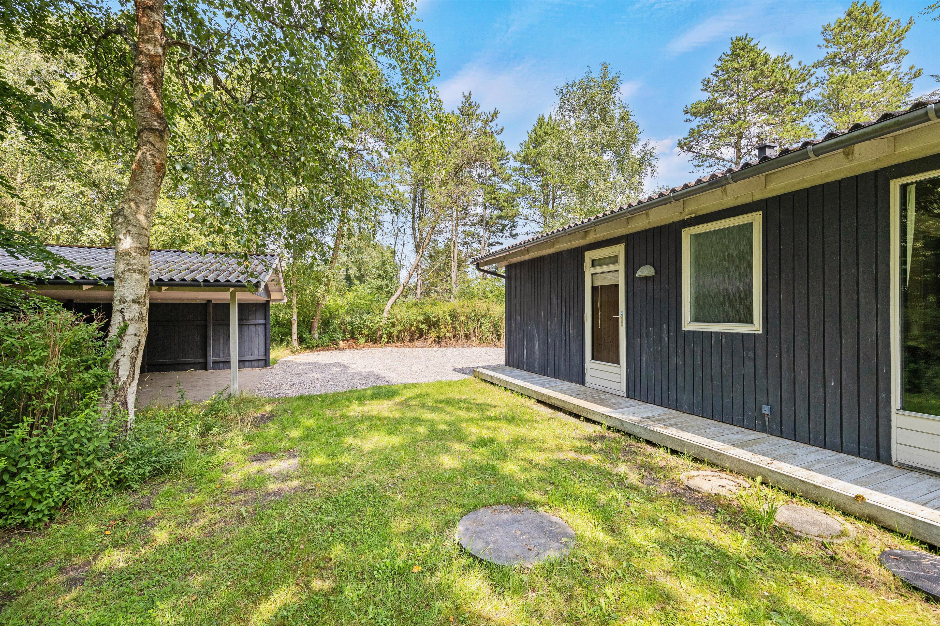 Sommerhuset på Toftevej 32 ligger på en skøn naturgrund, hvor I har masser af plads at boltre jer på – især børnene vil helt sikkert elske at lege på grunden. Desuden er grunden omgivet af en masse træer og buske, så I kan nyde privatlivet på ferien.