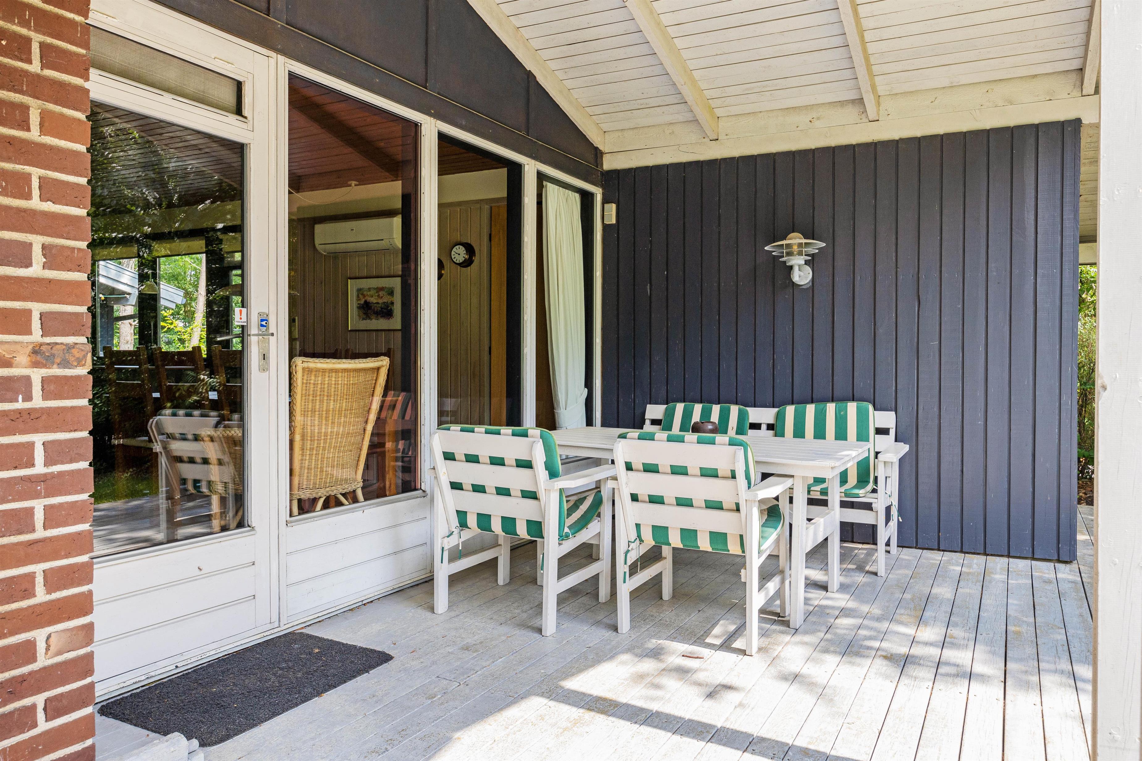 Der er flere gode terrasser, som I kan tilbringe de solrige feriedage på. På terrasserne kan I finde jer godt til rette i de komfortable havemøbler og liggestole på et godt spot i solen, hvor I kan nyde ferien, varmen og udsigten til den smukke natur.