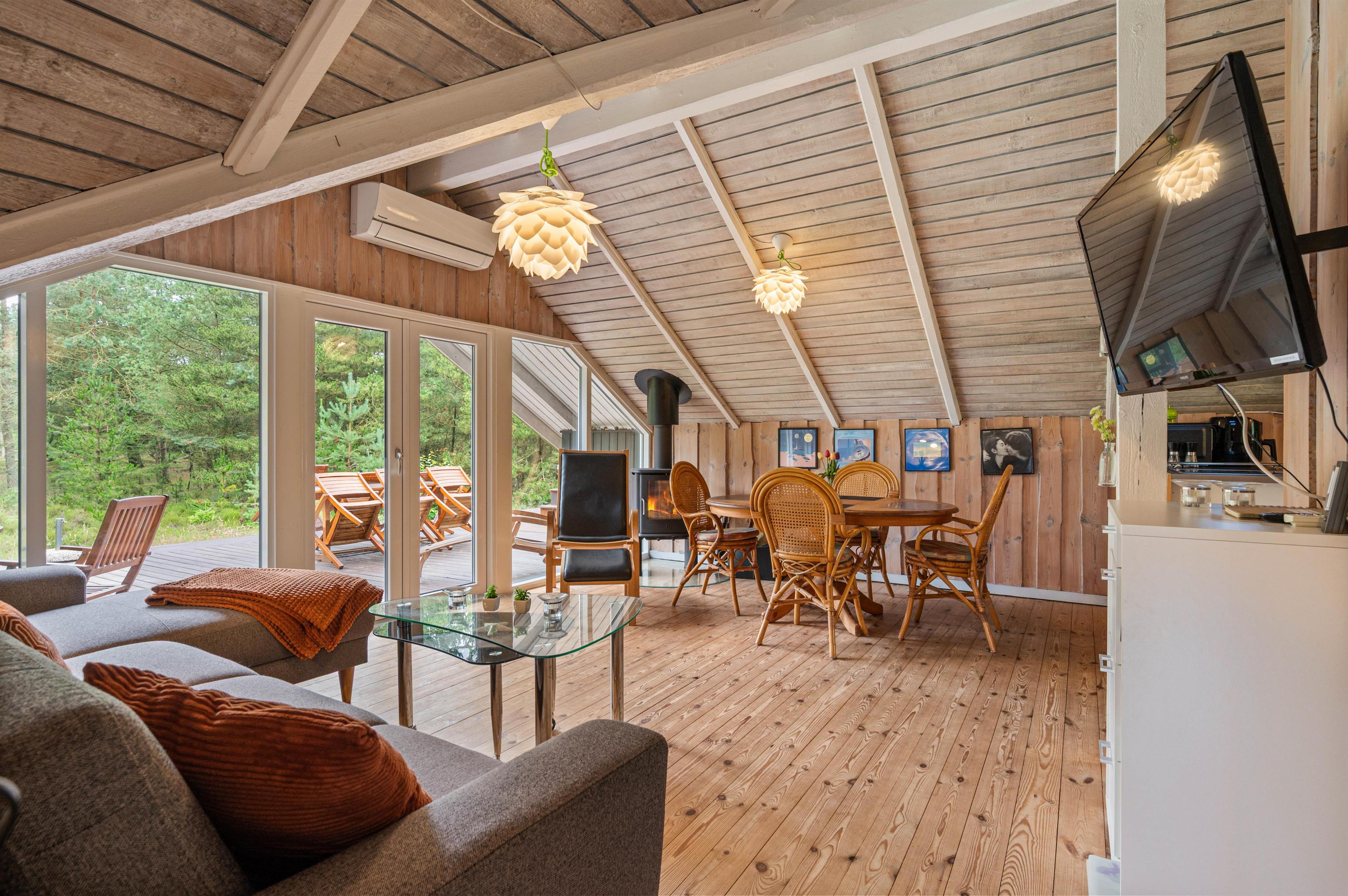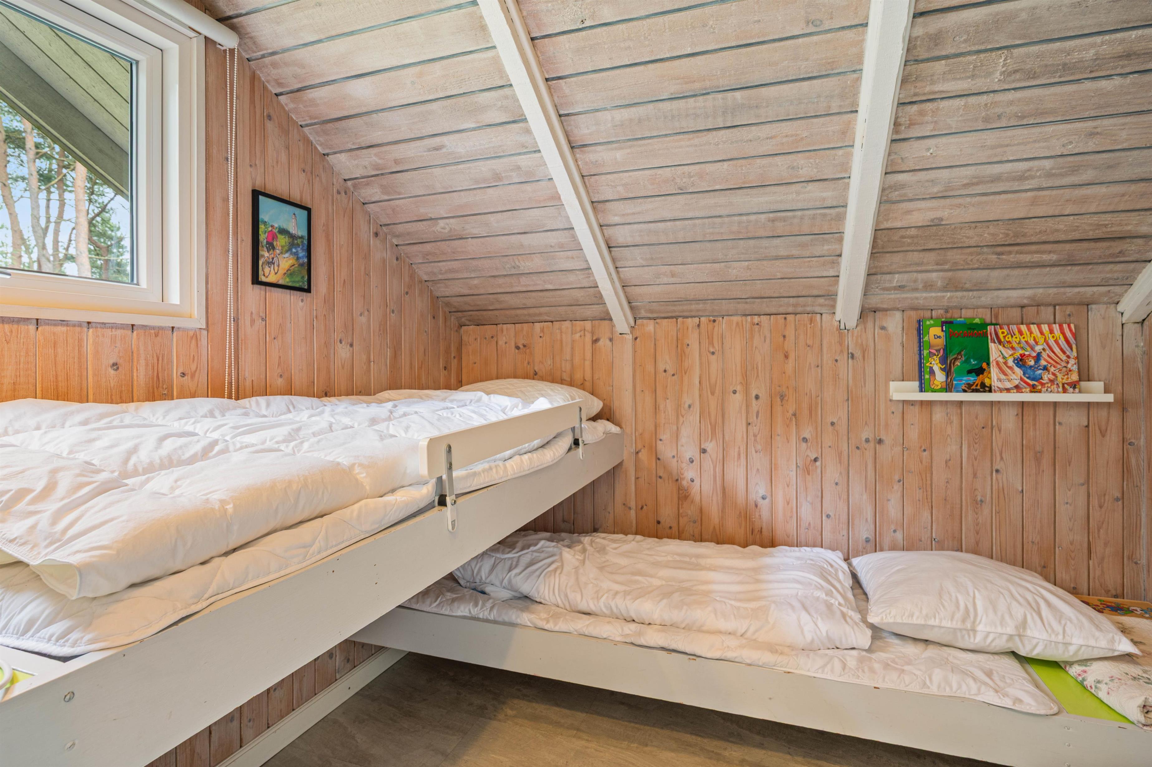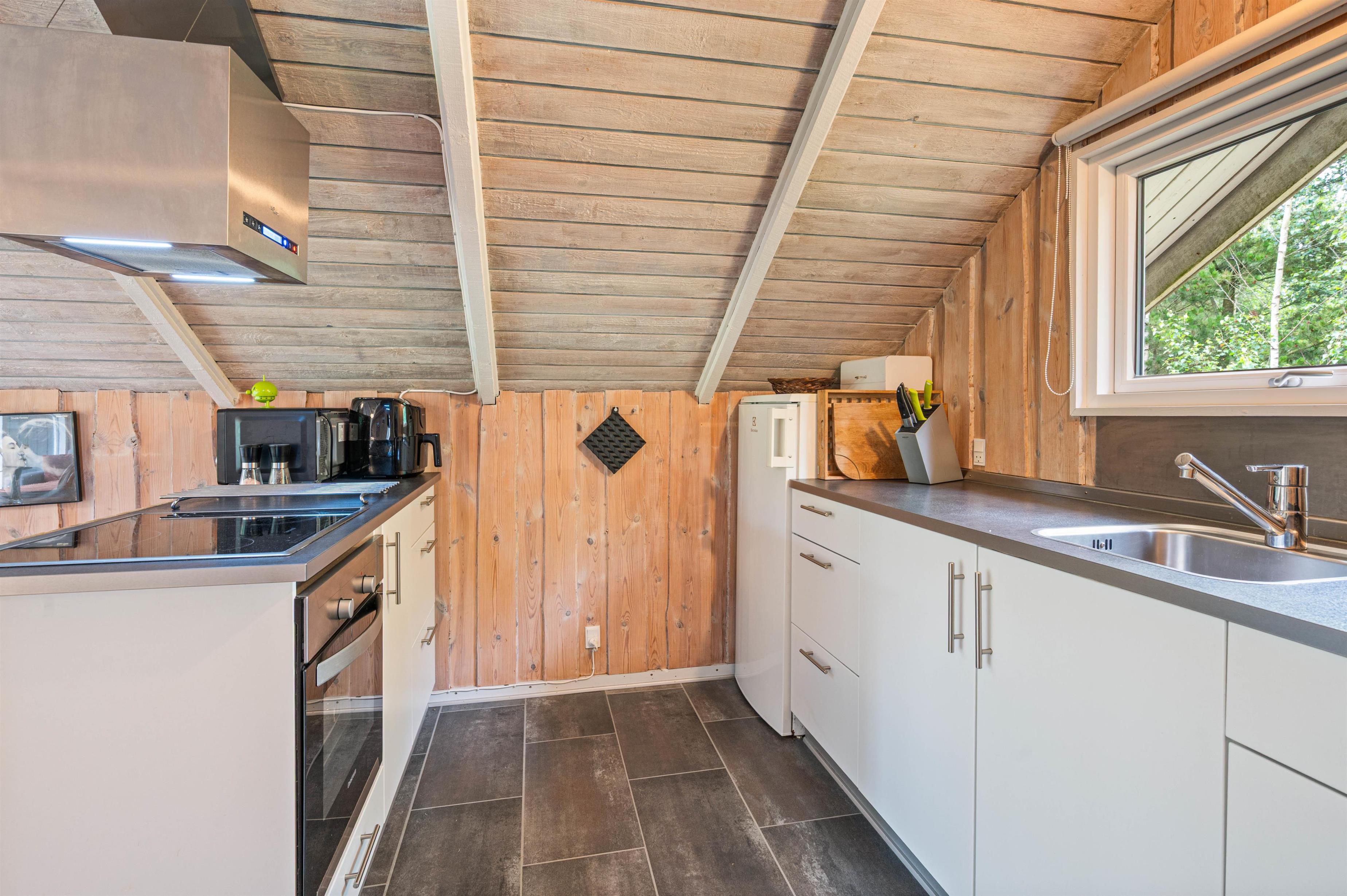 Den klassiske sommerhuscharme med mange skråvægge bliver fuldendt af brændeovnen, som med sine knitrende flammer vil sprede varme og god feriestemning hele året rundt - på regnfulde dage med varm kakao, og på sene forårsaftener, mens mørket falder på, og I nyder et sidste glas rødvin inden sengetid.