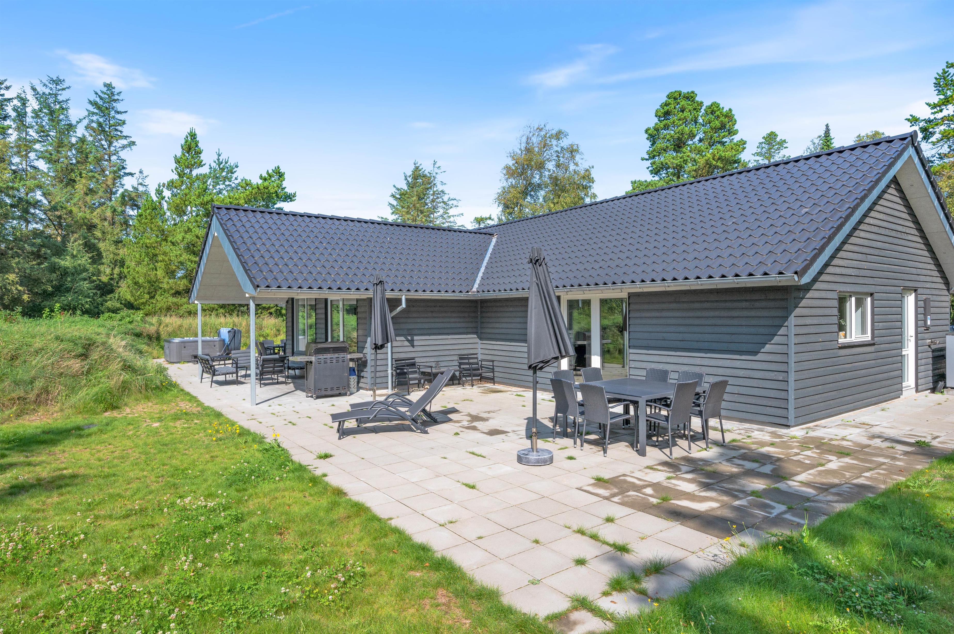 Luksussommerhuset har en kæmpe terrasse, som næsten omgiver hele feriehuset. Her finder I diverse havemøbler, så I bedst muligt kan udnytte de solrige dage på terrassen. Terrassen er også delvist overdækket, hvilket er praktisk, hvis I for eksempel ønsker at nyde frokosten udenfor i skyggen. Til sommerhuset har I også en gasgrill til fri afbenyttelse, hvor det altså går lidt hurtigere, når maden skal tilberedes. Desuden har sommerhuset et indbygget el-stik til jer, som kører elbil.