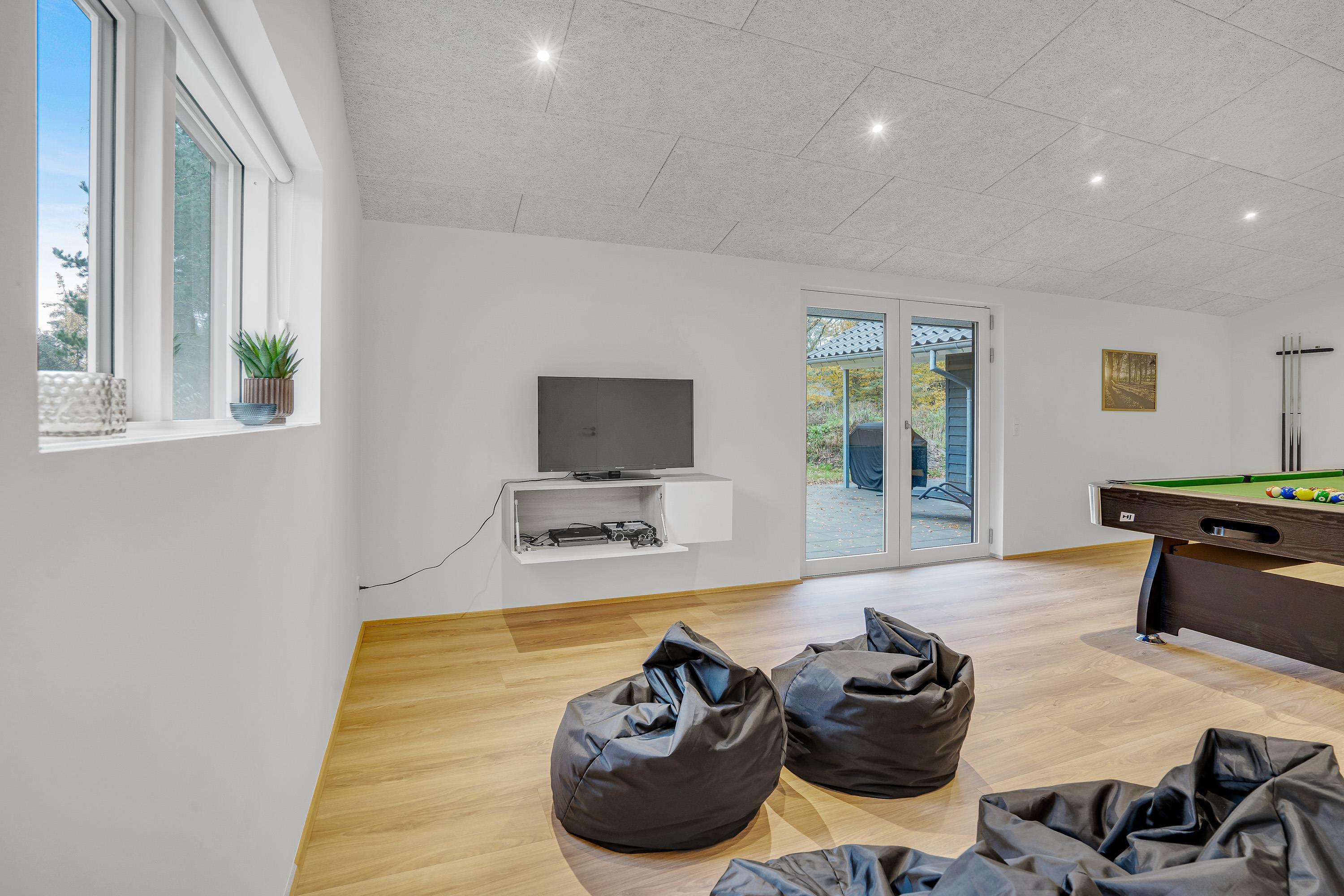 Så snart I træder indenfor, vil I føle jer til rette i de smukke og moderne omgivelser. Her får I et sommerhus, hvor der virkelig er tænkt på alle detaljer. Indretningen er stilren, så det eneste, I skal bekymre jer om, er at slappe af.