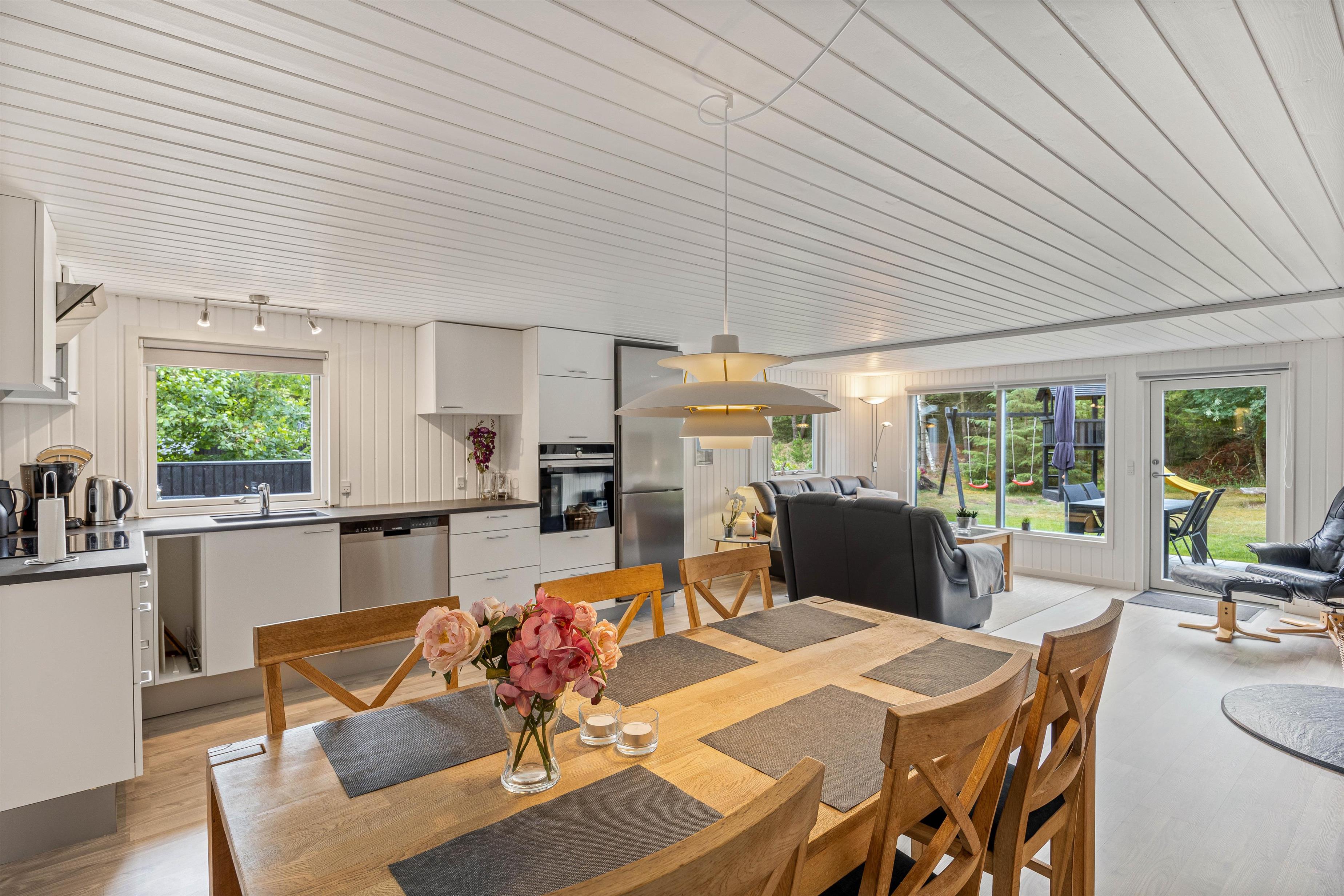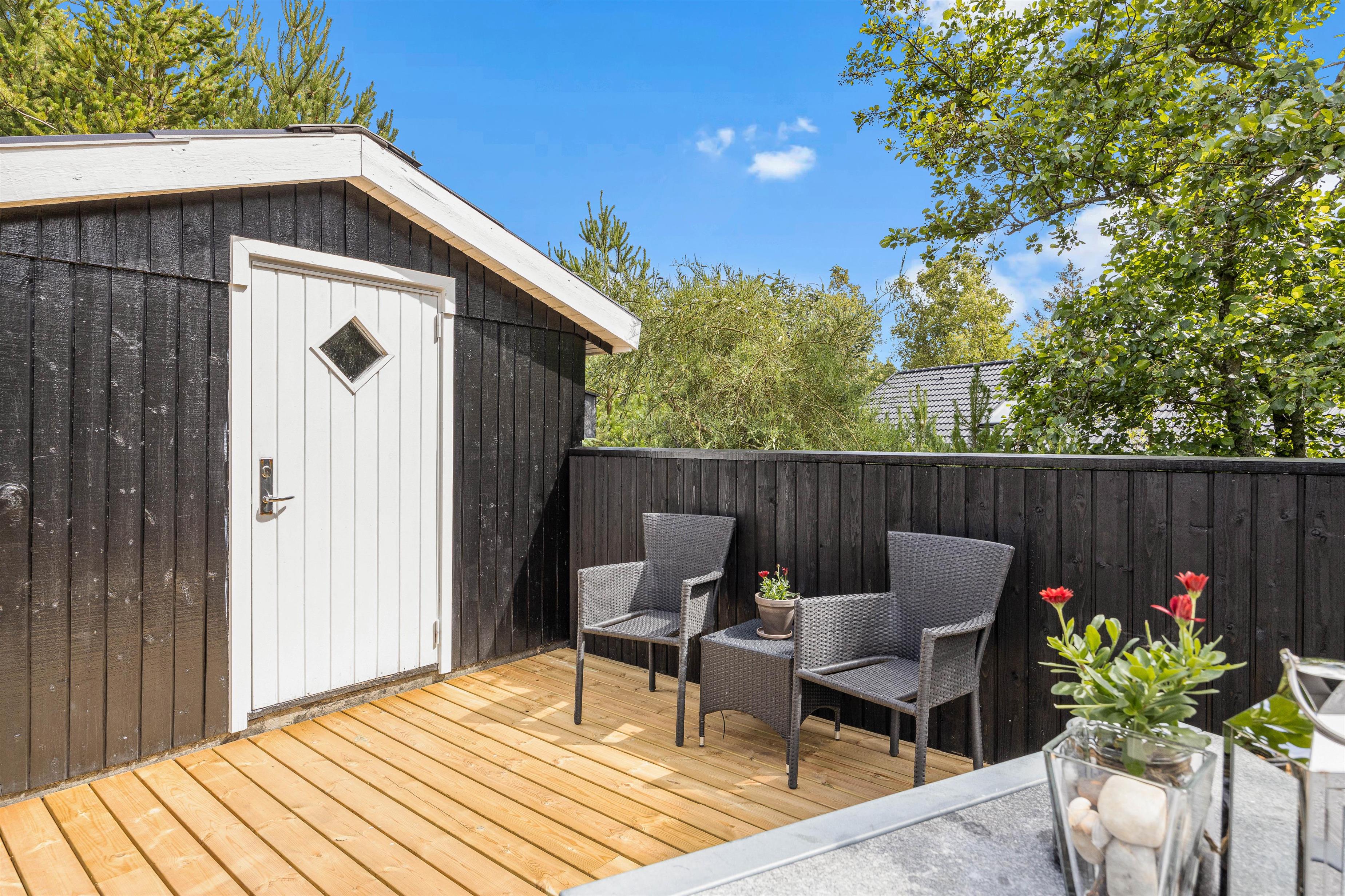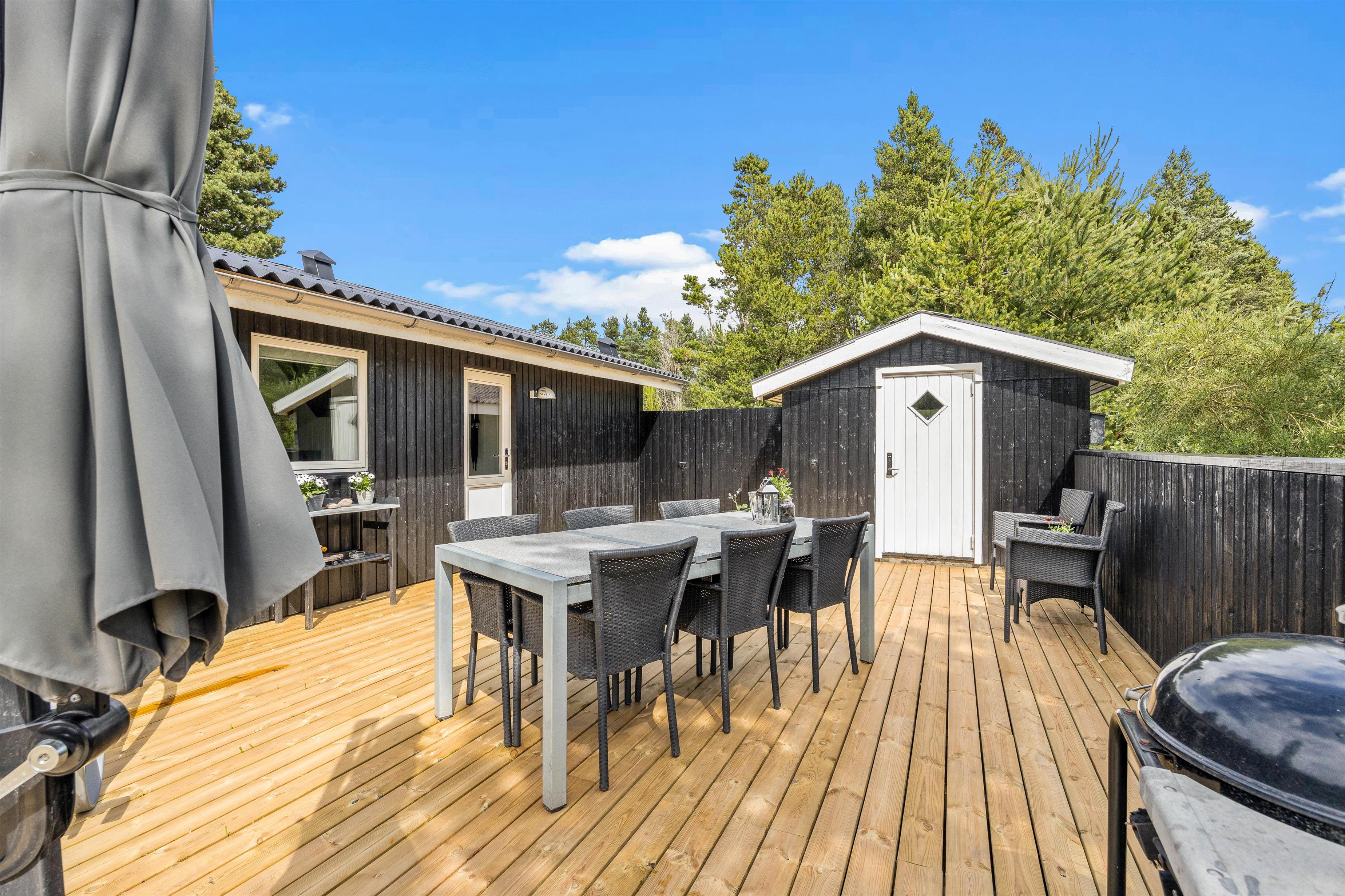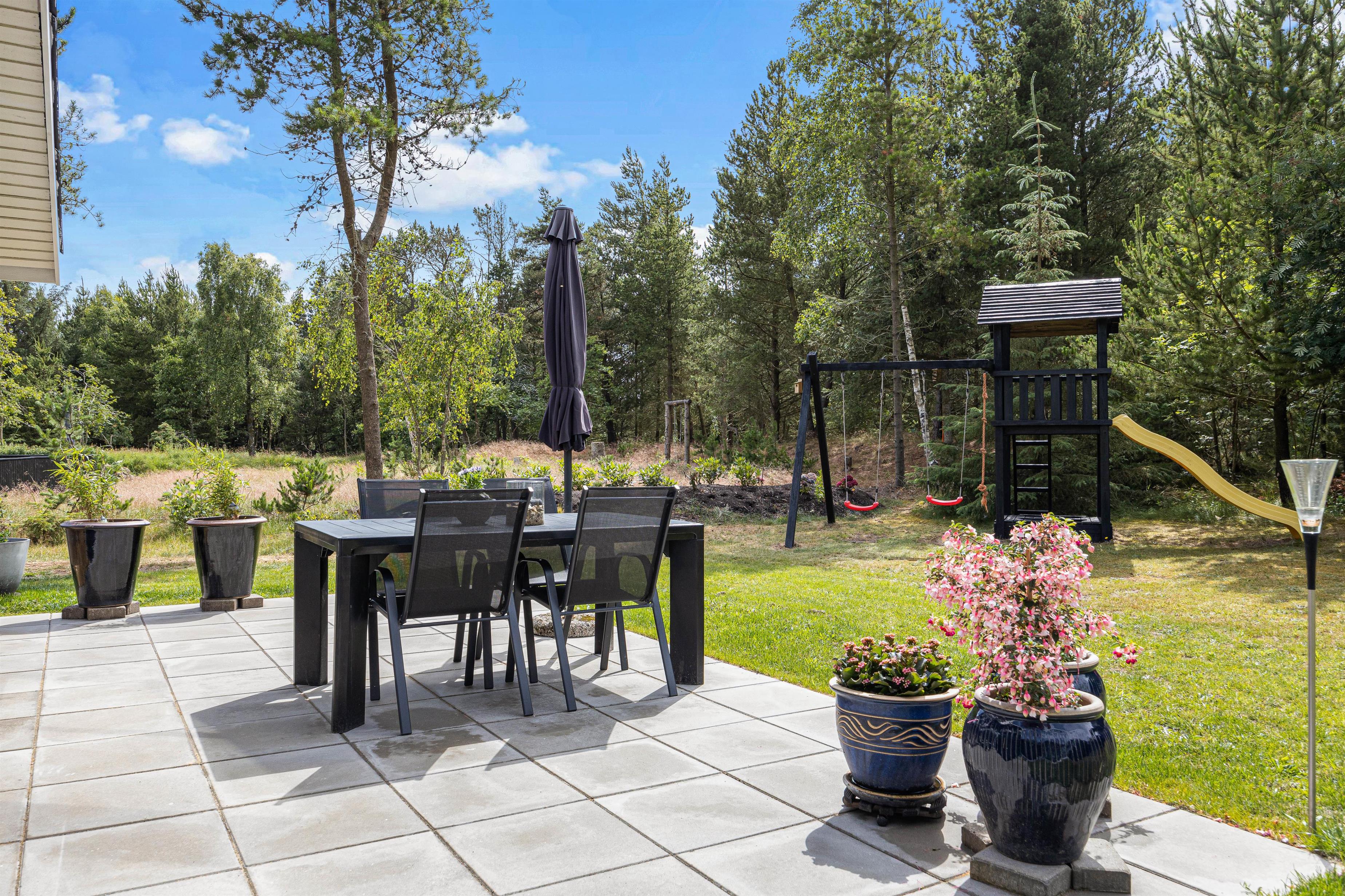 Mens børnene har fuld gang i legen i haven, kan I andre finde jer en god plads i solen på terrassen, hvor I kan læne jer tilbage i havemøbler og liggestole. Som aftenen så småt begynder at nærme sig, kan I tænde op i grillen og gøre klar til aftenens grillmiddag med lækre bøffer og god vin.