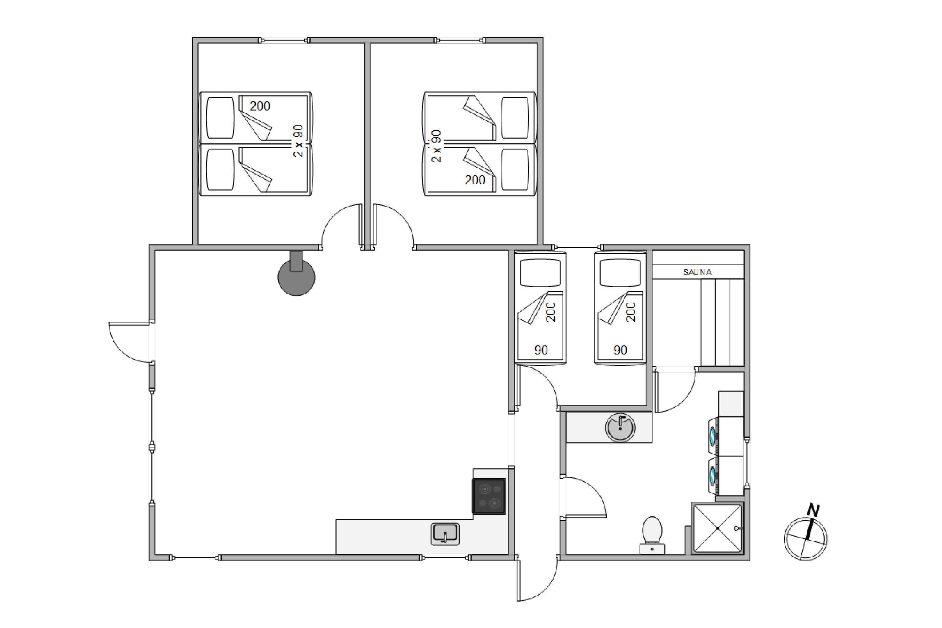 Sommerhuset har 1 badeværelse, der er udstyret med gulvvarme, så ingen skal starte dagen med kolde tæer. Fra badeværelset har I desuden adgang til sommerhusets sauna, hvor I har masser af afslapning i vente i den dejlige varme. Der er heller intet som en tur i saunaen efter en frisk gåtur i naturen eller ved Vesterhavet.