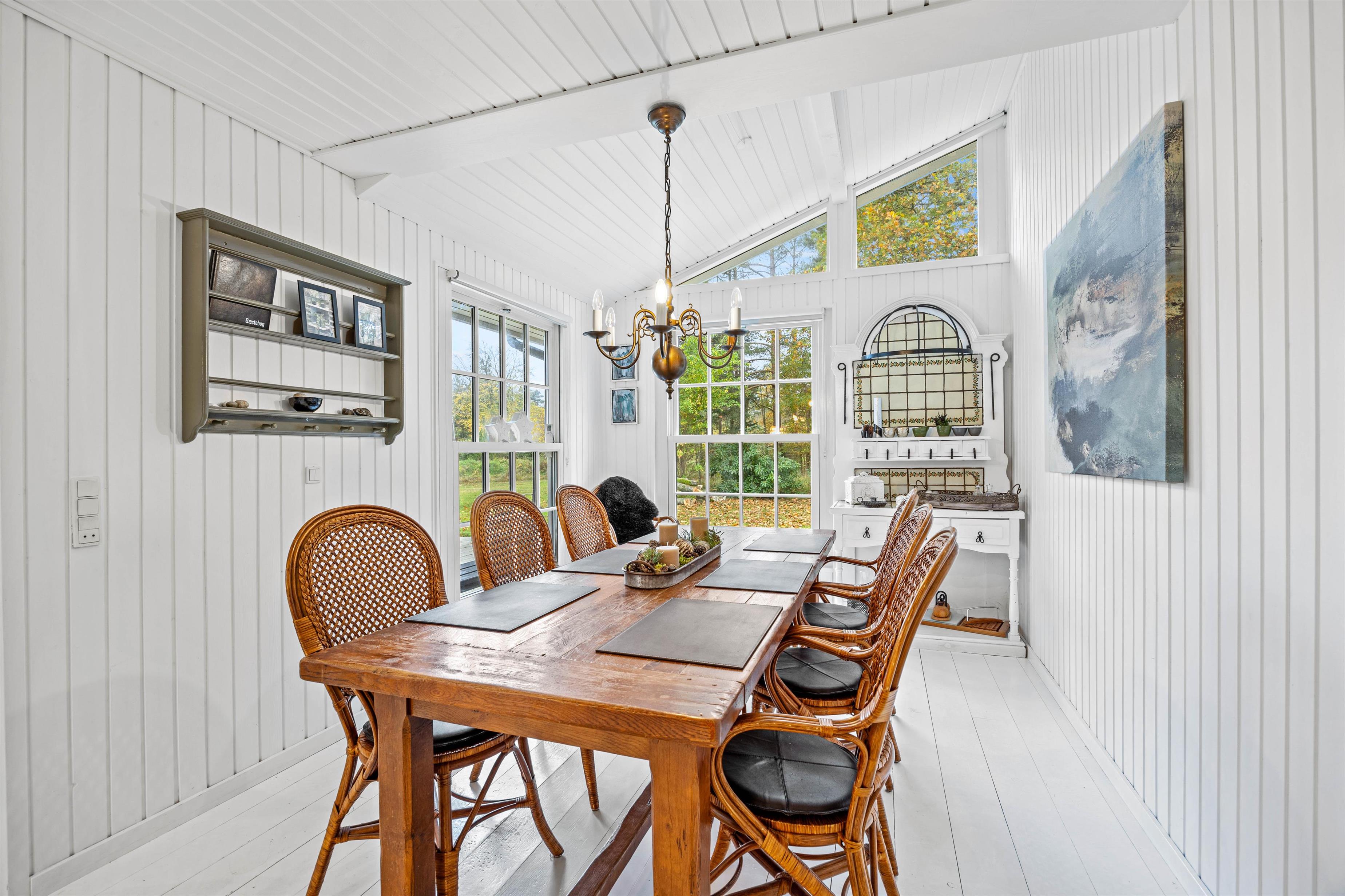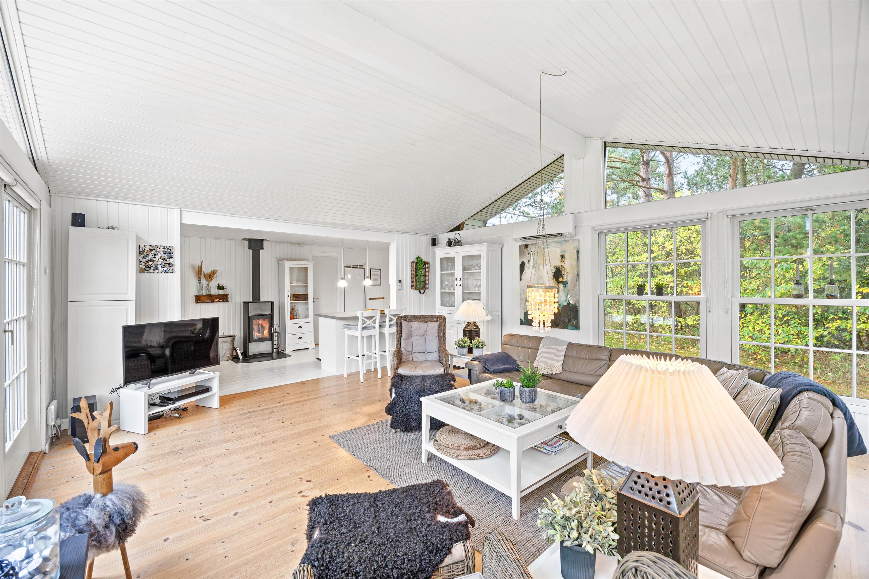 Hjertelig velkommen til dette dejlige sommerhus på Almosetoften 5! Sommerhuset er lyst, og her vil I hurtigt føle jer godt tilpasse i den indbydende atmosfære. Hjerterummet er det rummelige alrum, hvor hele familien kan samles. Indretningen er lyst og hyggelig i landlig stil, og de mange vinduer inviterer dagslyset indenfor. Her er skal I samles om dejlige retter, hyggelige brætspilsaftner og dase på sofaen, mens brændeovnen knitrer i baggrunden. Som et ekstra plus er der en energibesparende varmepumpe samt et Chromecast til streaming.