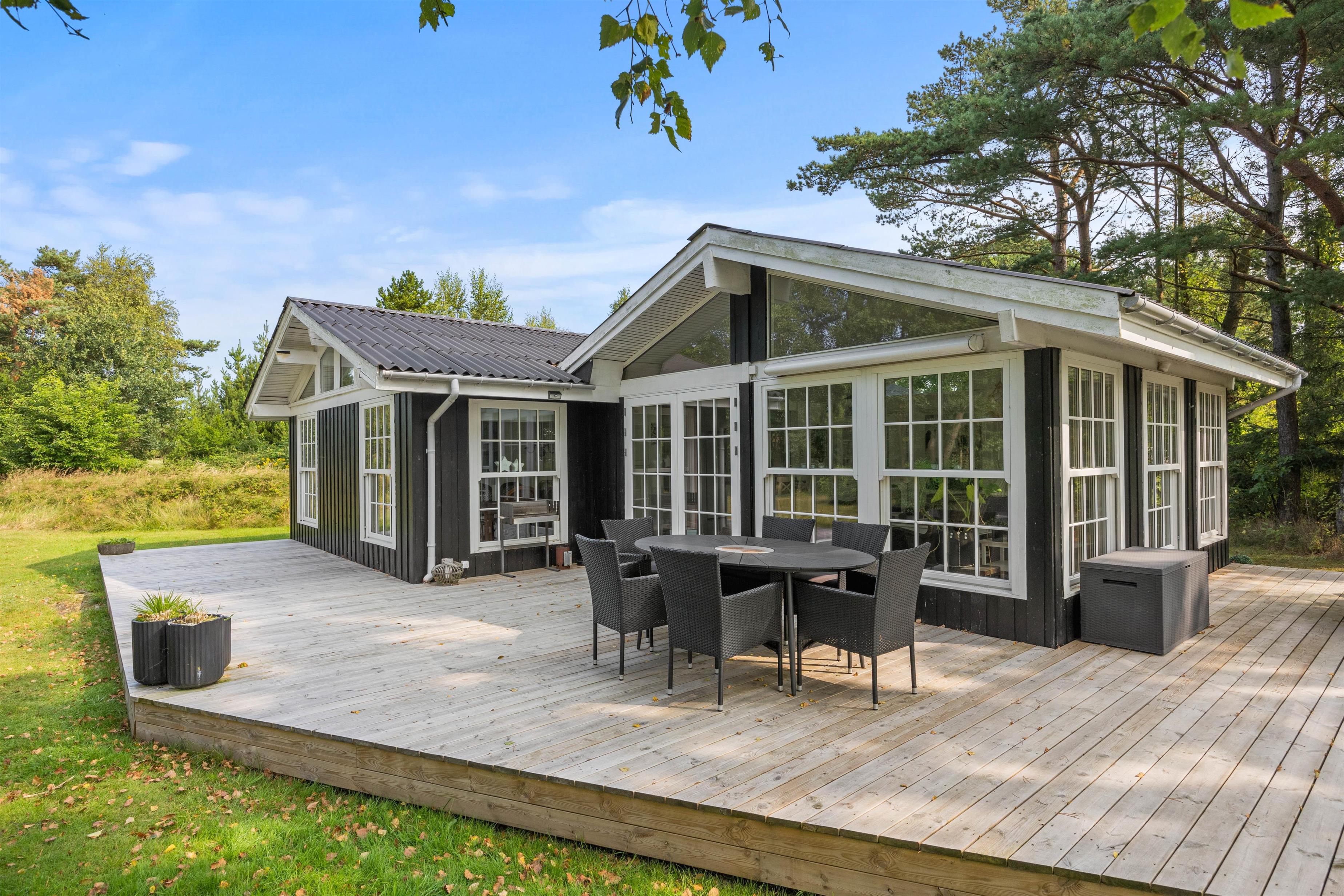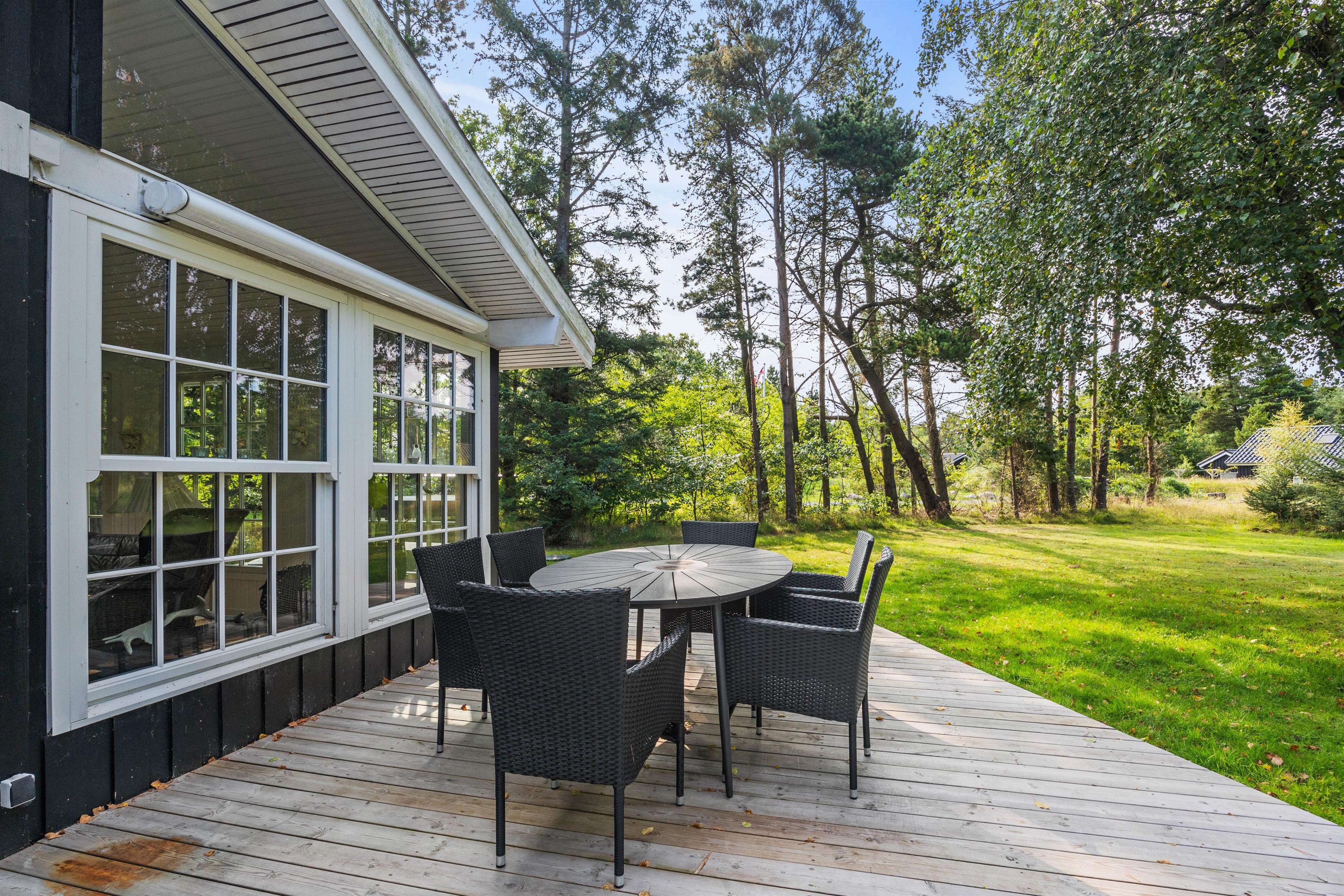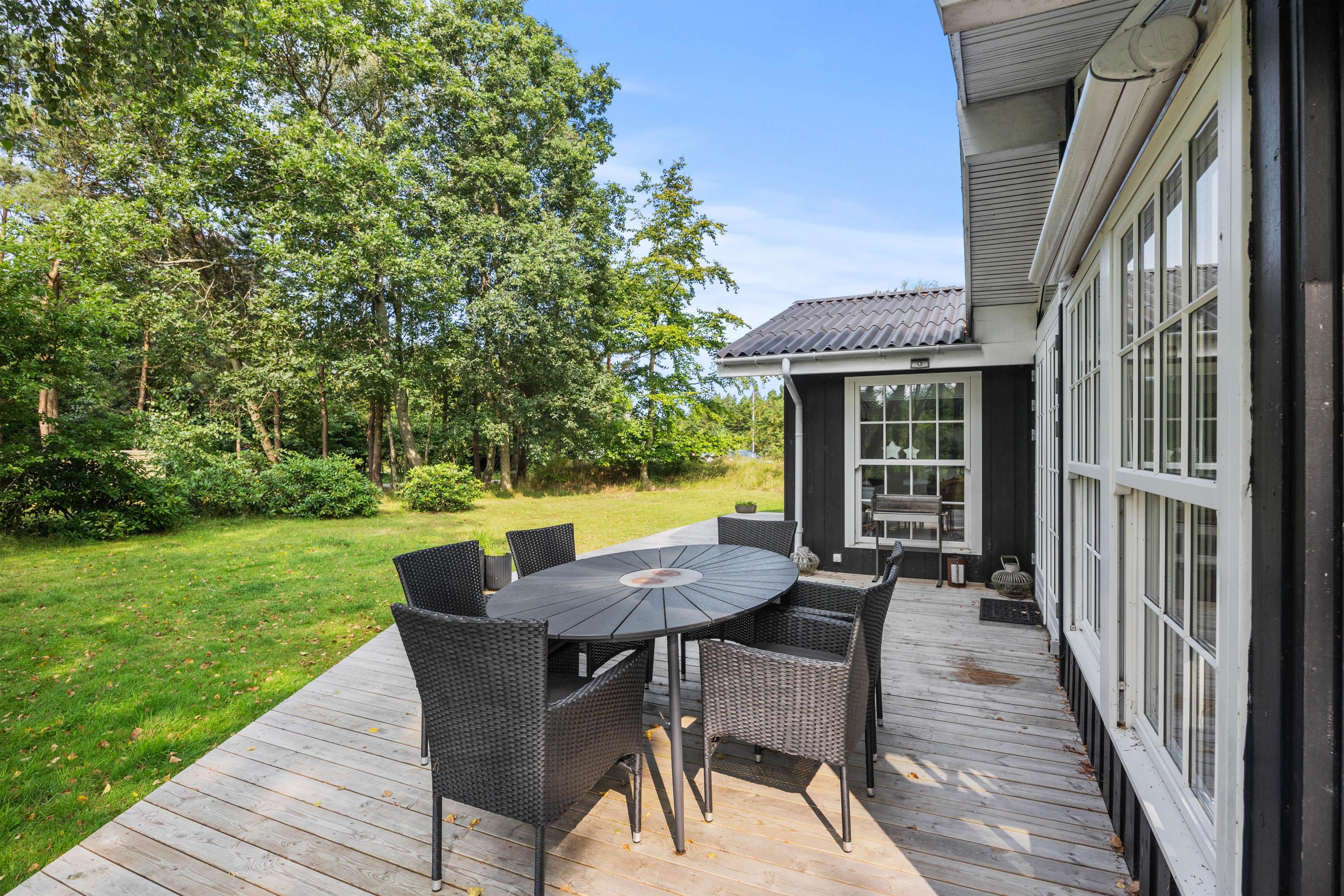 Der er rig mulighed for hygge, leg og afslapning på den 2585 m2 store plænegrund. Fra stuen er der udgang til en skøn træterrasse, hvor havemøbler og liggestolene venter på jer. Her kan I spille kort, solbade eller nyde en god krimi i solen. På de lune sommeraftner er det også her, at I kan nyde en lækker middag tilberedt på grillen. Imens maden forberedes, kan ungerne samle appetit og lege på den grønne plæne.