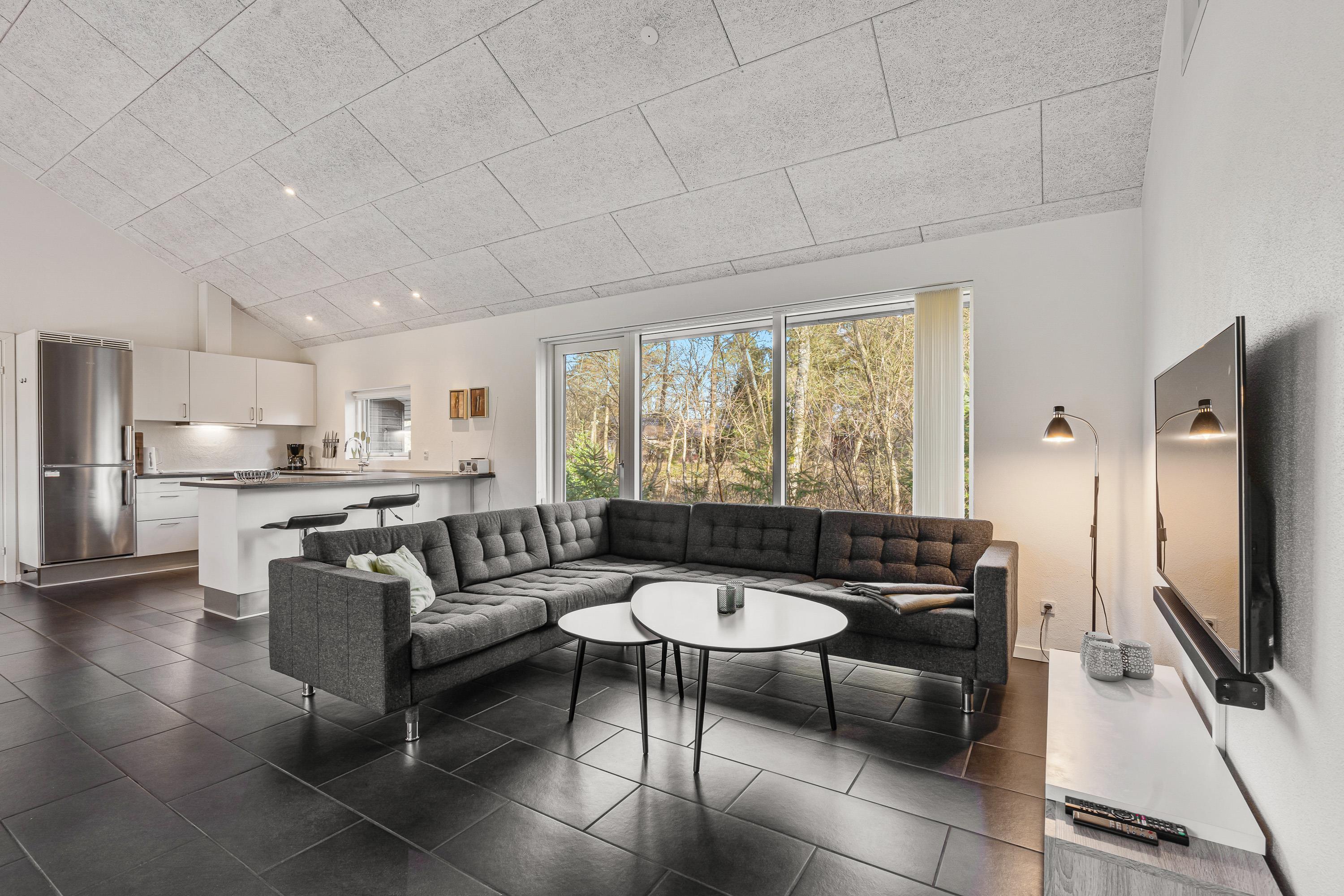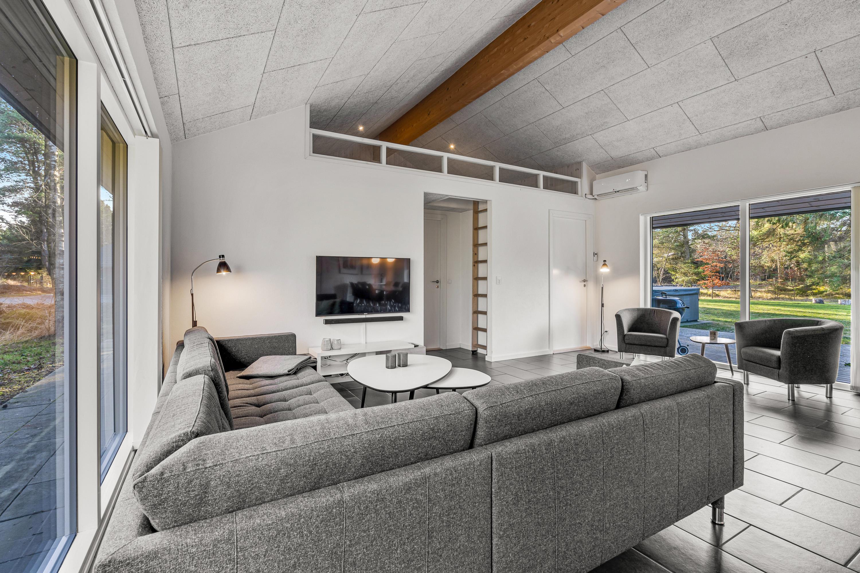 Om aftenen kan I streame en film via sommerhusets chromecast, og derved benytte den lynhurtige 1000/1000 mbit-internetforbindelse. I stuen er der desuden gulvvarme.