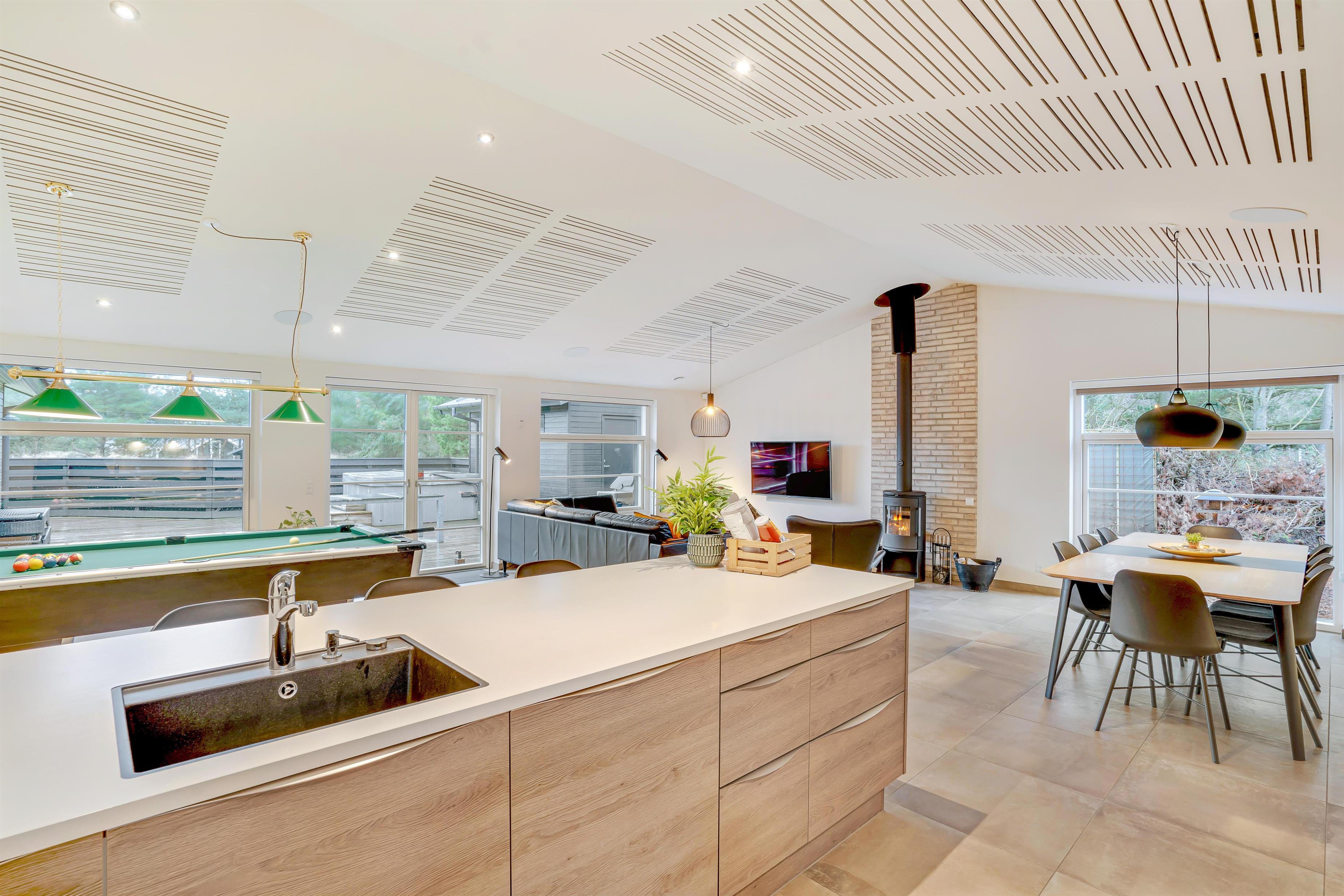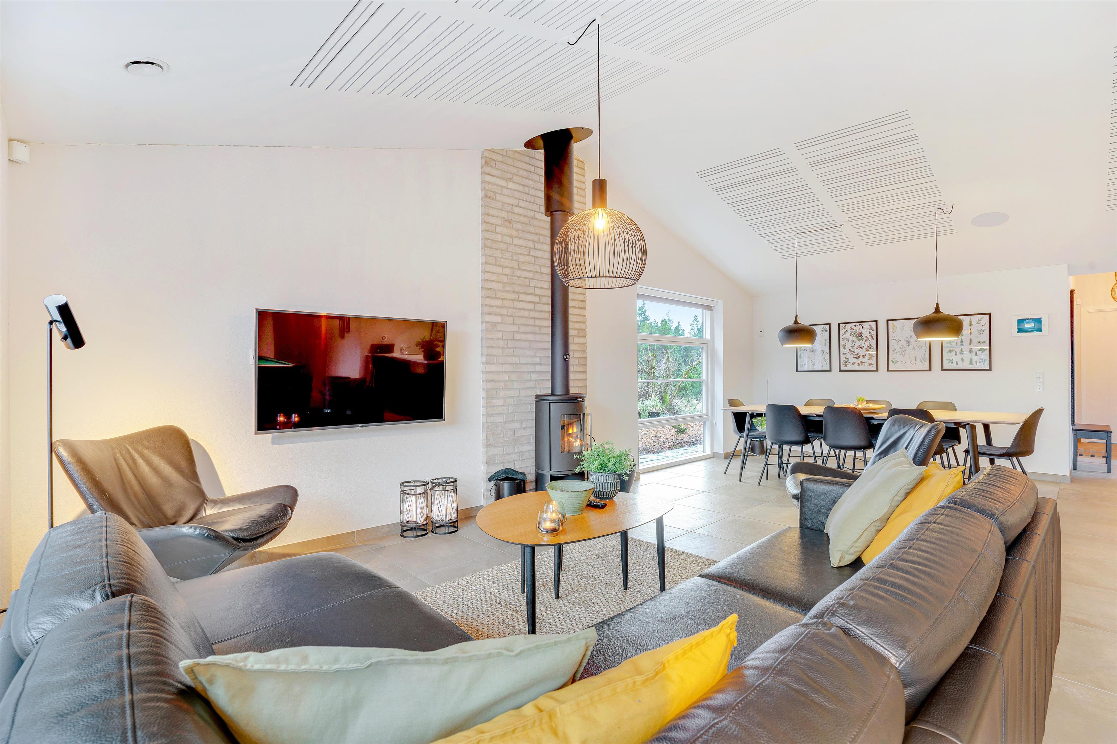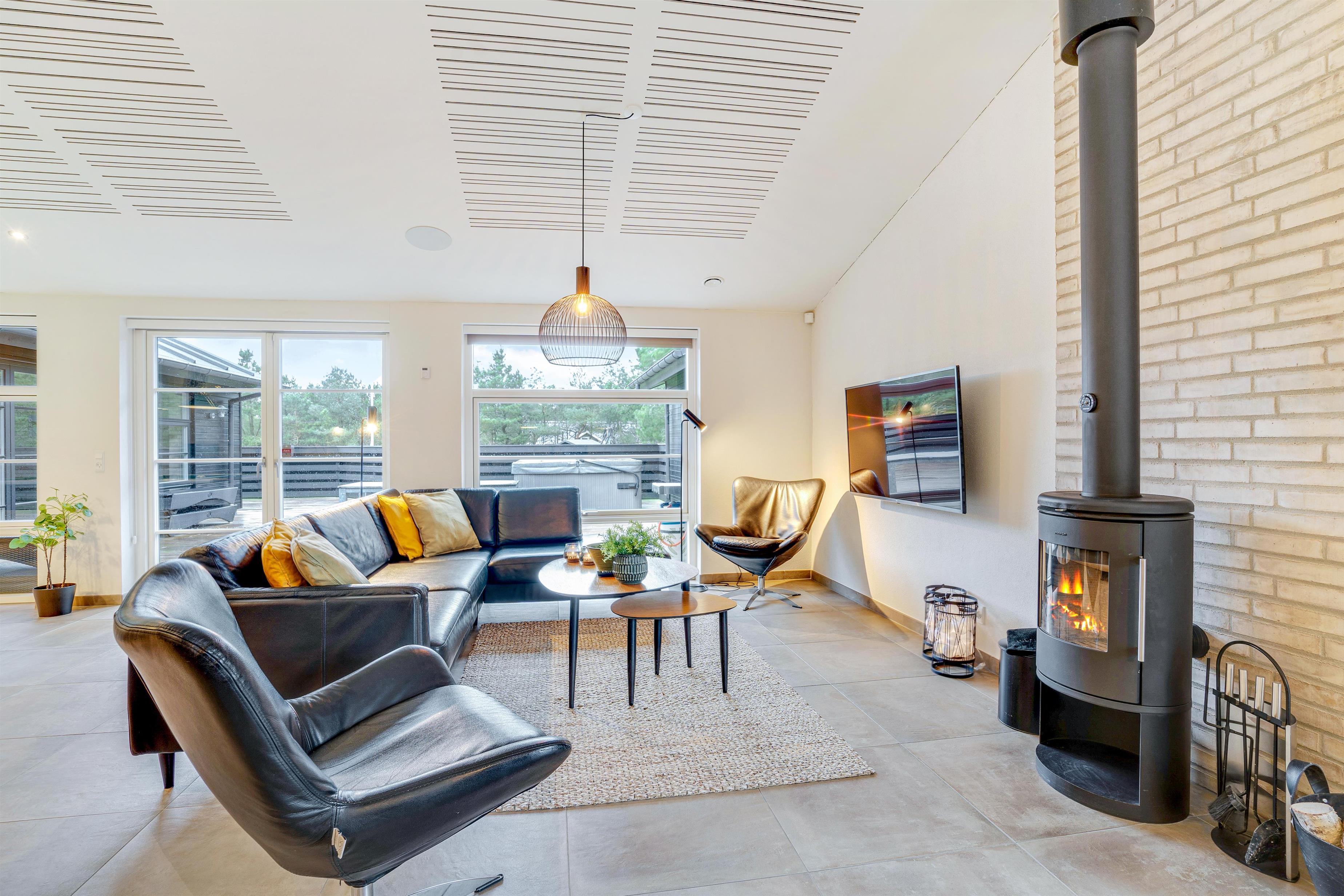 Dette moderne feriehus byder på plads til op til 8 personer og er perfekt til både den store familie eller vennepar, der gerne vil holde en ferie med lidt luksus ved Vesterhavet. Indretningen har både komfort, et moderne præg og den klassiske skandinaviske hygge.