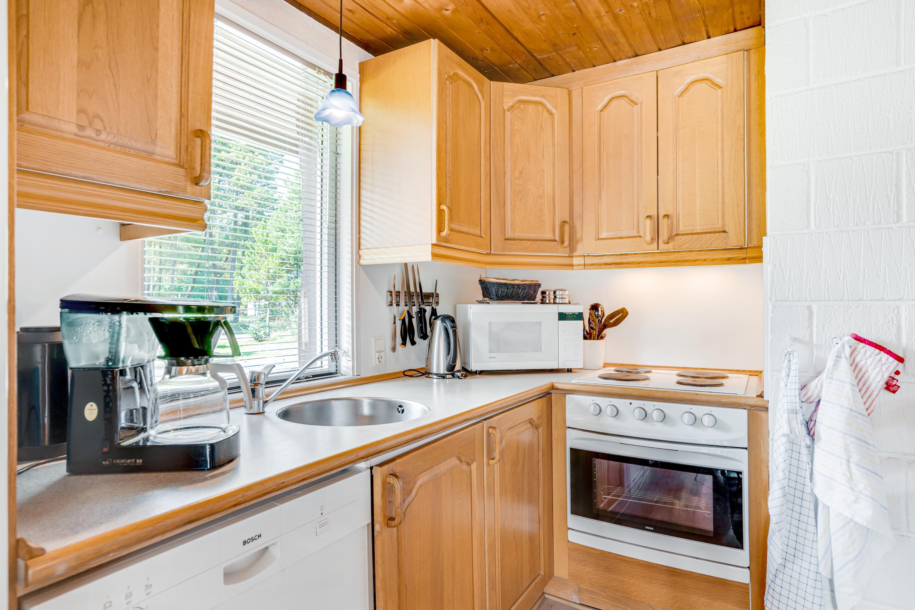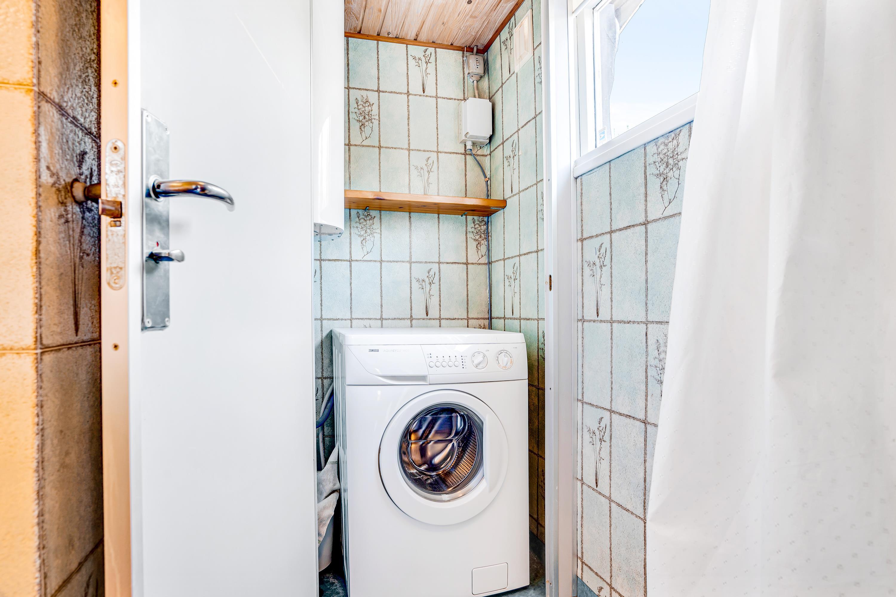 Køkkenet er udstyret med opvaskemaskine, og på badeværelset er der vaskemaskine og gulvvarme. En stabil og hurtig internetforbindelse står også til rådighed.