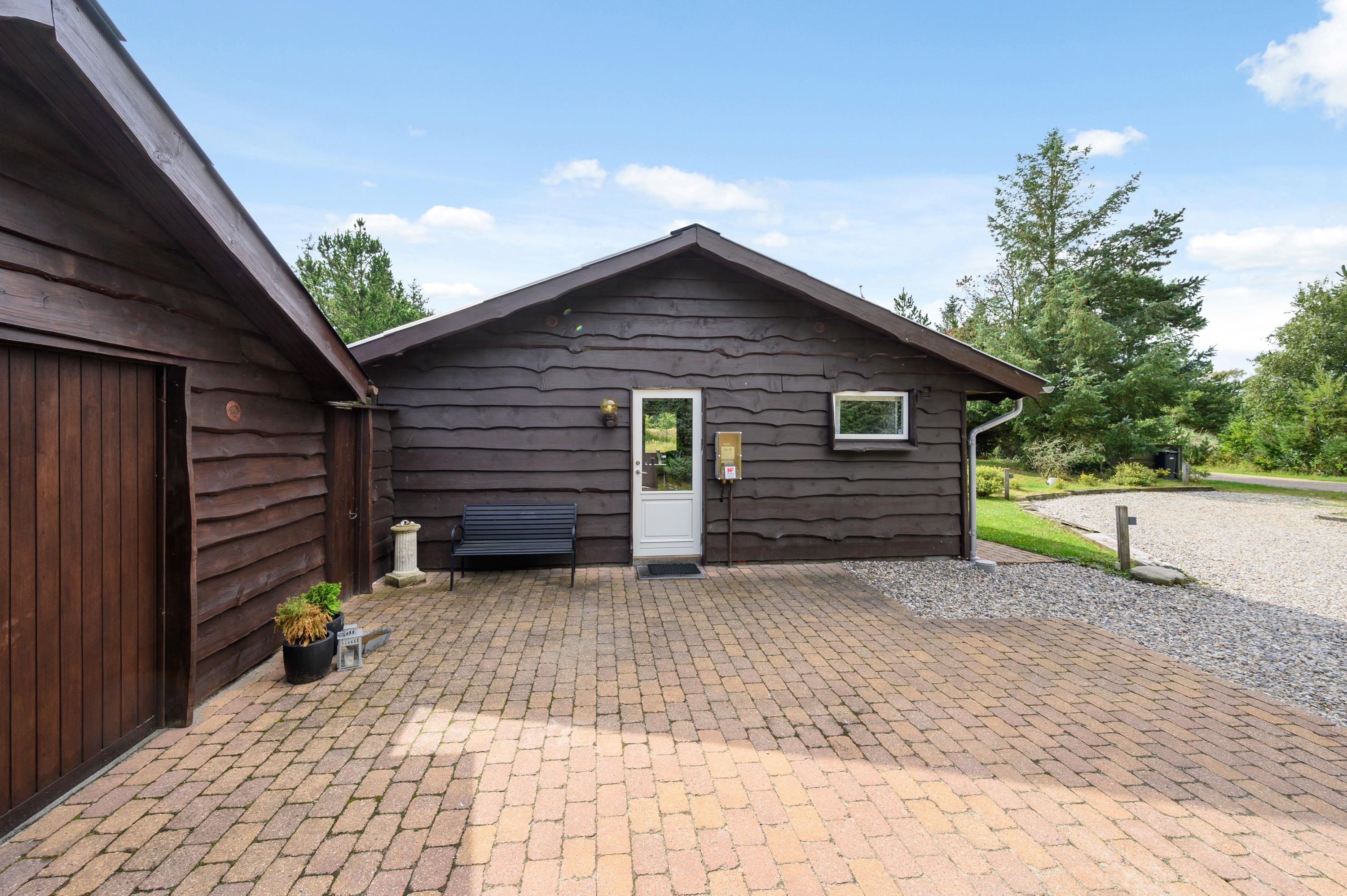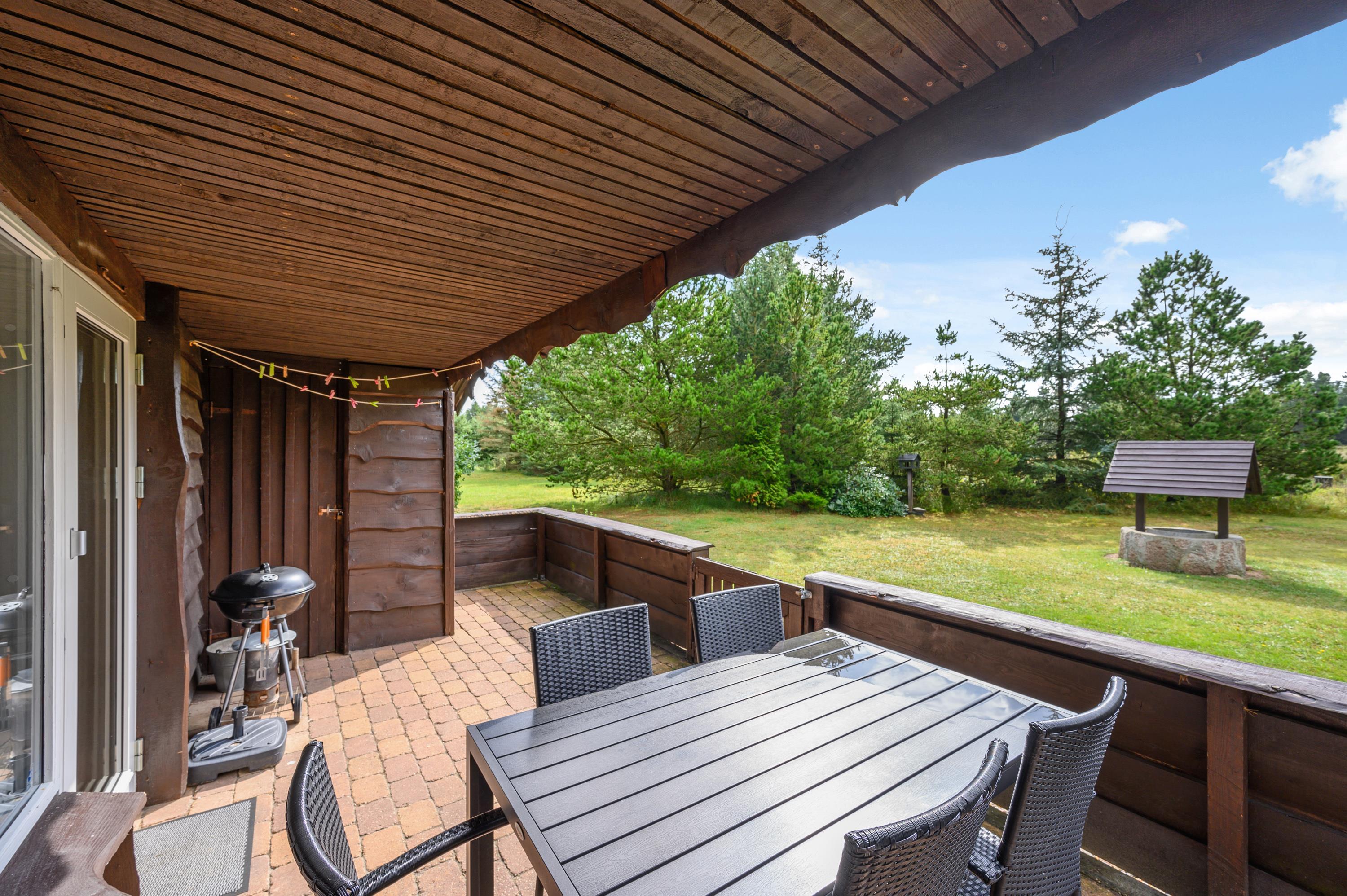 Rundt om sommerhuset finder I flere terrasser og hyggekroge, hvor I kan sætte jer til rette med en friskbrygget kop kaffe og nyde den vestjyske natur. Den ene terrasse er delvist overdækket og er det ideelle sted til en hyggelig grillmiddag i aftensolen.