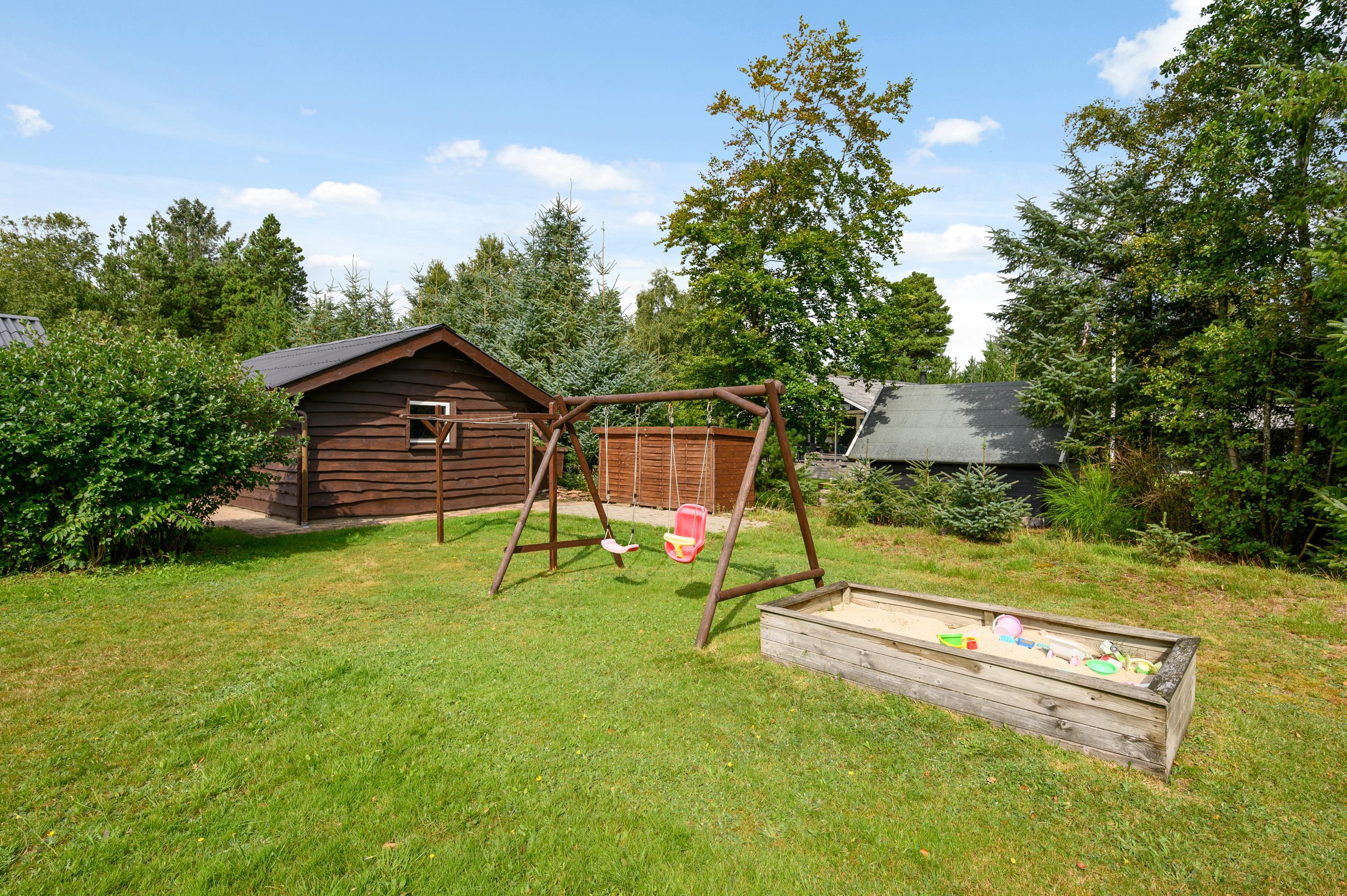 Den 2.500 kvadratmeter store grund er omkranset af høje træer og tæt buskads, så I helt ugenert kan nyde de afslappende dage på terrasserne. Den store og velholdte græsplæne er desuden fin, hvis I har børn eller hunde – eller begge dele – med. Her er der god plads til leg og boldspil, og til de mindste er der gynge og sandkasse.