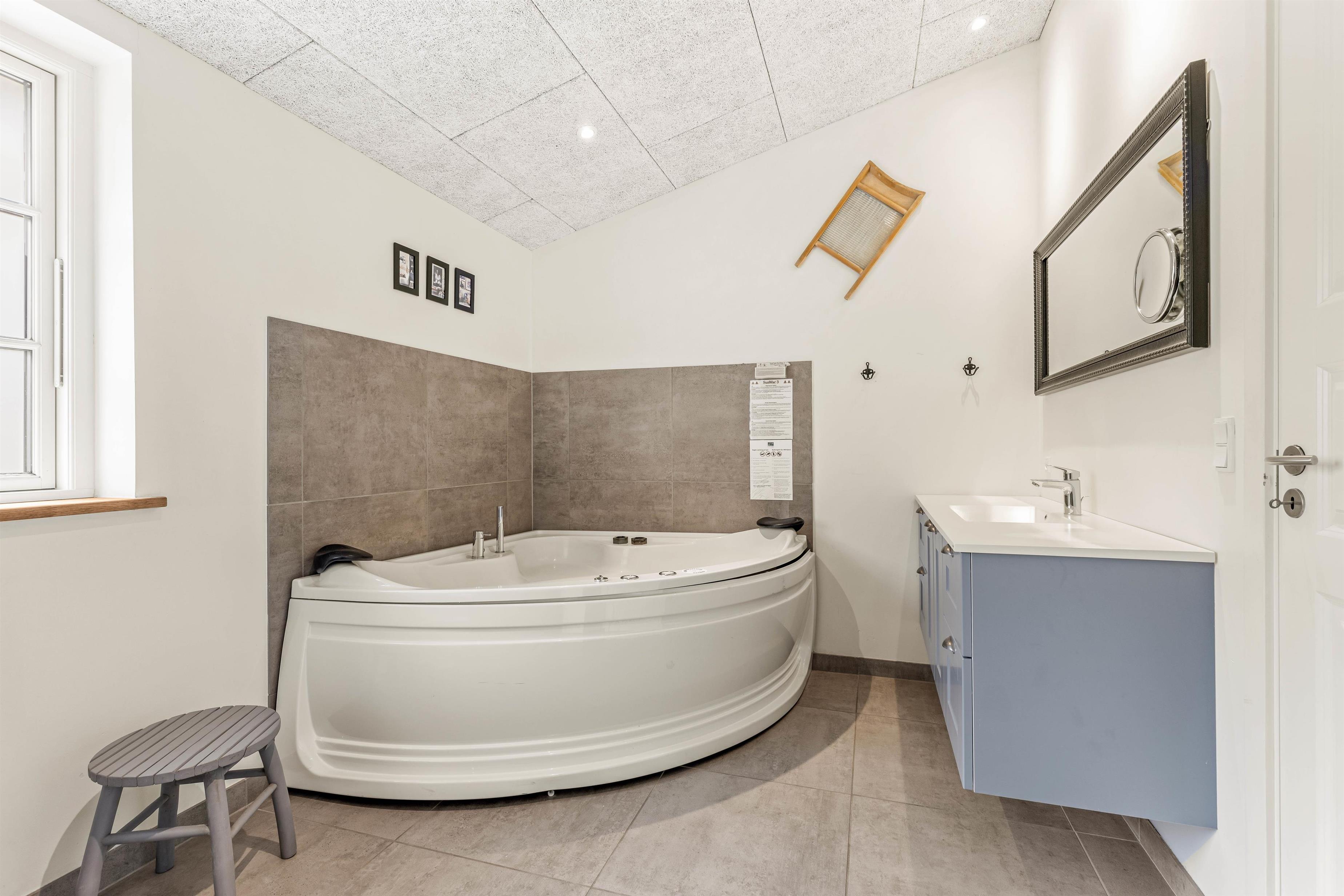 Er I mere til afslapning, byder det ene af husets 2 badeværelser på en ekstra overraskelse til jer. Her står både sauna og spabad klar til at forkæle jer med en varm wellnessoplevelse, når I trænger til at lade batterierne op.