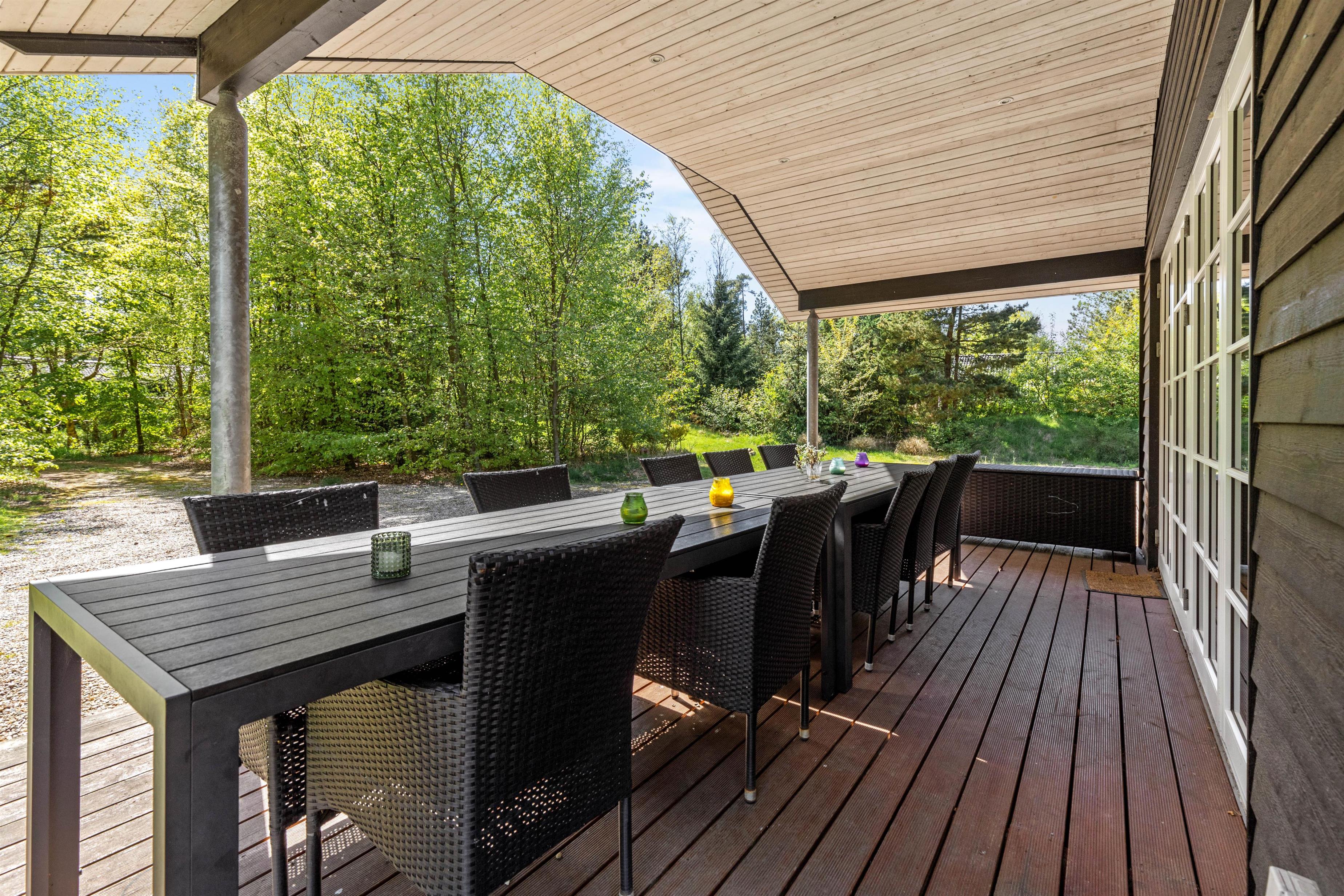 Rundt om feriehuset på de skønne terrasser finder alle hurtigt en plads i solen - eller skyggen under den overdækkede del af terrassen, hvis man er mere til det. De gode havemøbler og liggestole sørger for, at I kan nyde den friske luft og det gode vejr i fulde drag, og de høje træer, der omgiver grunden, giver jer en fantastisk, rolig beliggenhed.