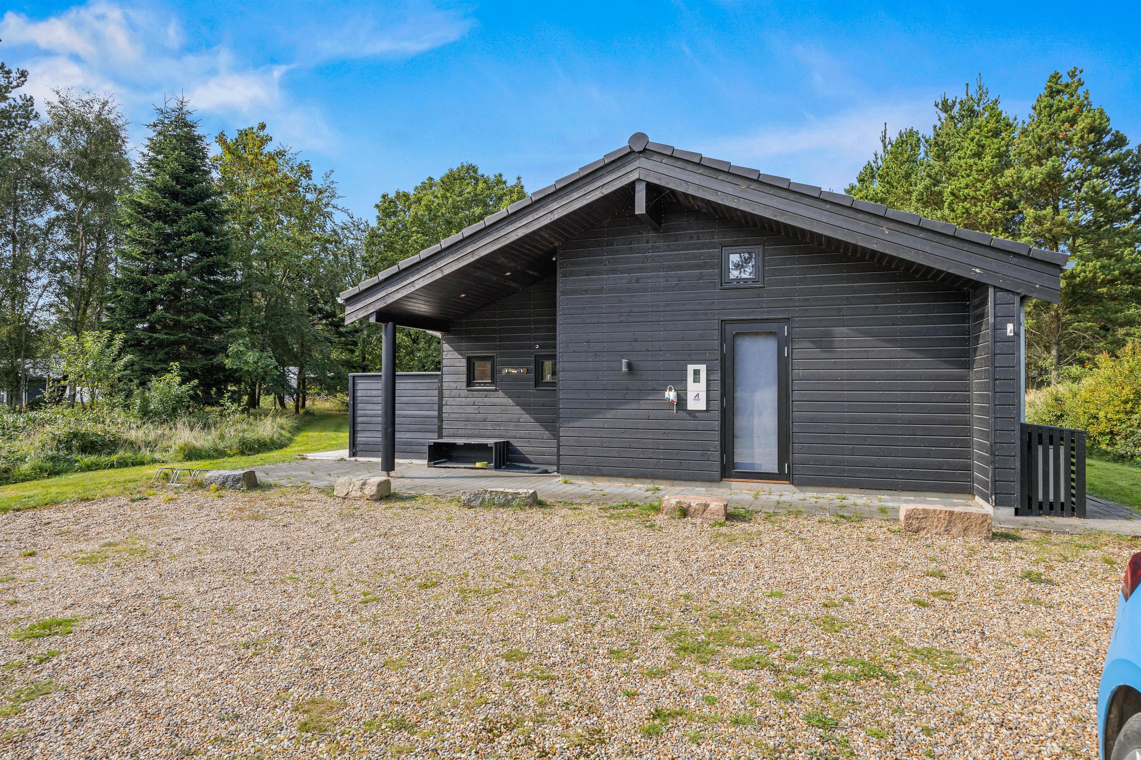 Indkørslen har plads til flere biler og har også en ladestander (husk kabel/adapter).
