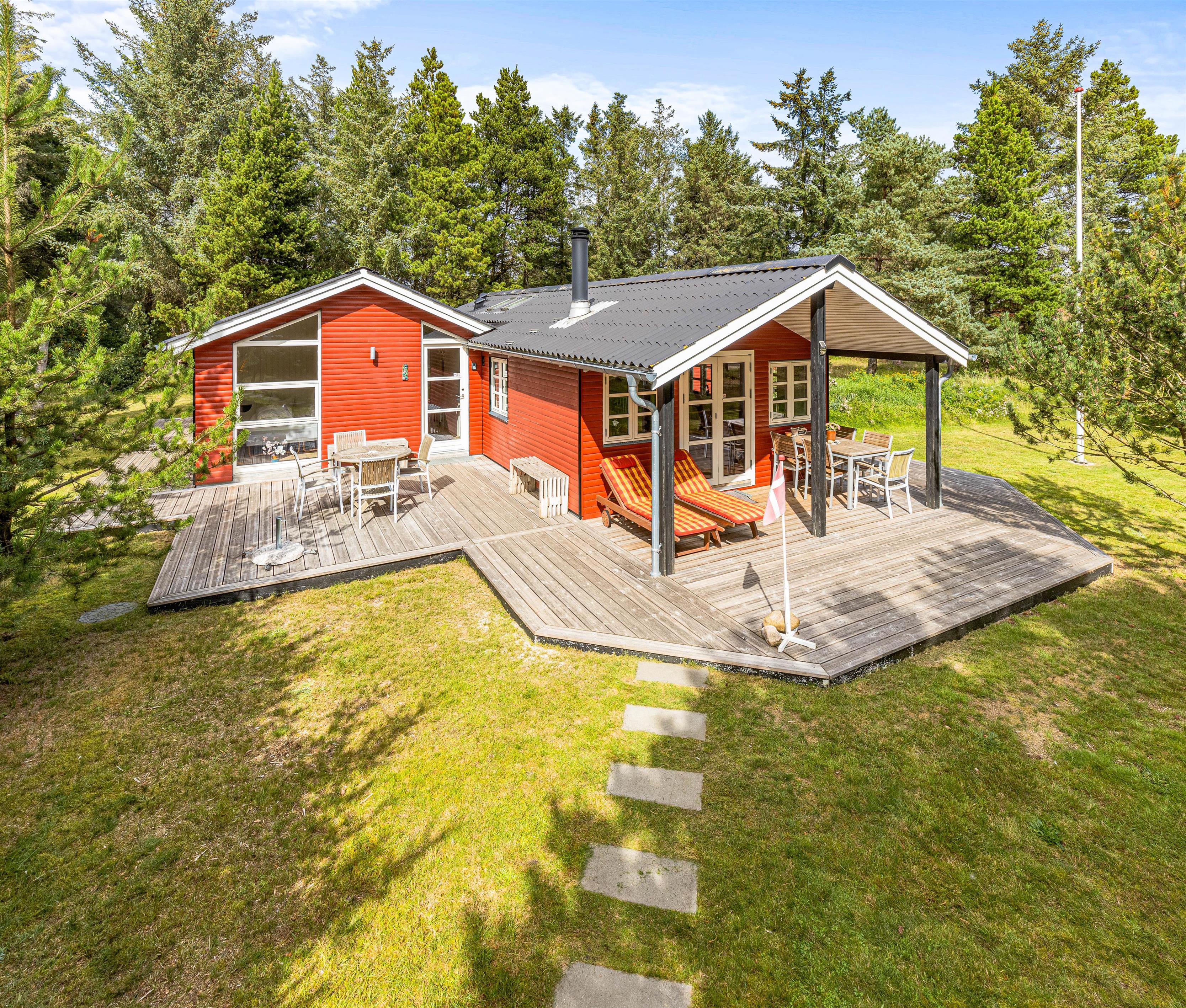 Skulle et rødt træhus midt i fyrrelunden i rolige omgivelser med plads til 5 personer være rammen om jeres næste ferie? Feriehuset på Lauridsensvej 12 i Ho er et charmerende hus, der indbyder til fælles hygge, masser af muligheder for leg i haven og afslapning fra den travle hverdag, og dog er der kun 6 km til hyggelige Blåvand med strand, restauranter og butikker.