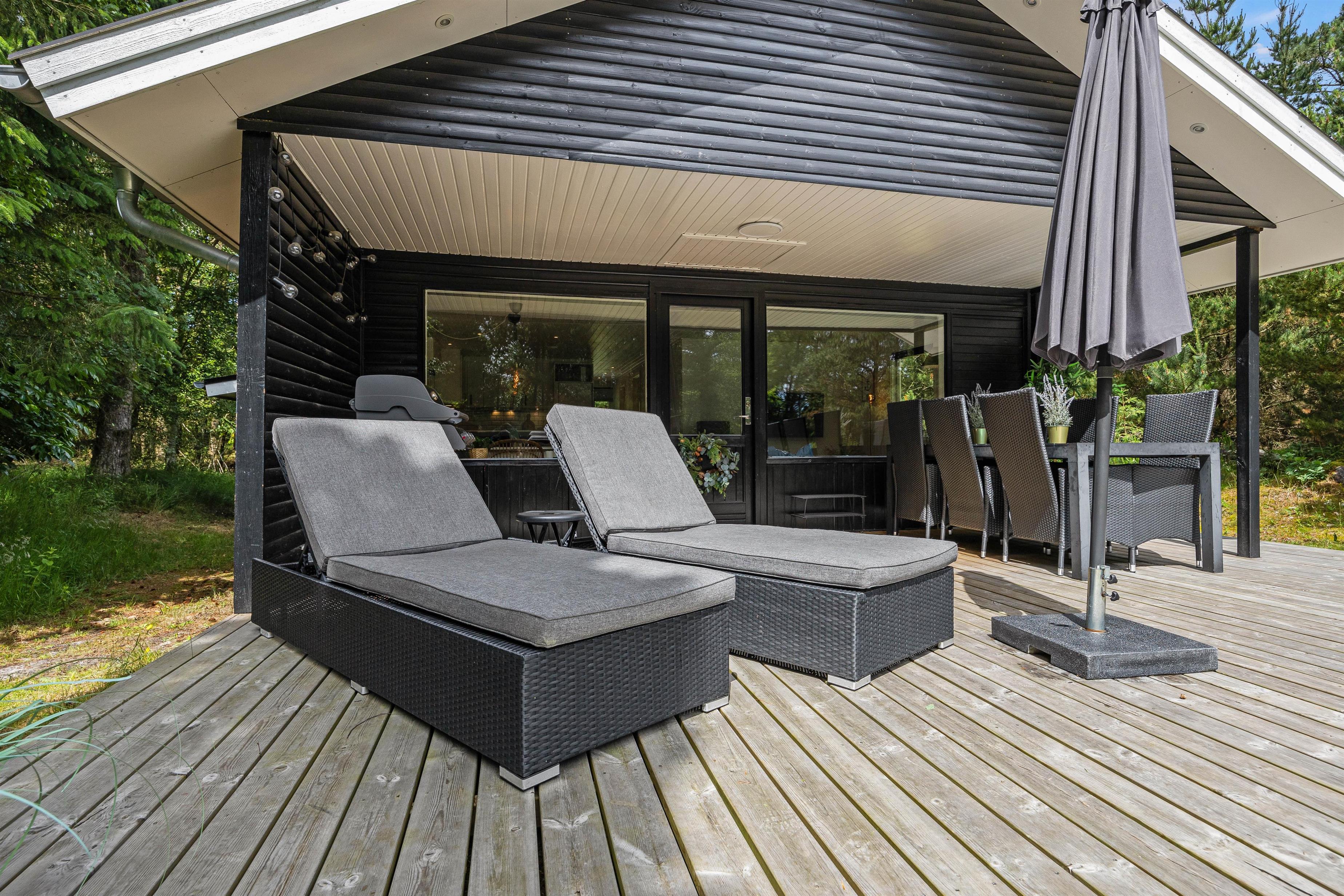 Sommerhuset har 2 skønne terrasser, hvoraf den sydvendte er delvist overdækket. Her står havemøbler, liggestole og en gasgrill klar til jer, så I kan nyde solen på en lun sommerdag. Til aften skal I naturligvis tænde for gasgrillen og stege saftige bøffer til en lækker grillmiddag.