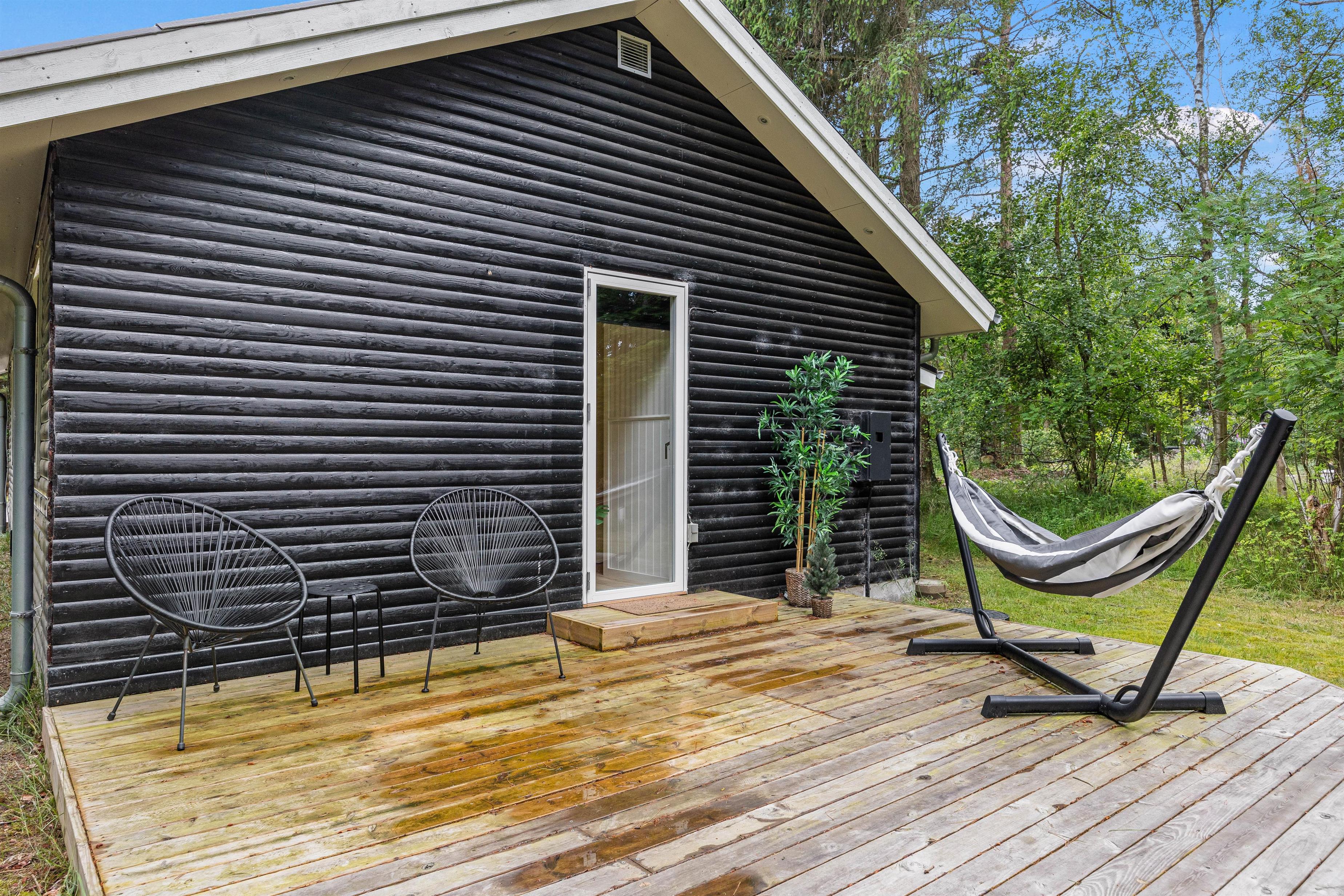 På sommerhusets naturgrund er der en trampolin, som børnene helt sikkert kommer til at få stor glæde af i løbet af ferien. Til bilen er der en carport.