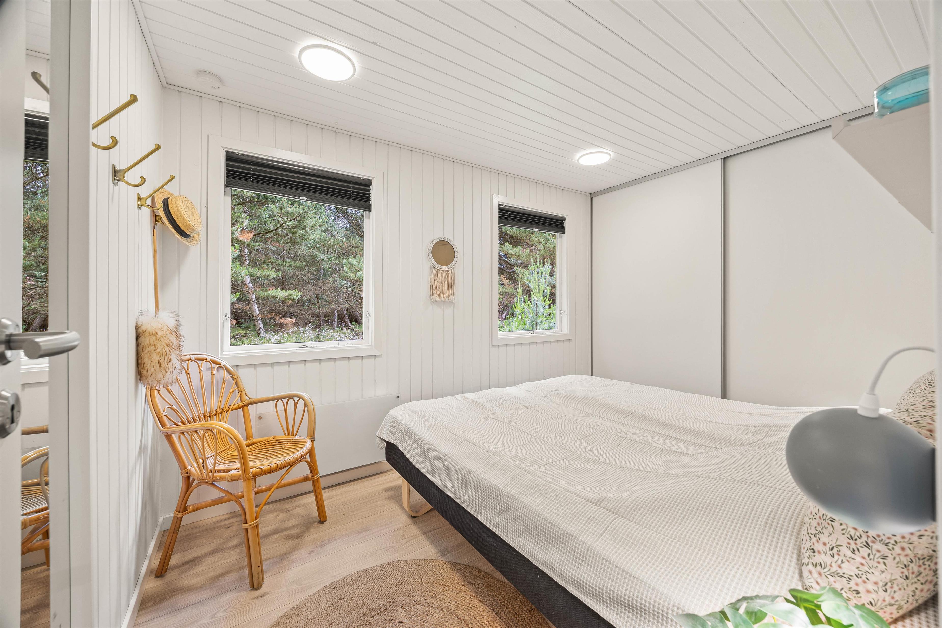 Sommerhuset har 3 gode soveværelser, hvoraf det ene er med dobbeltseng. Det andet soveværelse er indrettet med 2 enkeltsenge, mens I på det sidste soveværelse finder en enkelt enkeltseng til den gode nats søvn.