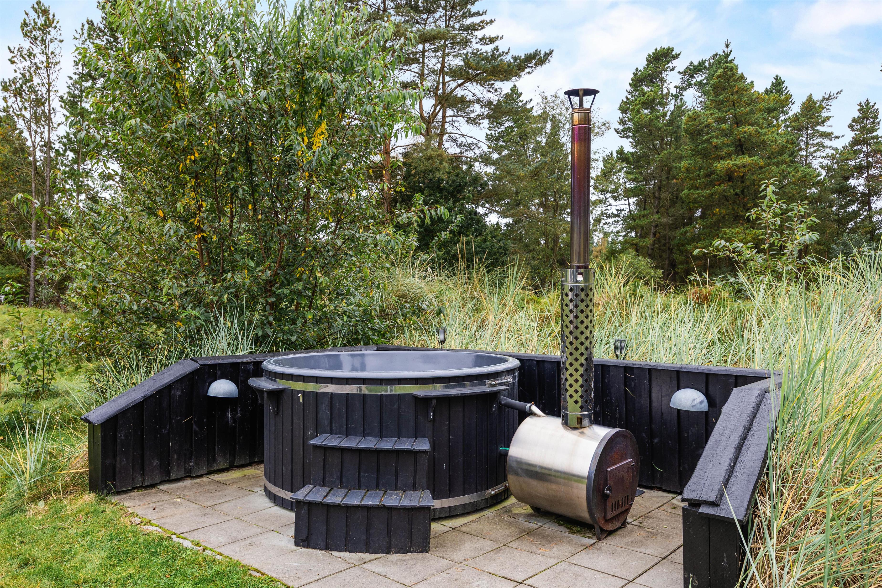 Et af feriehusets absolutte highlights er vildmarksbadet, som indbyder til masser af afslapning. Her kan I nyde den friske luft i det varme vand - også selvom vejret måske ikke viser sig fra sin bedste side.