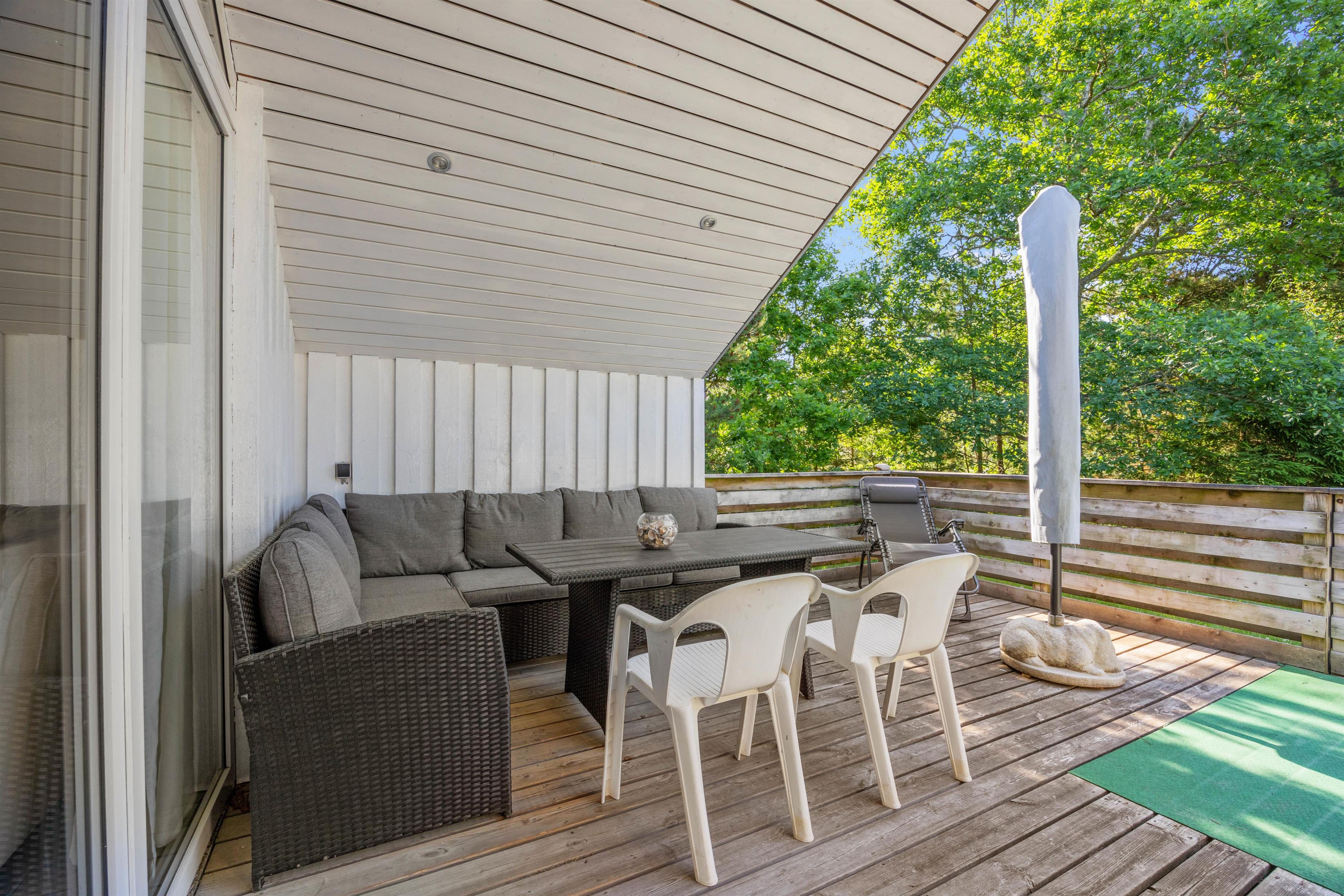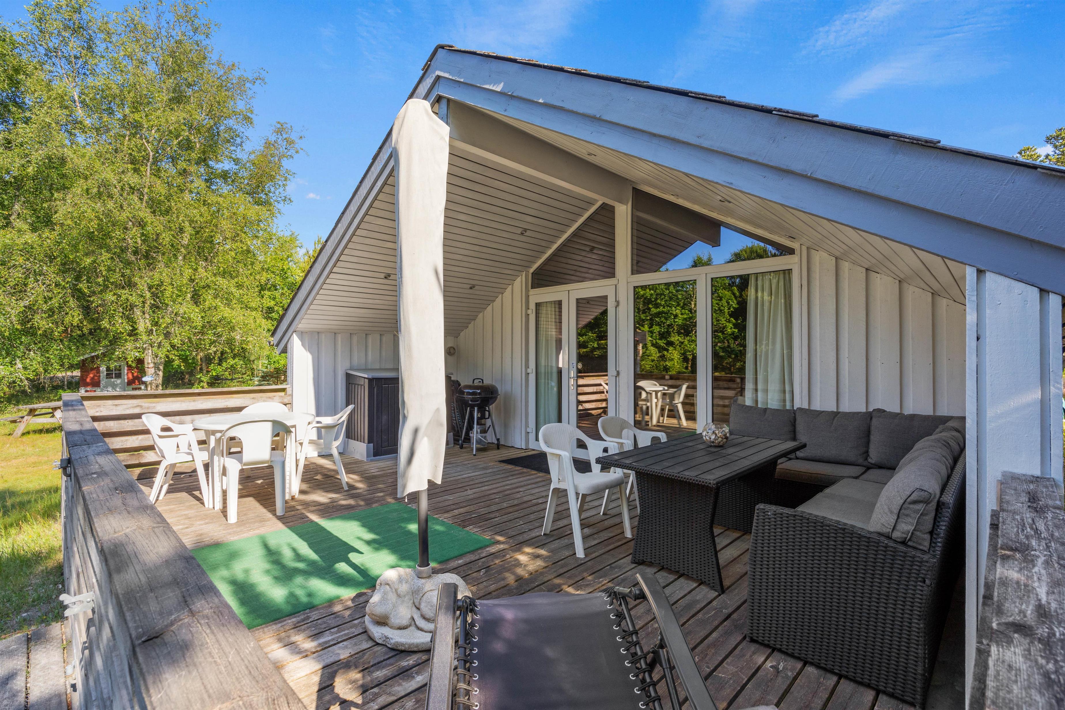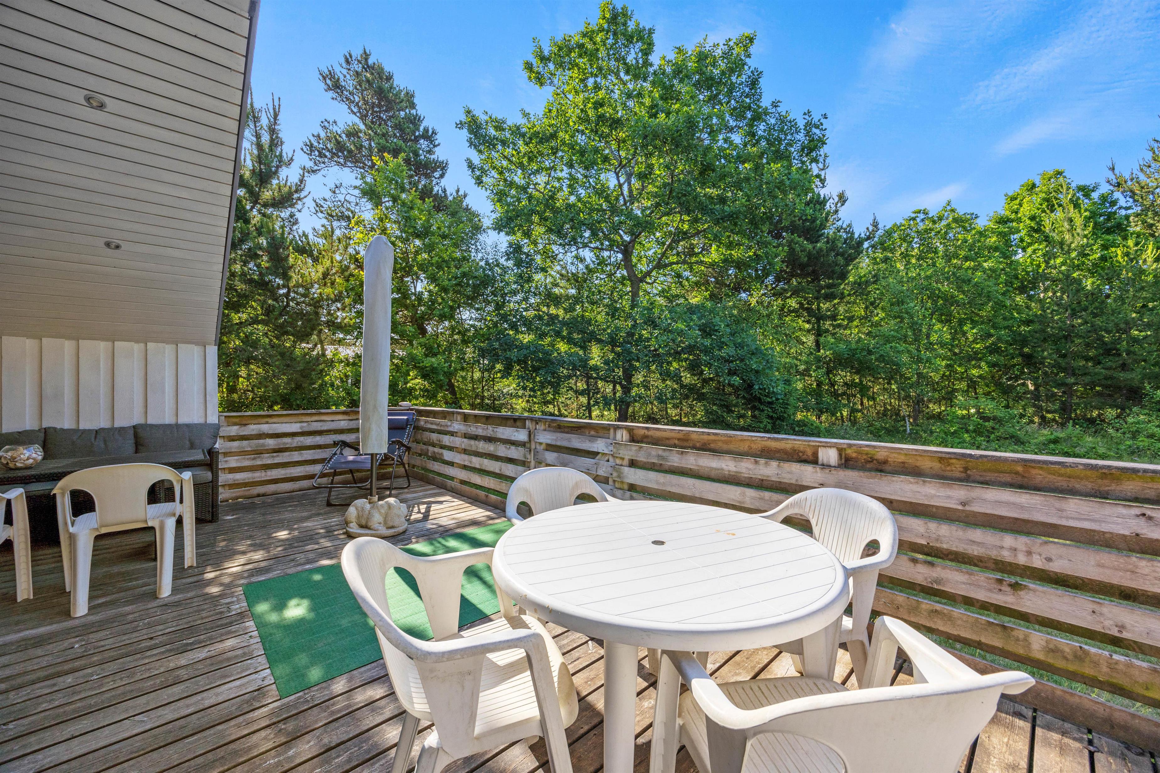 Efter et godt måltid mad kan du lade aftenen klinge ud på terrassen, som til dels er overdækket. Grillen i haven indbyder til hyggelige grillaftener, mens havemøblerne giver dig mulighed for at nyde maden i det fri.